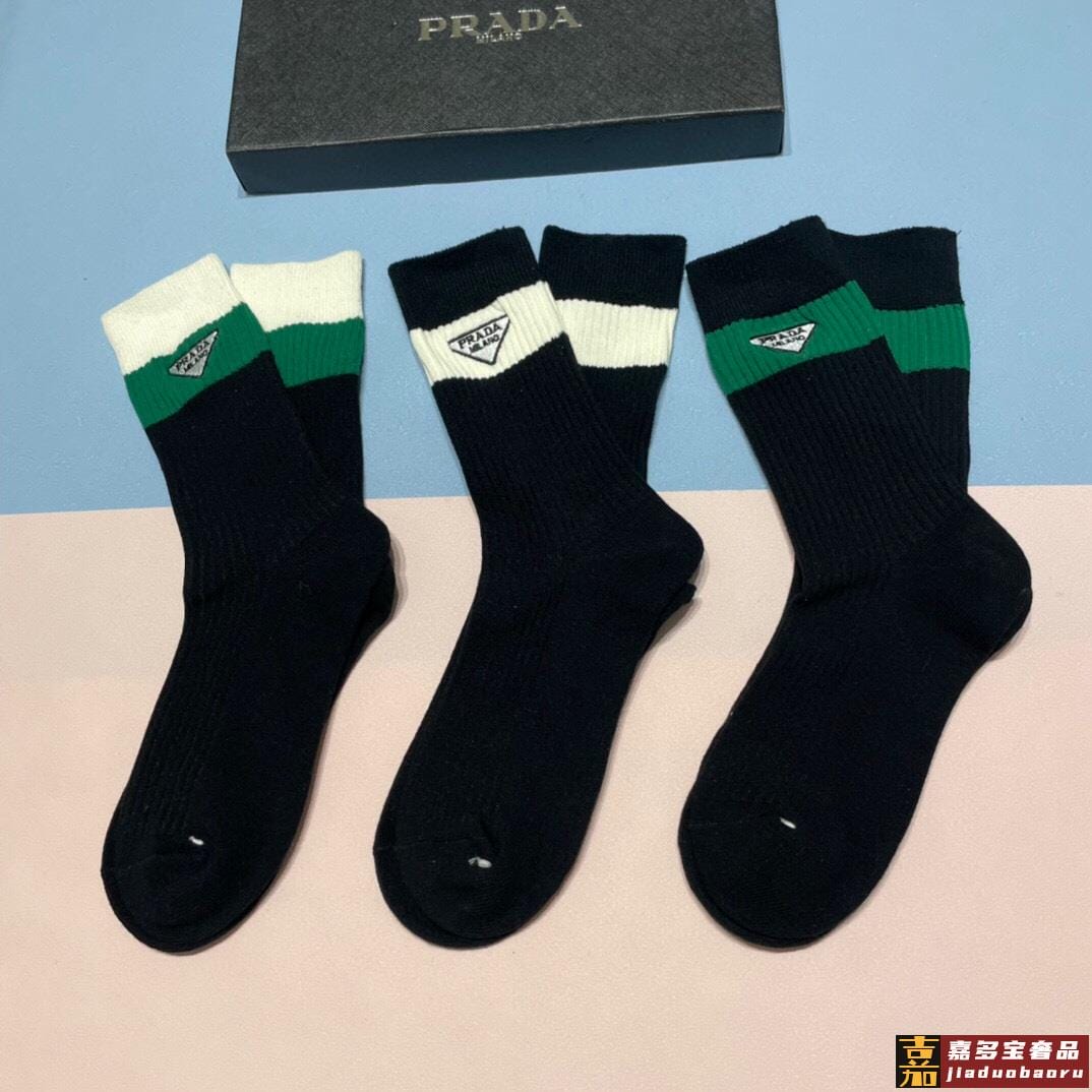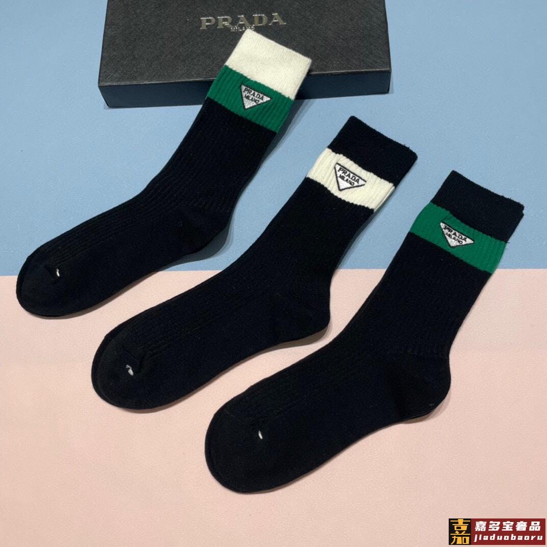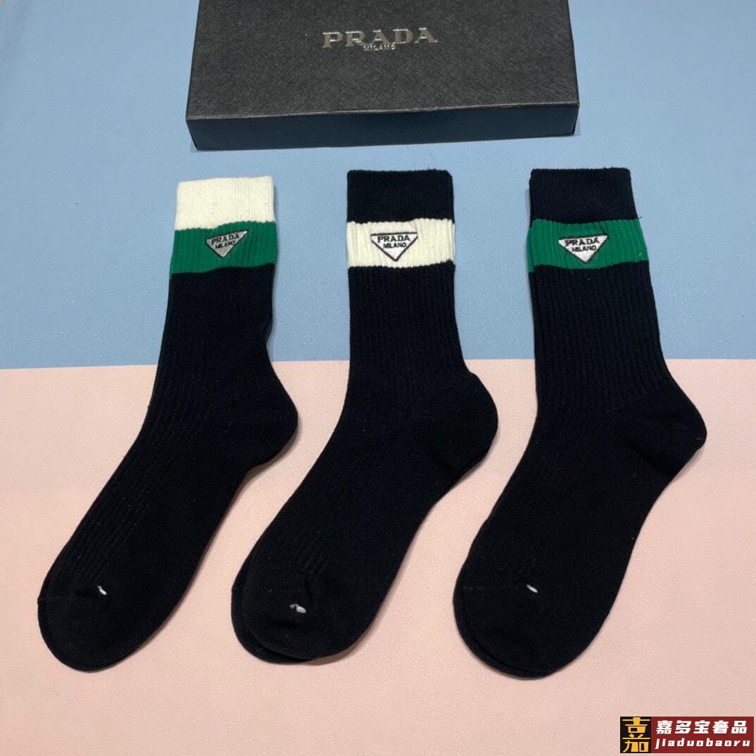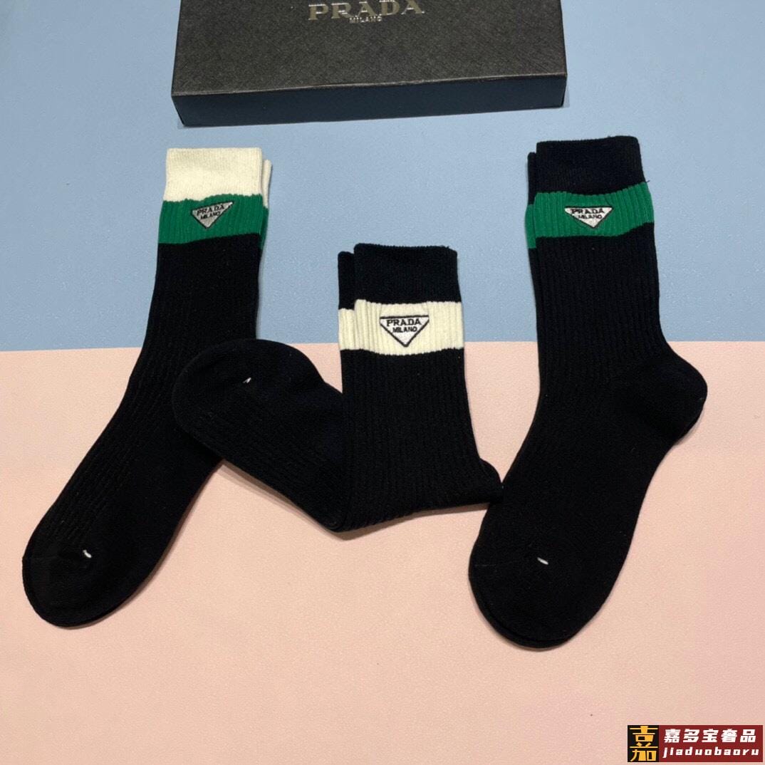 配包装一盒三双普拉达爆款高筒袜高版本好看到爆炸欧美大牌高筒袜