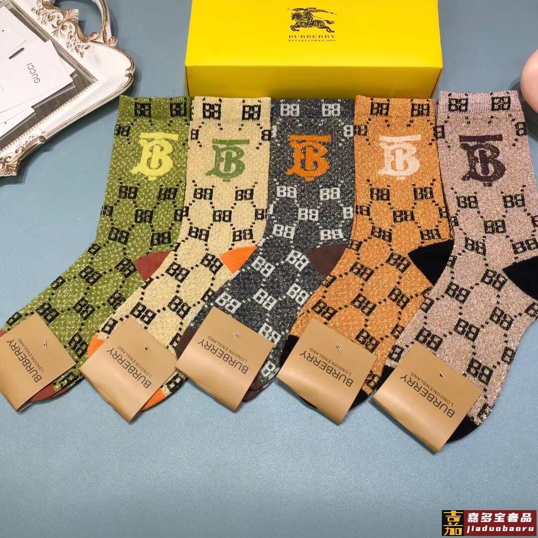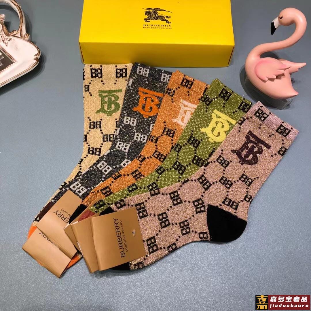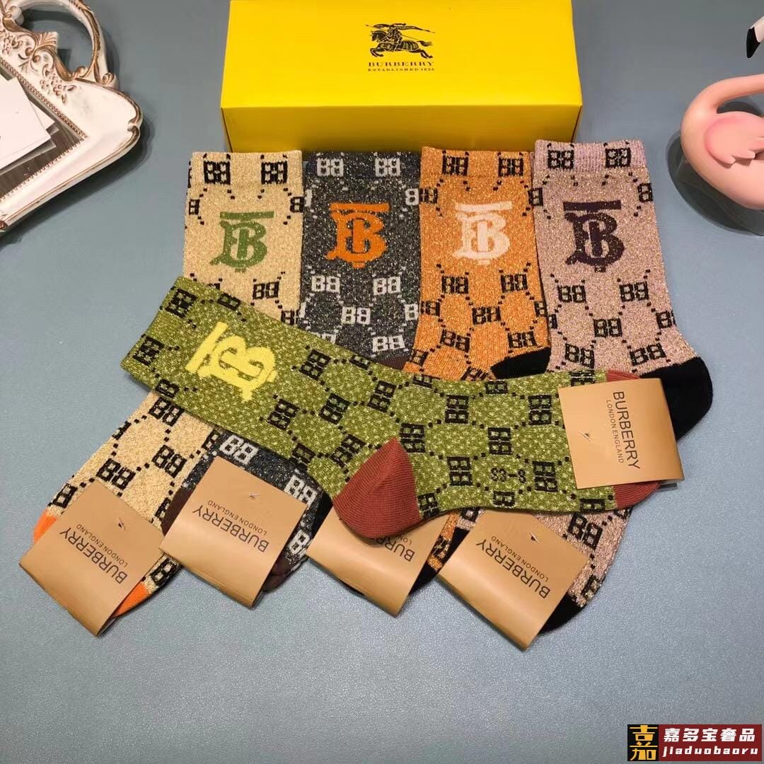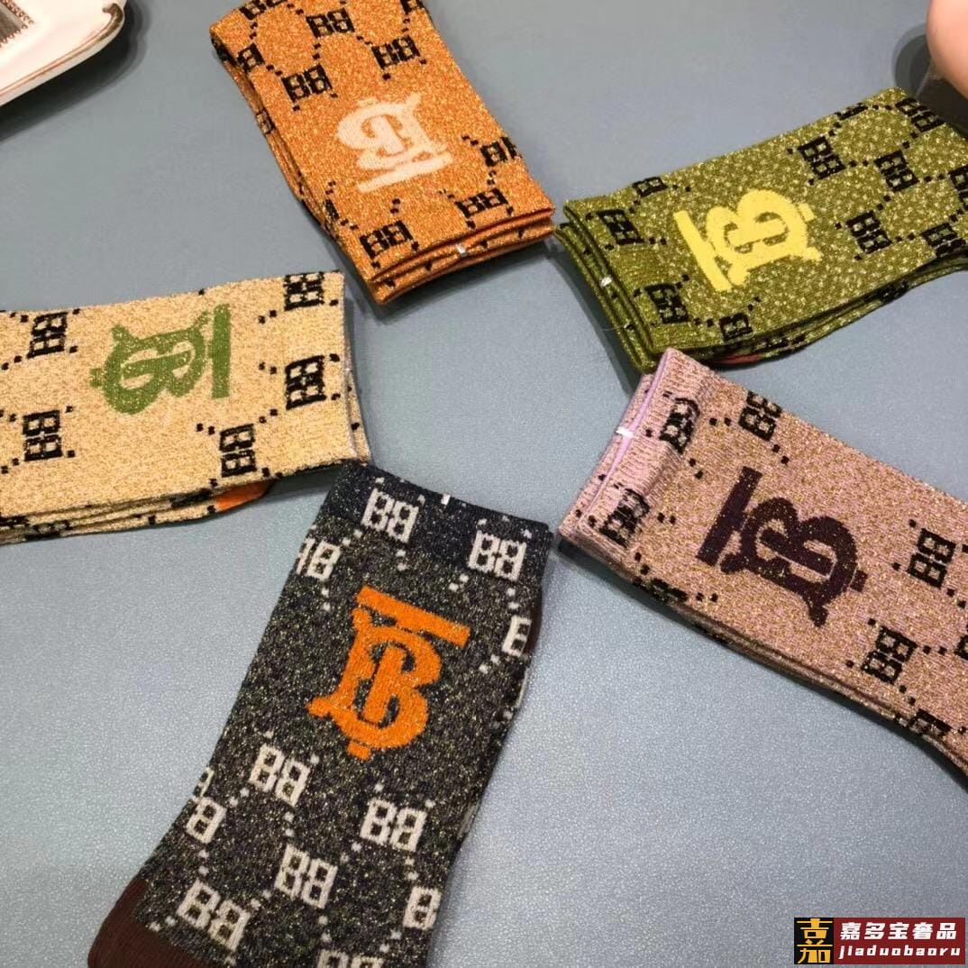配包装一盒双巴宝莉专柜最新款短款袜子家专柜同步中长袜经典字母