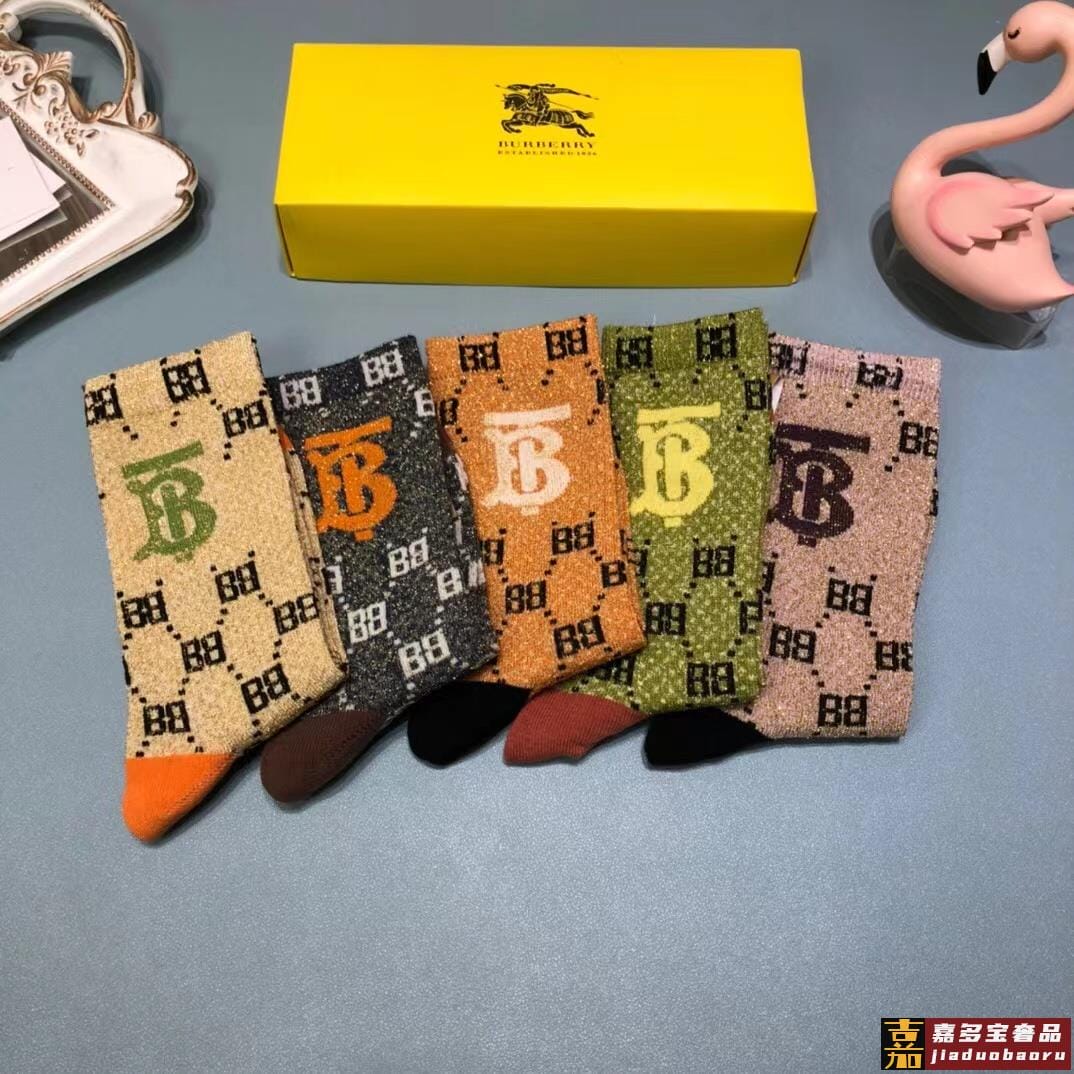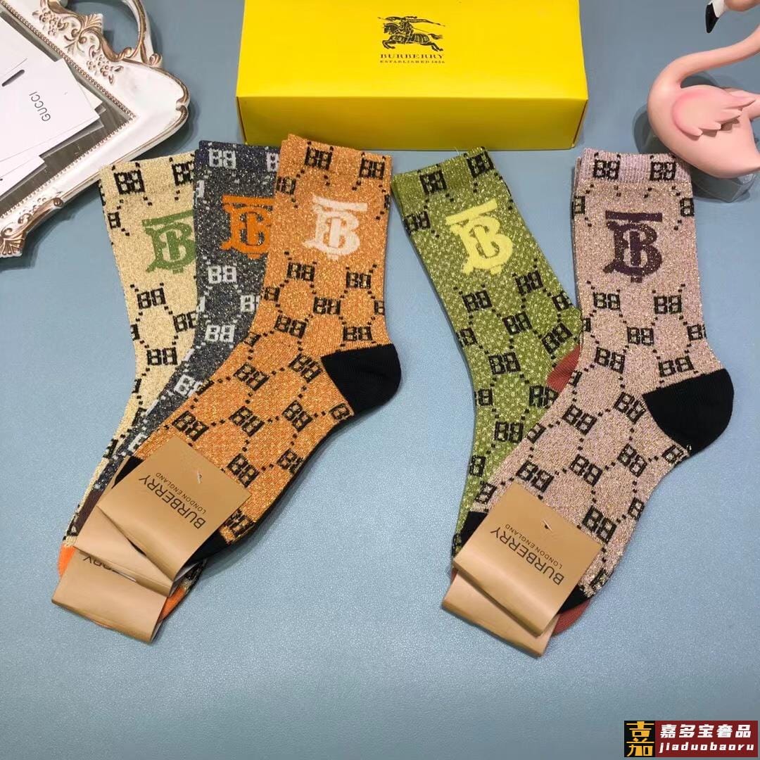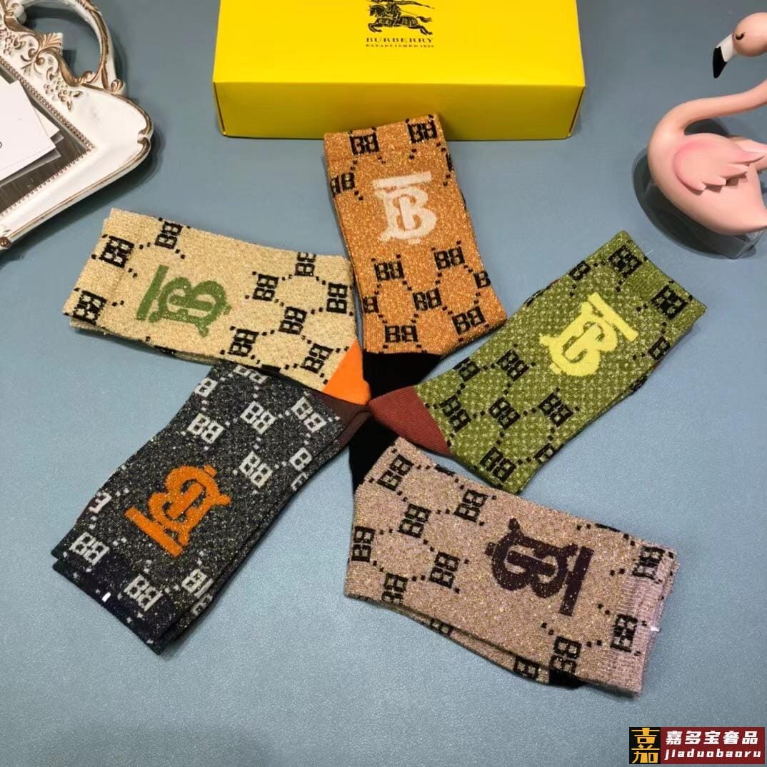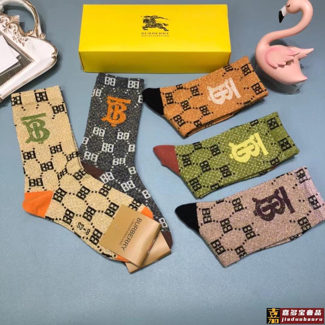 配包装一盒双巴宝莉专柜最新款短款袜子家专柜同步中长袜经典字母