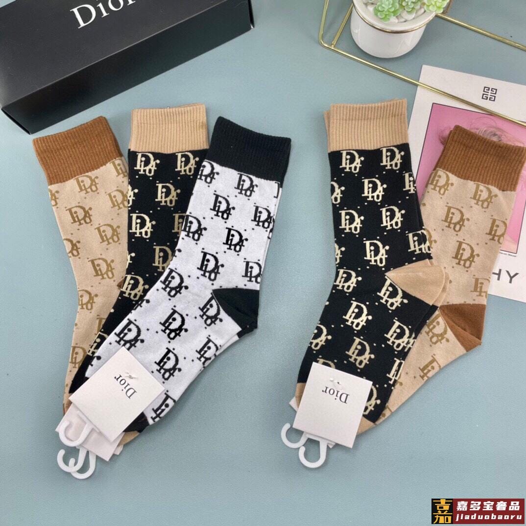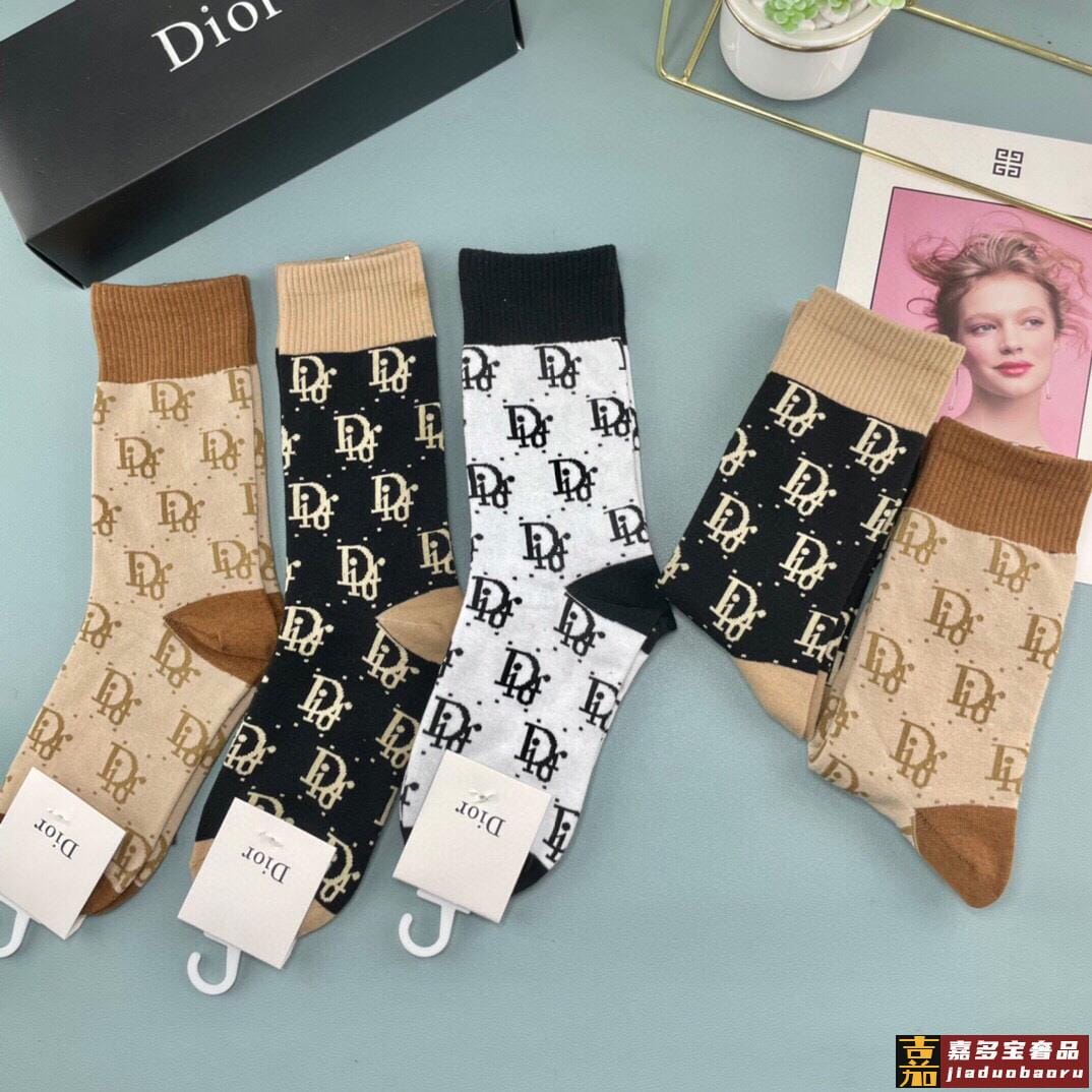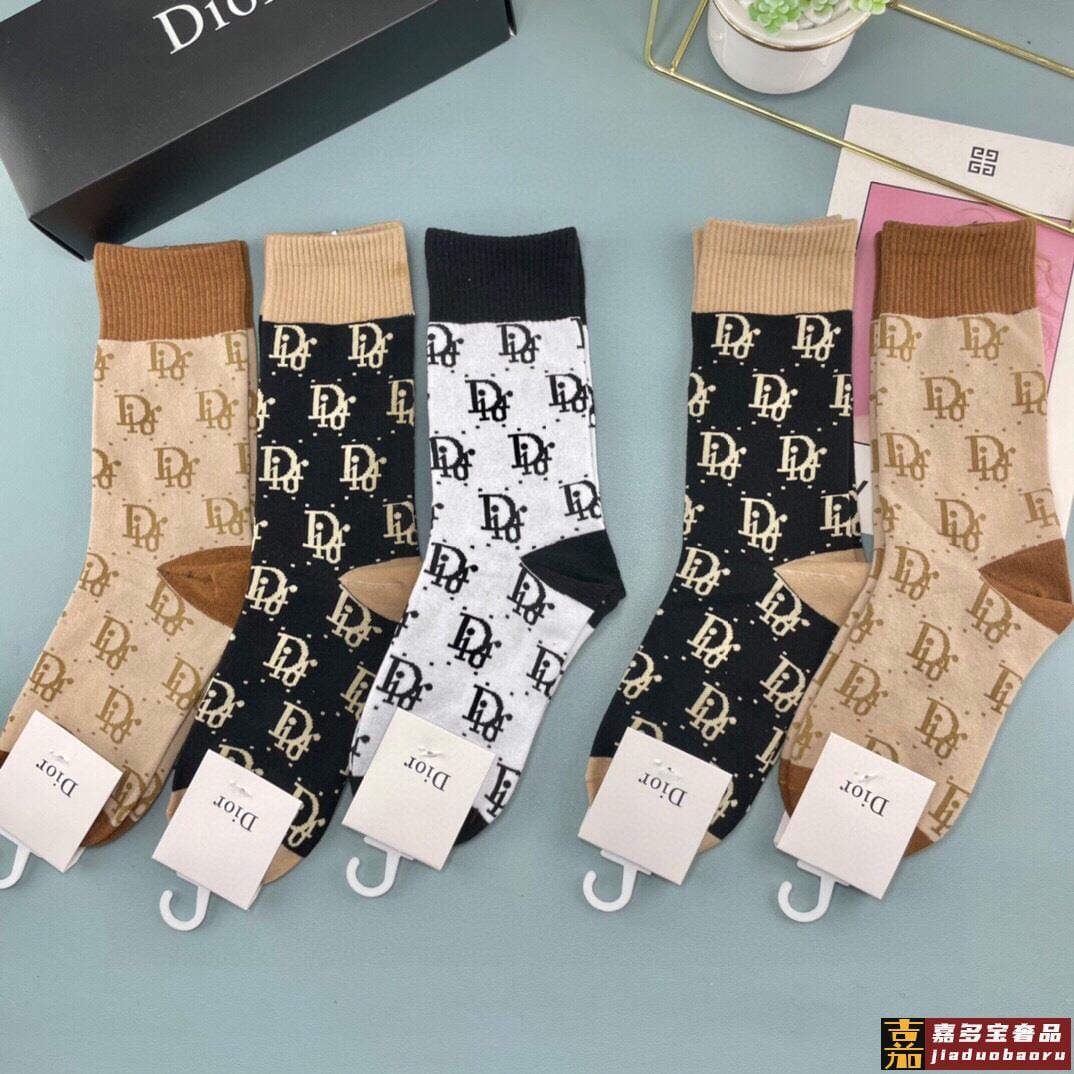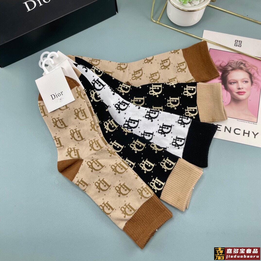 迪奥袜子中筒字母袜情侣袜纯棉男女同款长袜潮袜