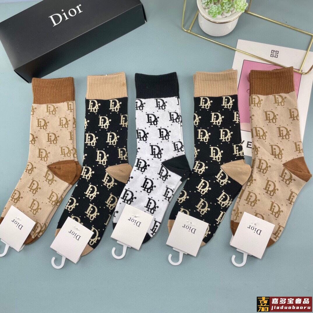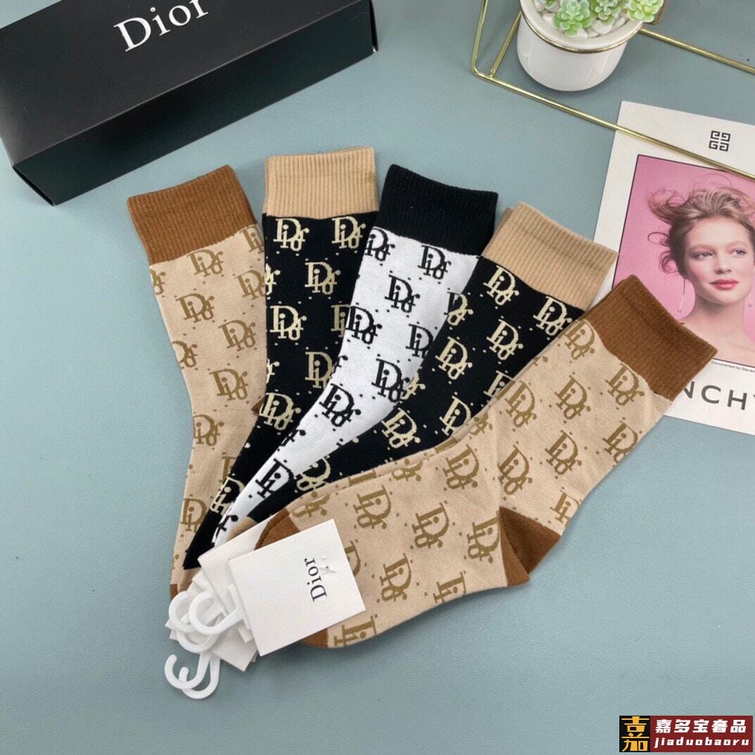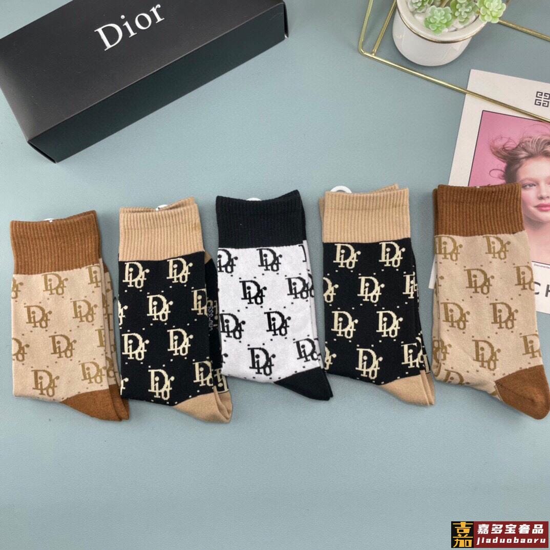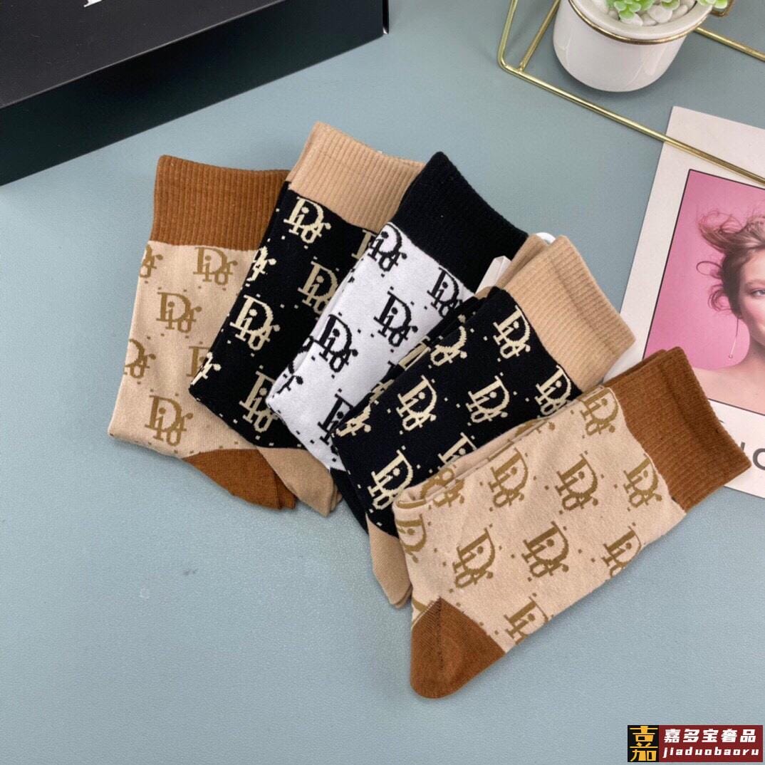 迪奥袜子中筒字母袜情侣袜纯棉男女同款长袜潮袜