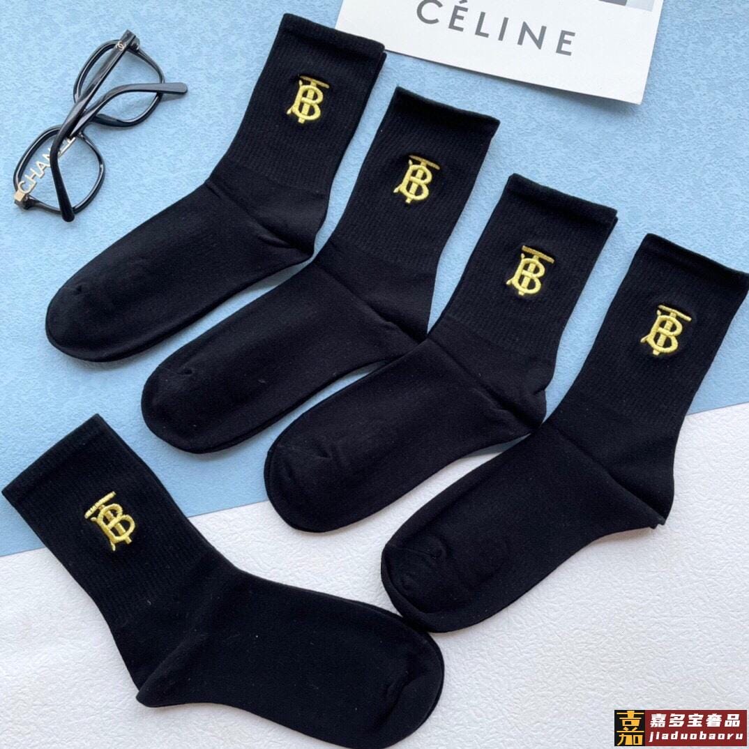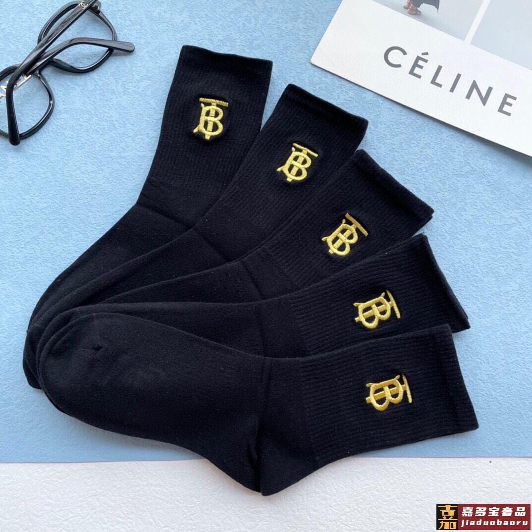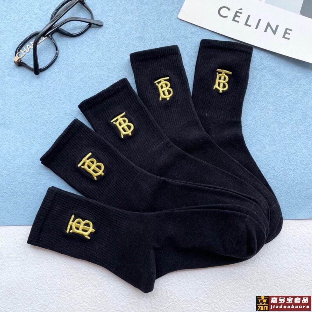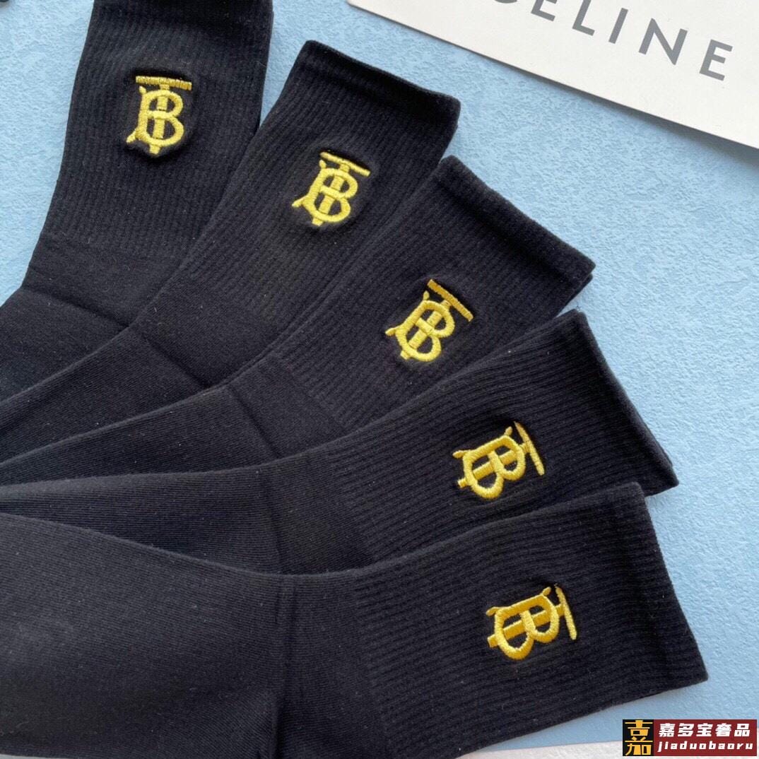配包装一盒五双巴宝莉专柜最新款刺绣袜子巴家专柜同步中长袜经典