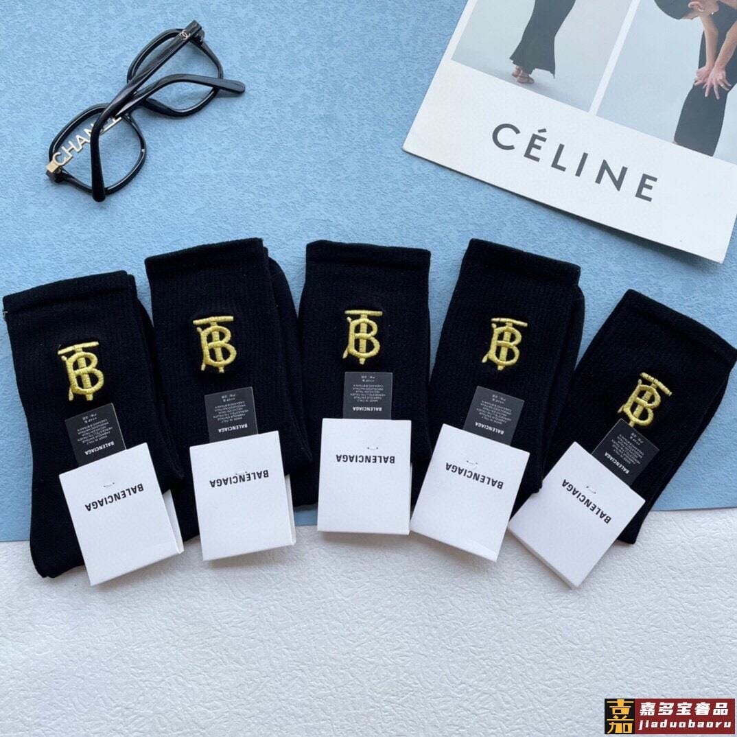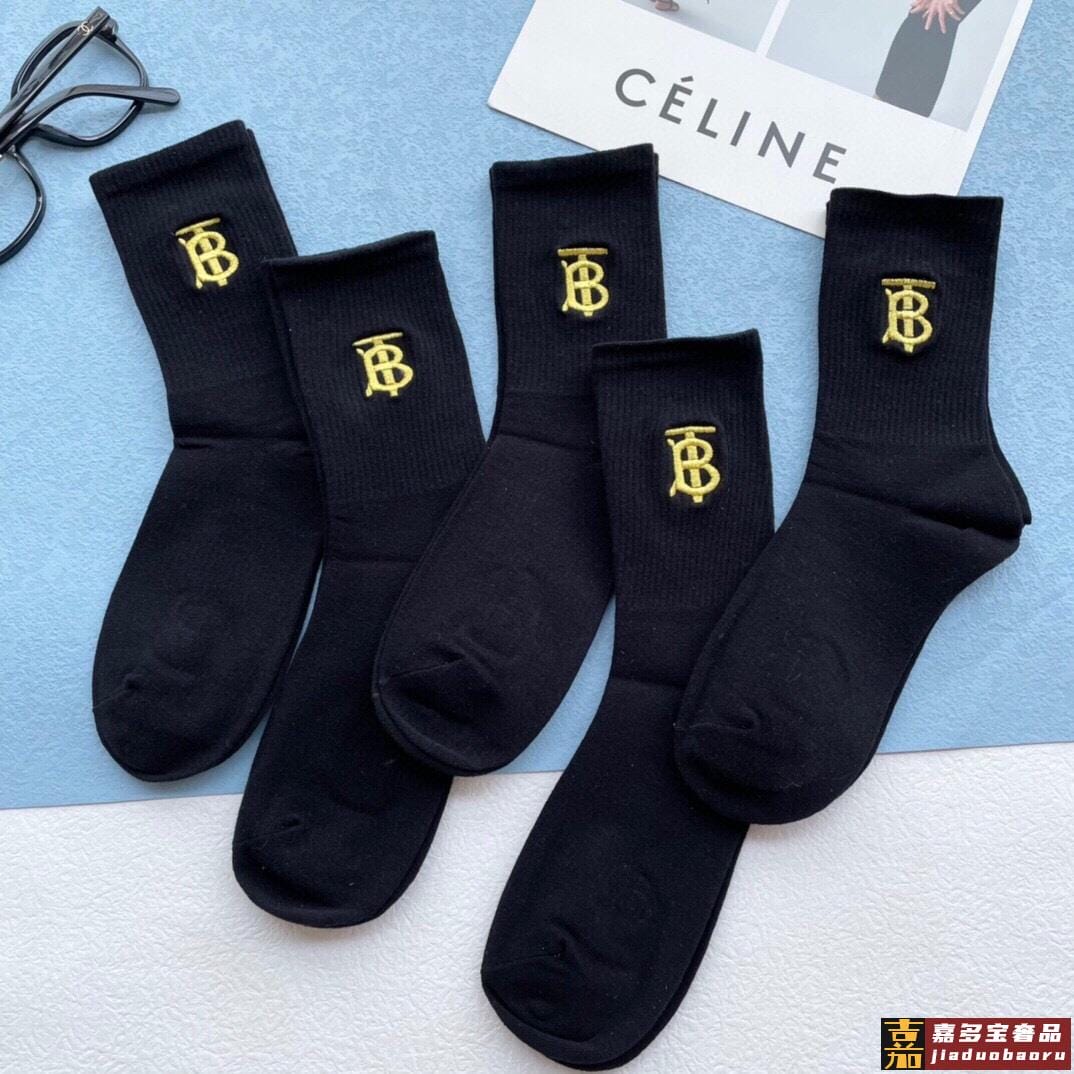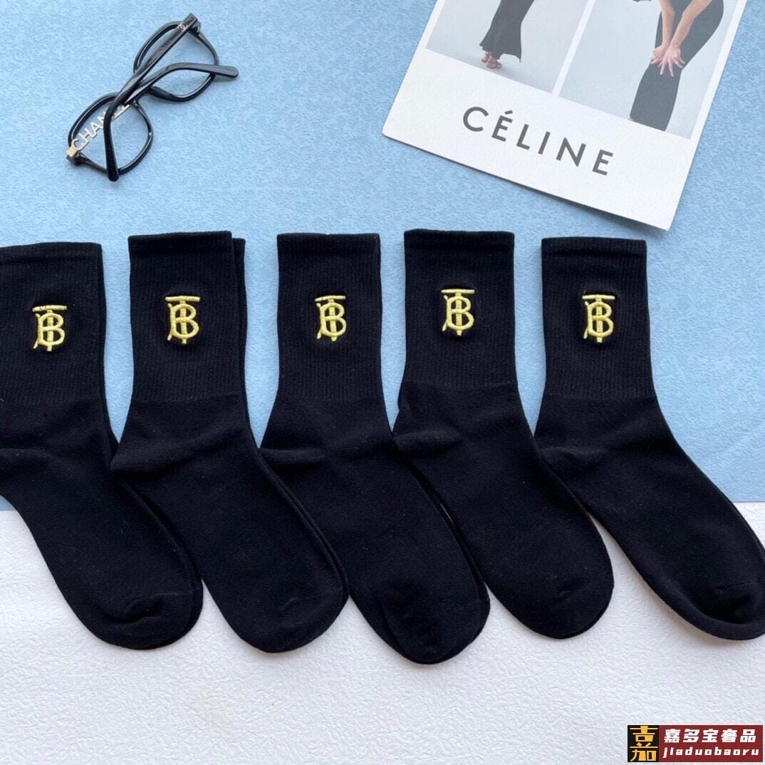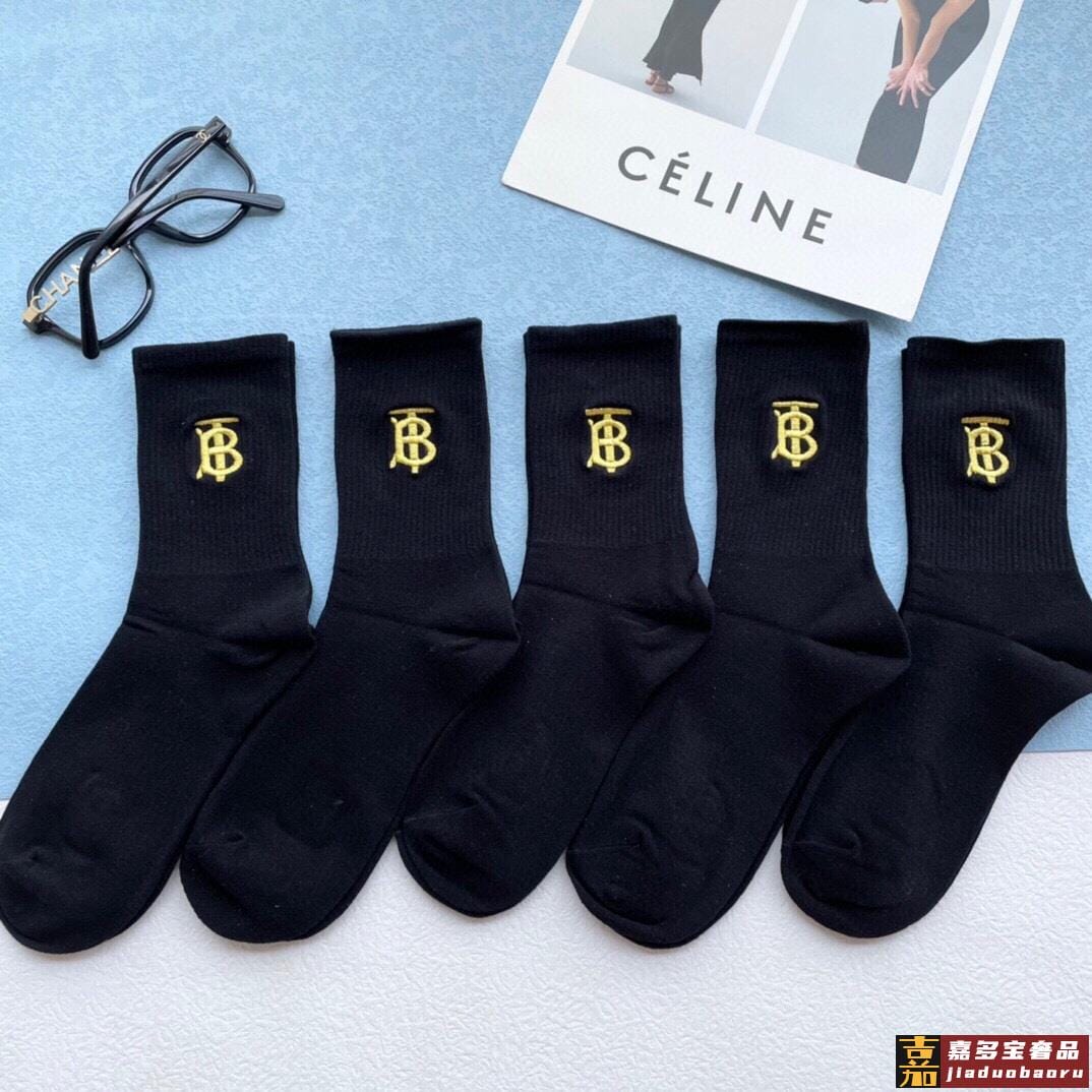 配包装一盒五双巴宝莉专柜最新款刺绣袜子巴家专柜同步中长袜经典