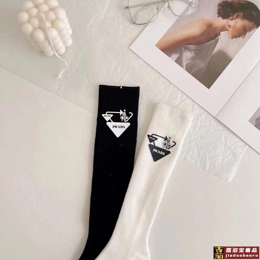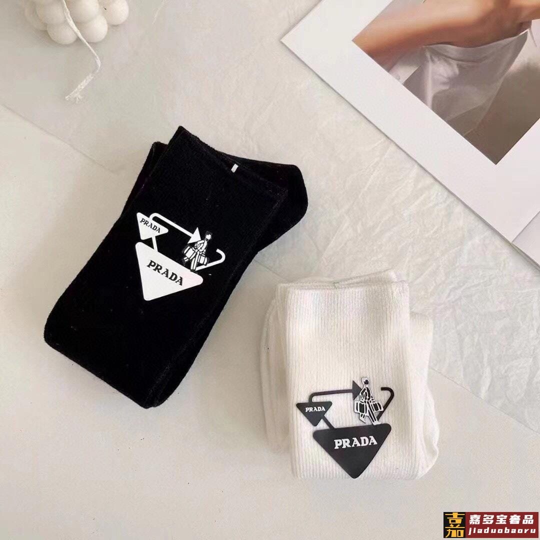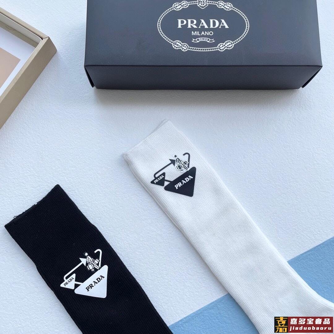 配包装一盒二双普拉达超级爆款网红袜子家官网同步提花字母小腿袜