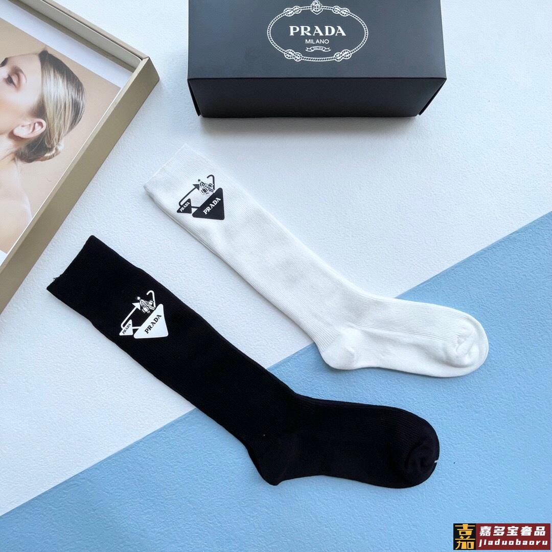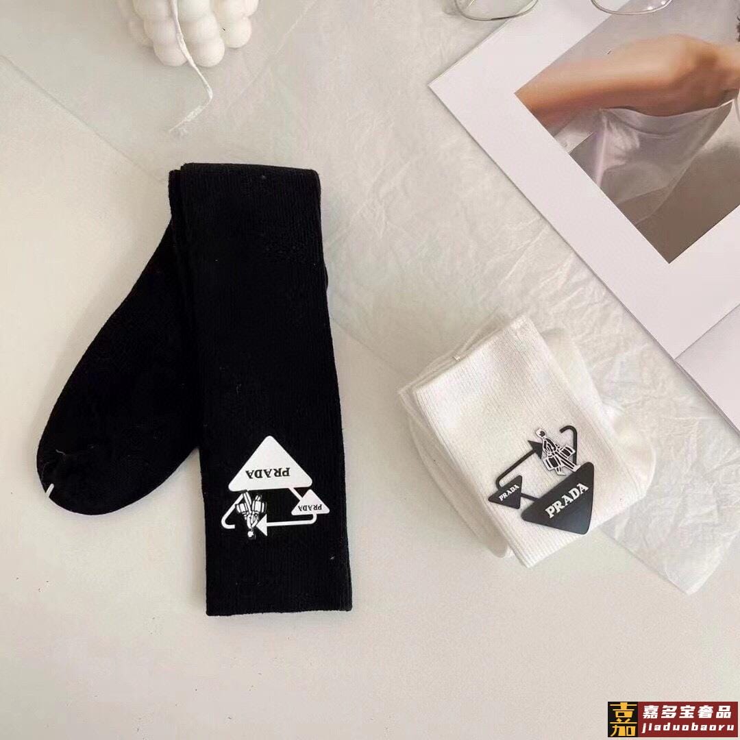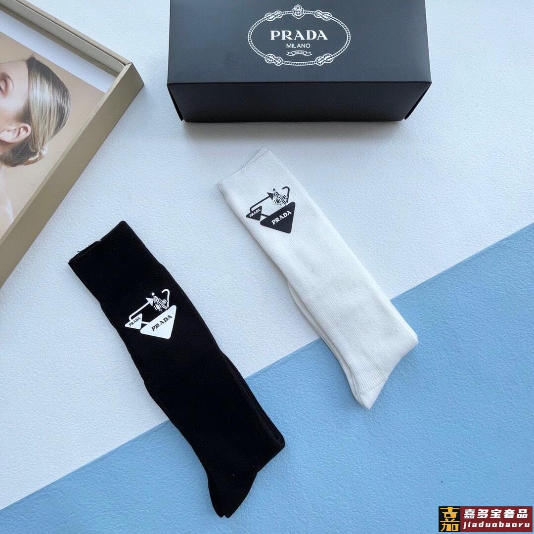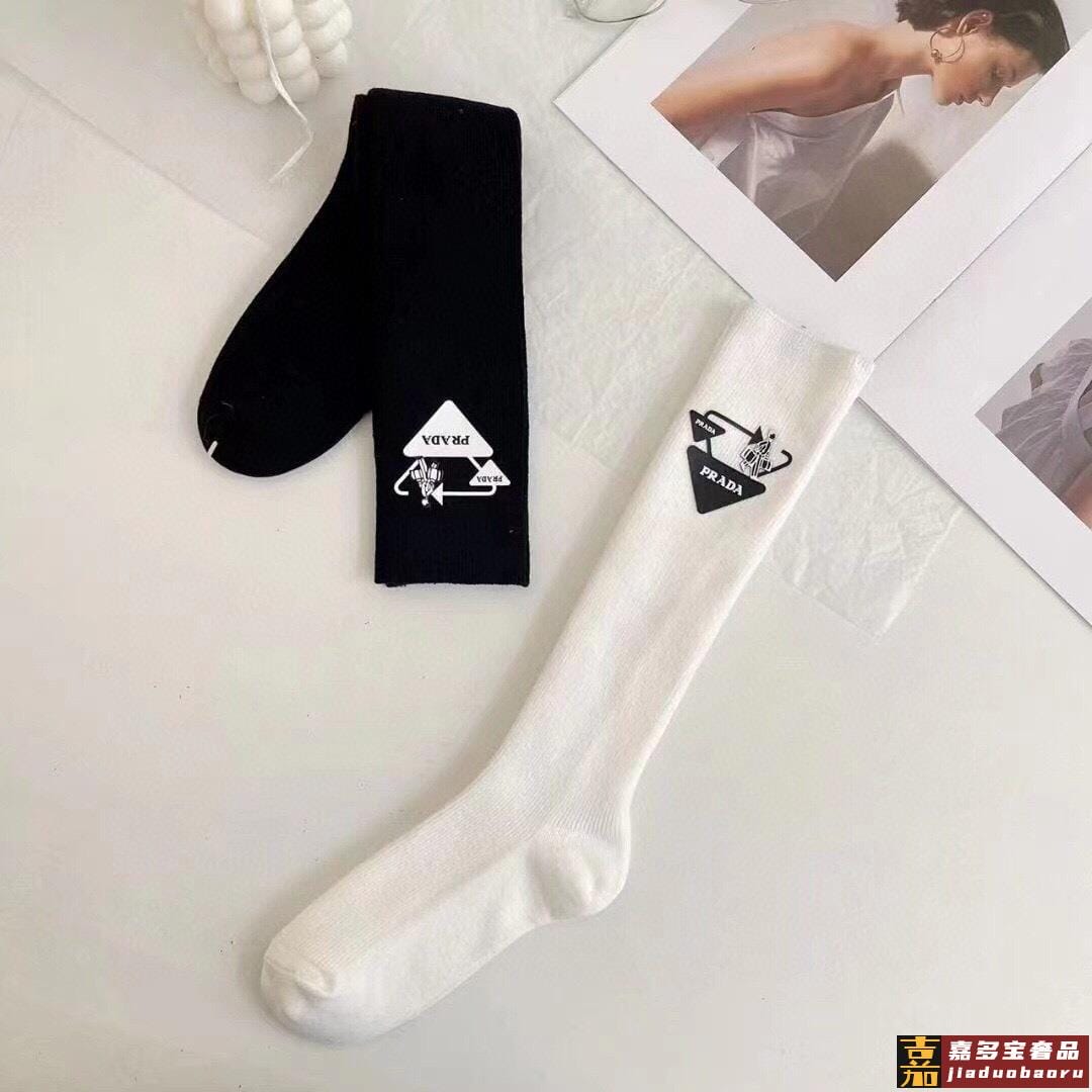 配包装一盒二双普拉达超级爆款网红袜子家官网同步提花字母小腿袜