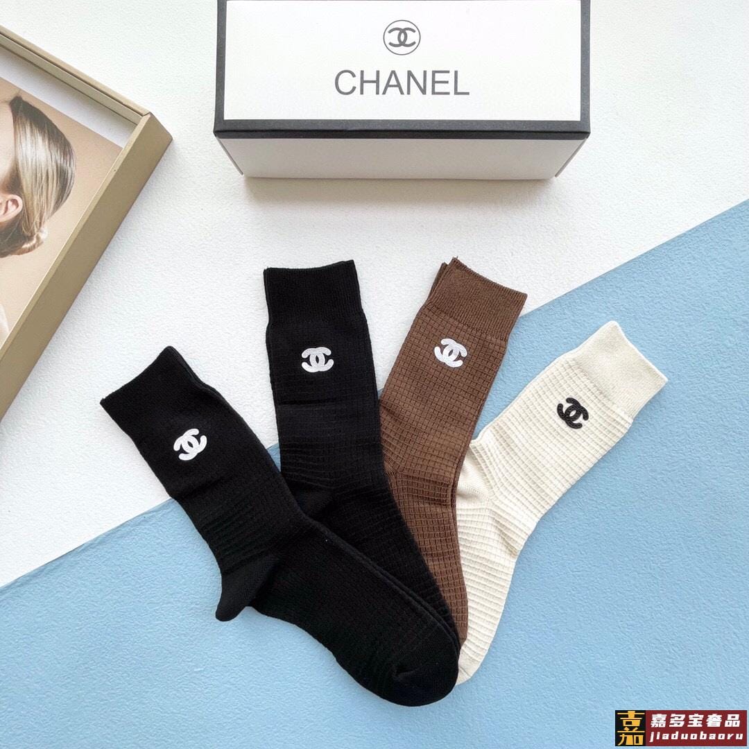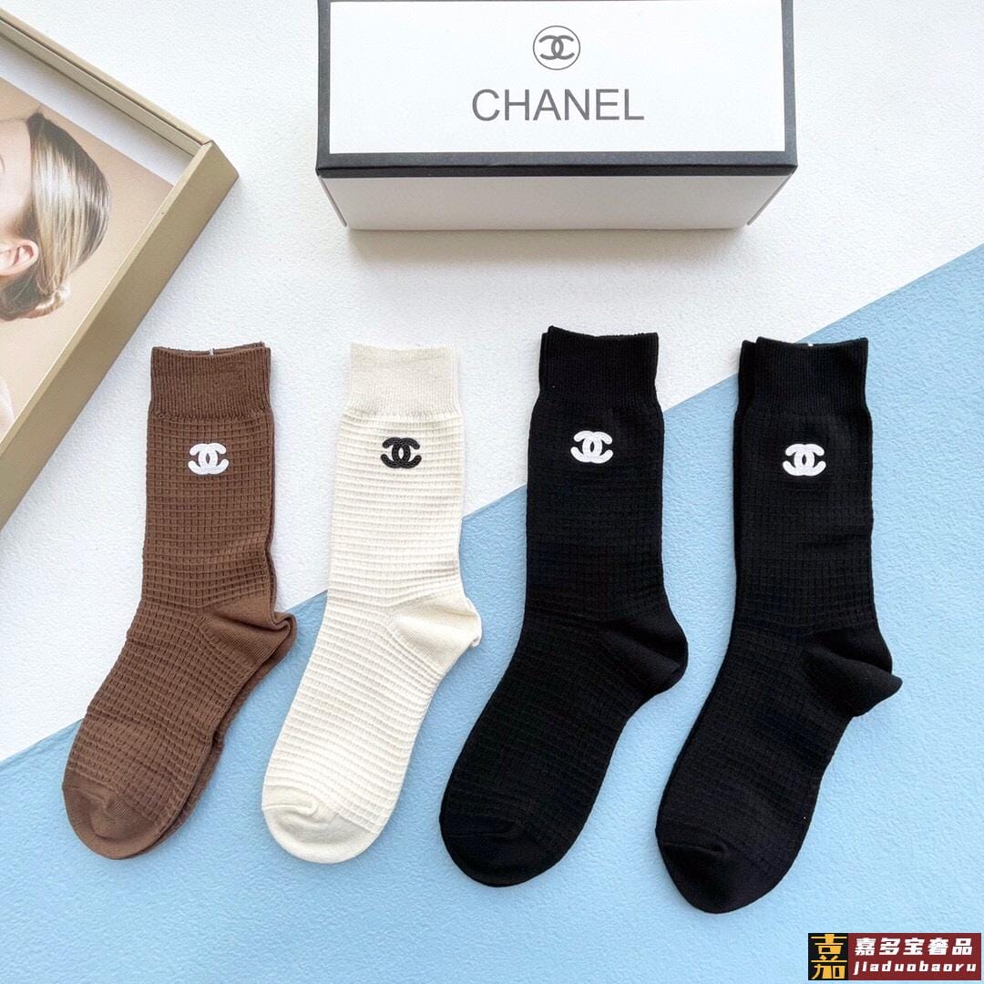 配包装一盒四双香奈儿高品质超级爆款网红袜子小香家官网同步烫印