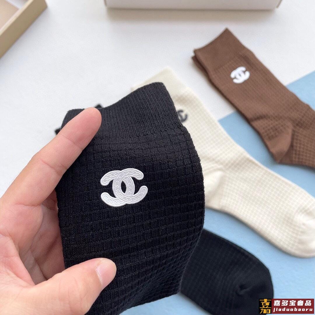 配包装一盒五双香奈儿高品质超级火爆网红袜子家官网同步刺绣字母