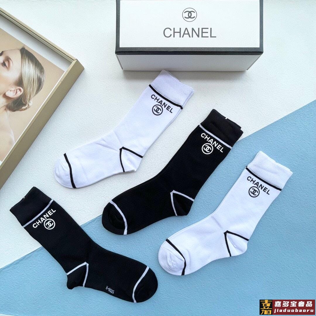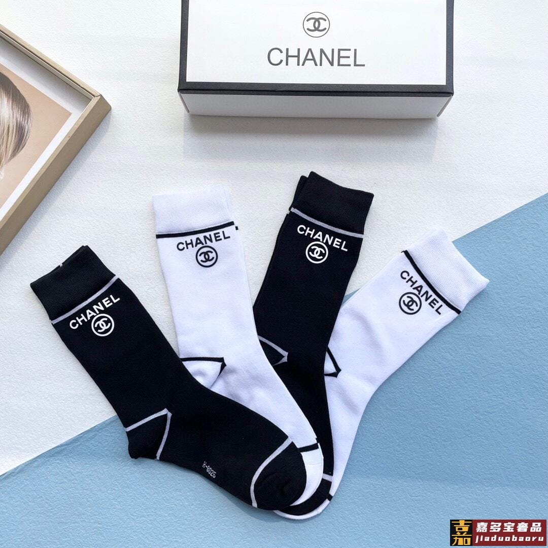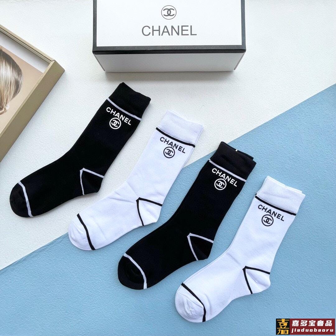 配包装一盒四双香奈儿高品质超级爆款网红袜子小香家官网同步烫印