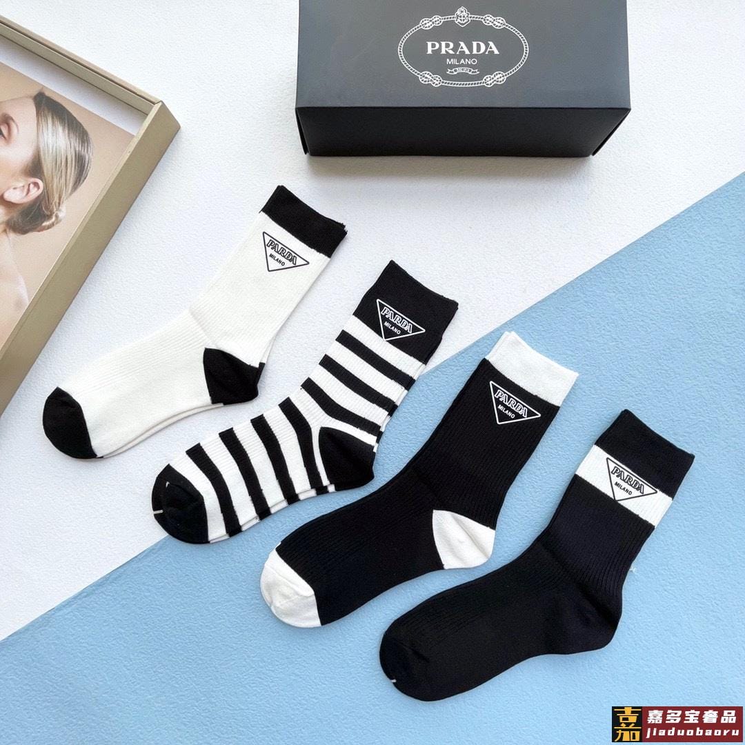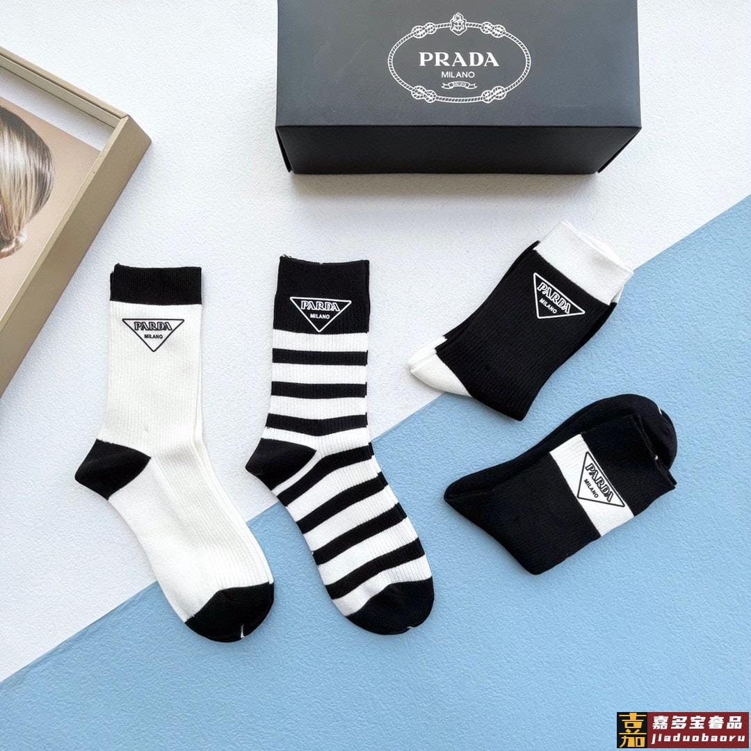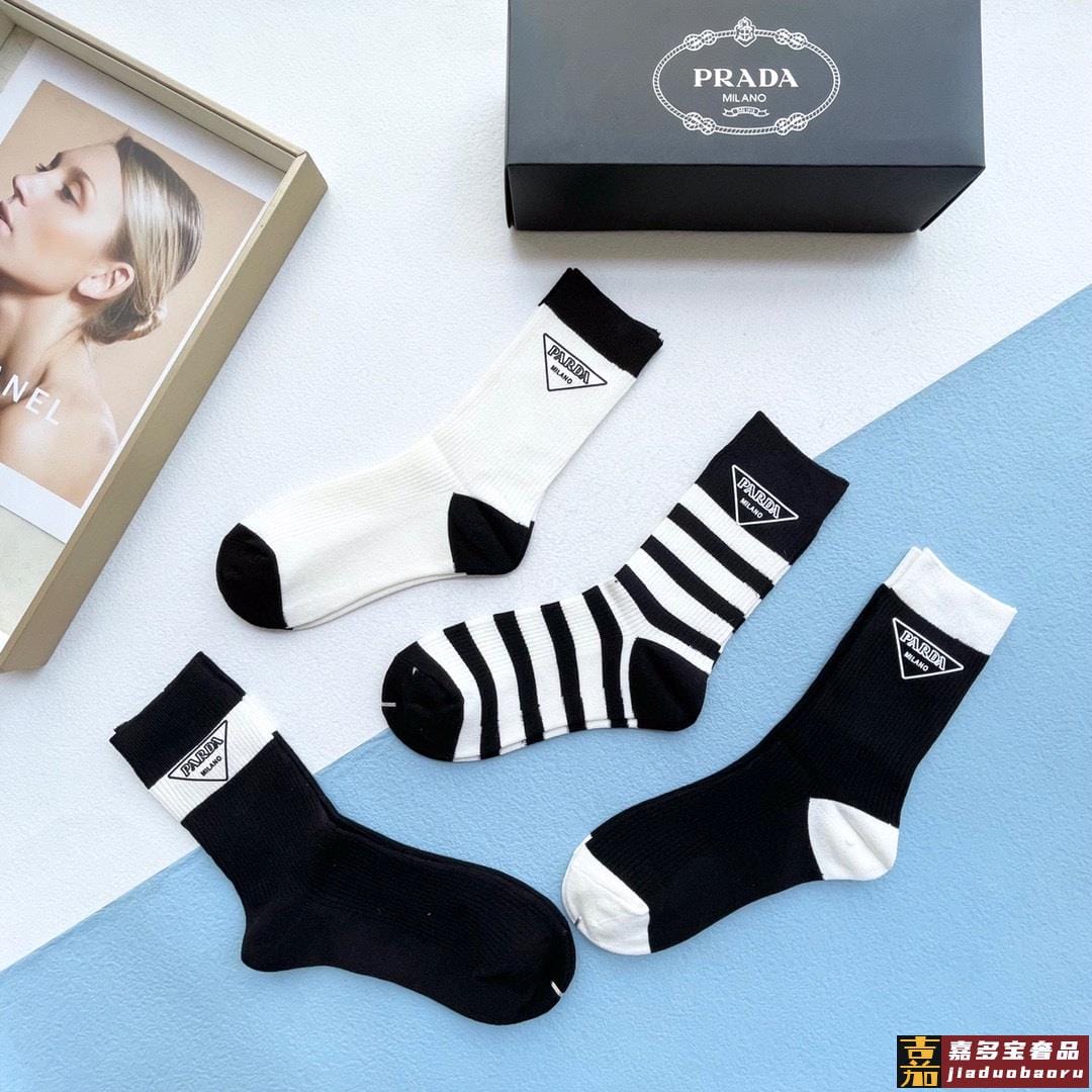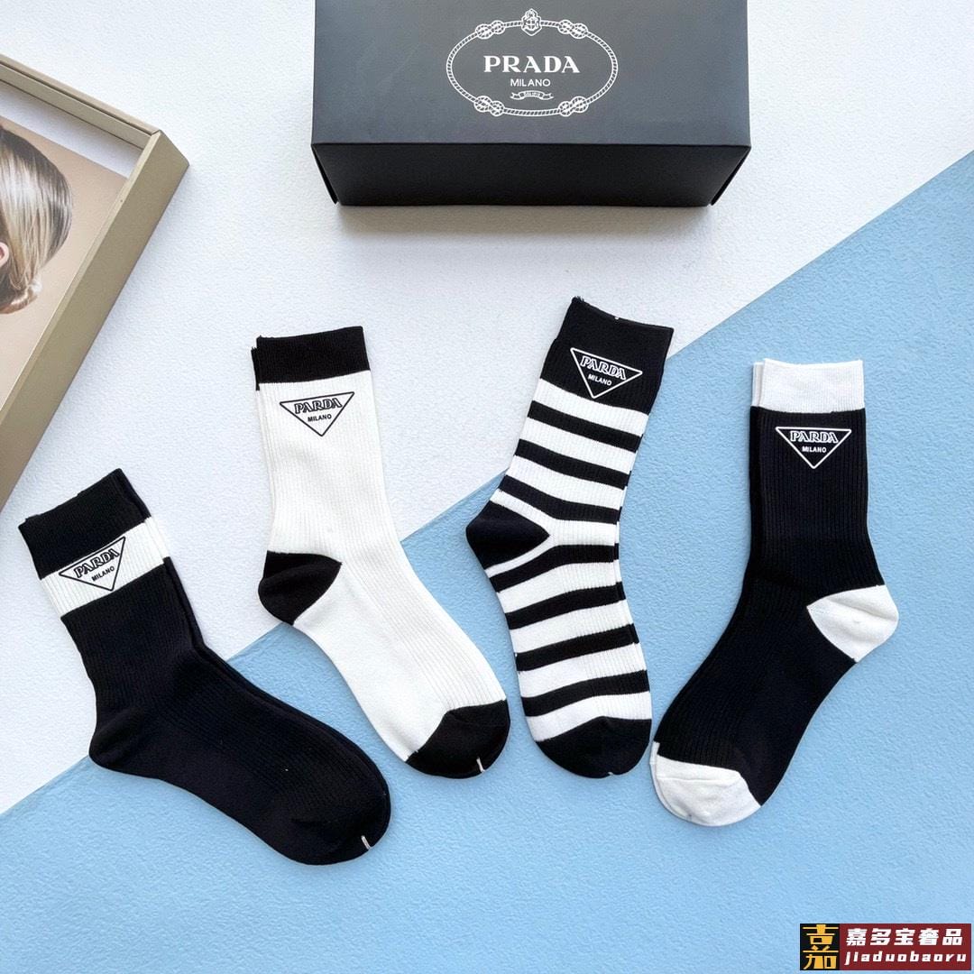 配包装一盒四双普拉达高品质超级爆款网红袜子家官网同步刺绣字母