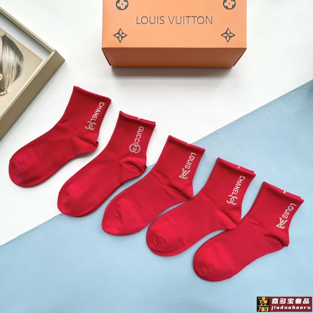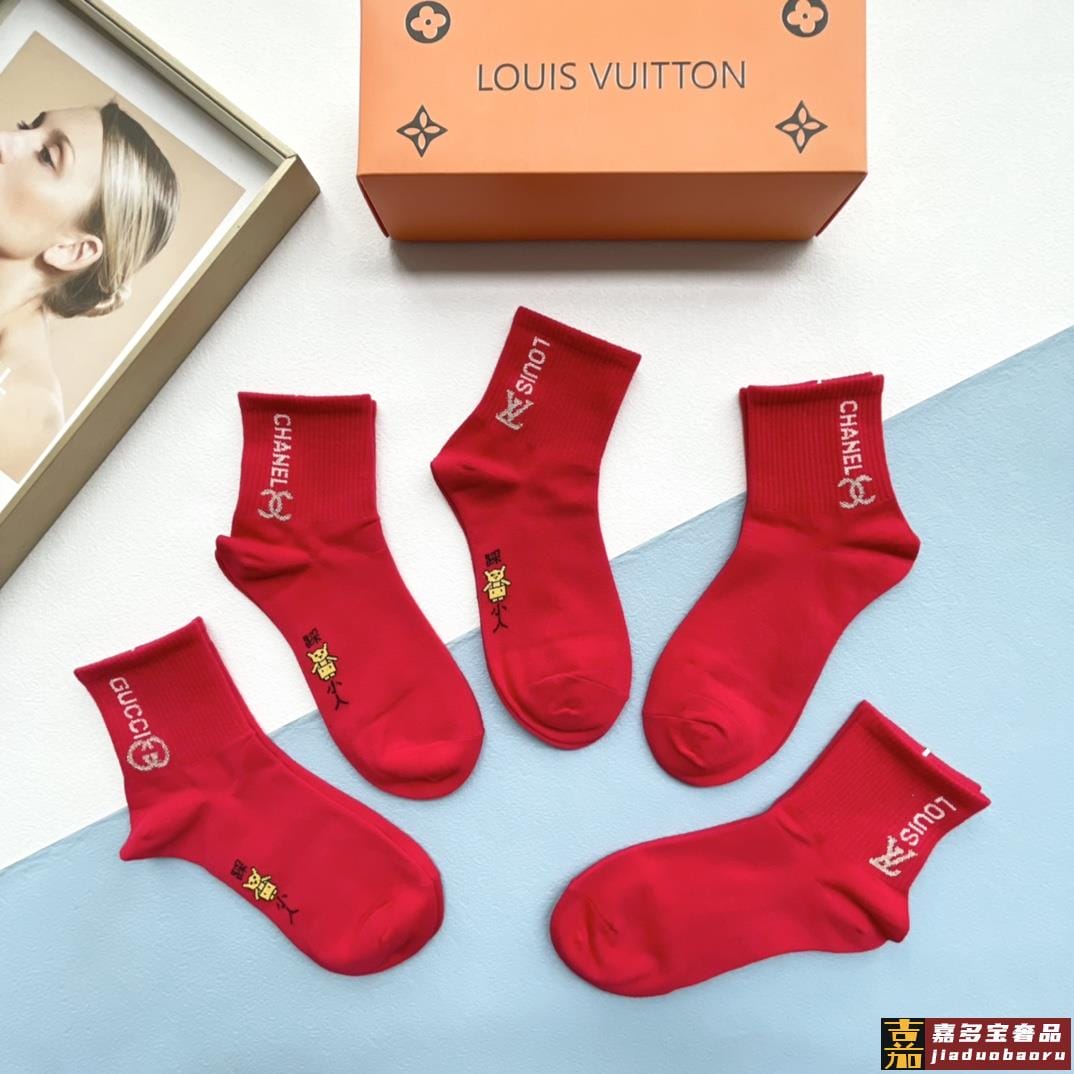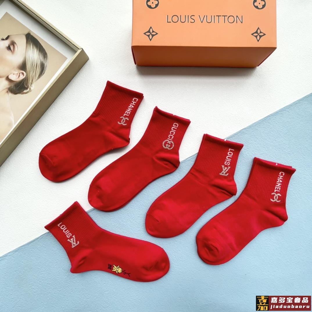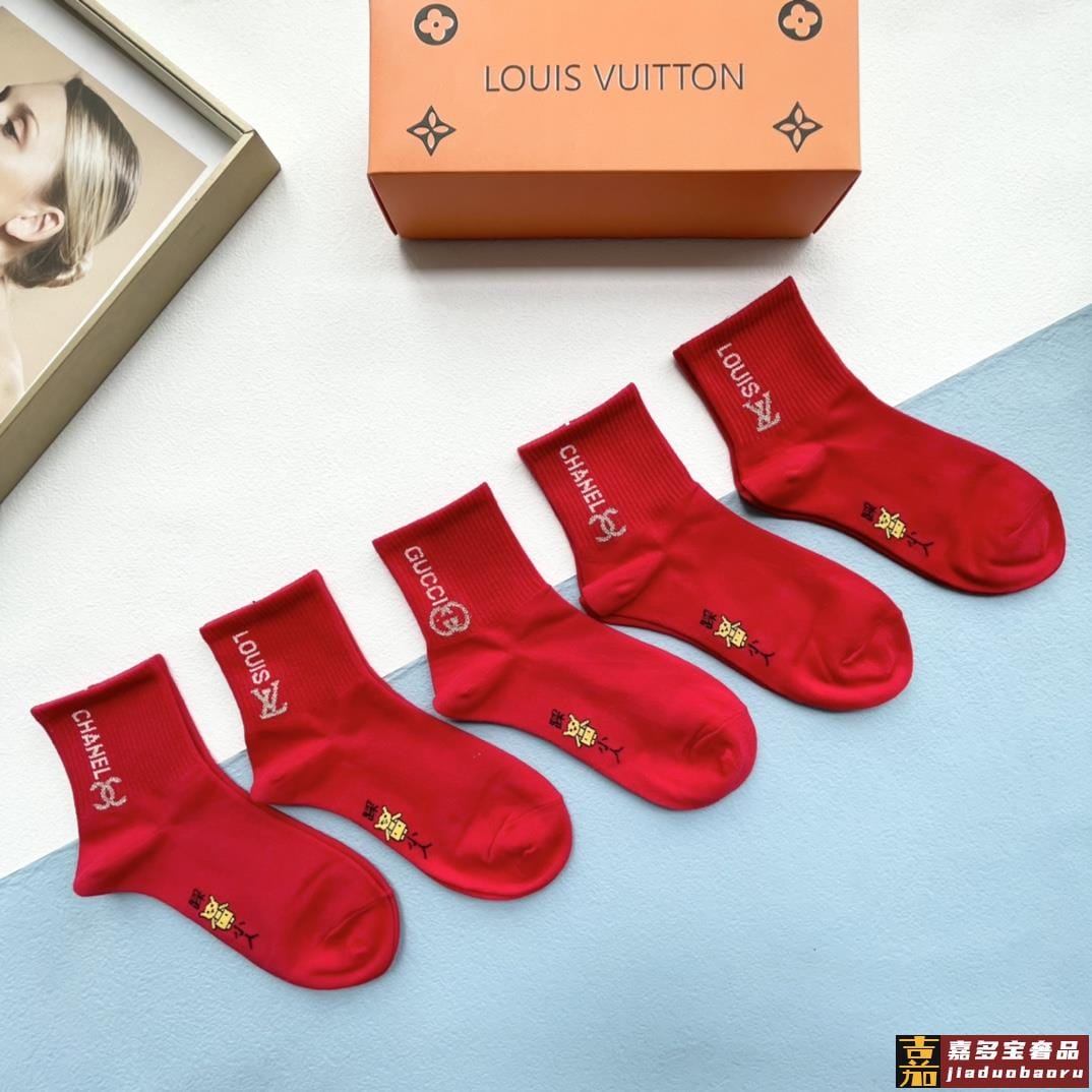 配包装一盒五双红红火火大红袜欧美大牌新款经典中筒堆堆袜袜子专