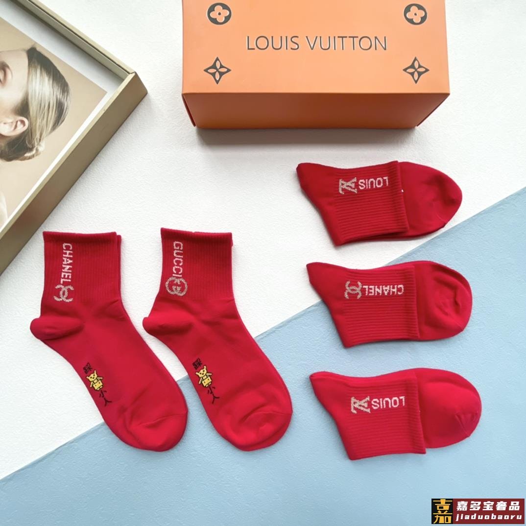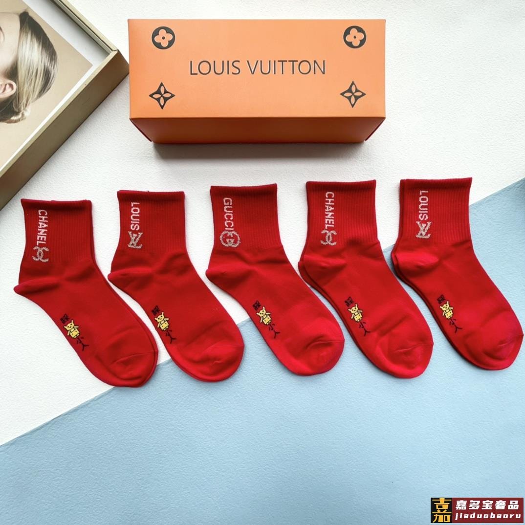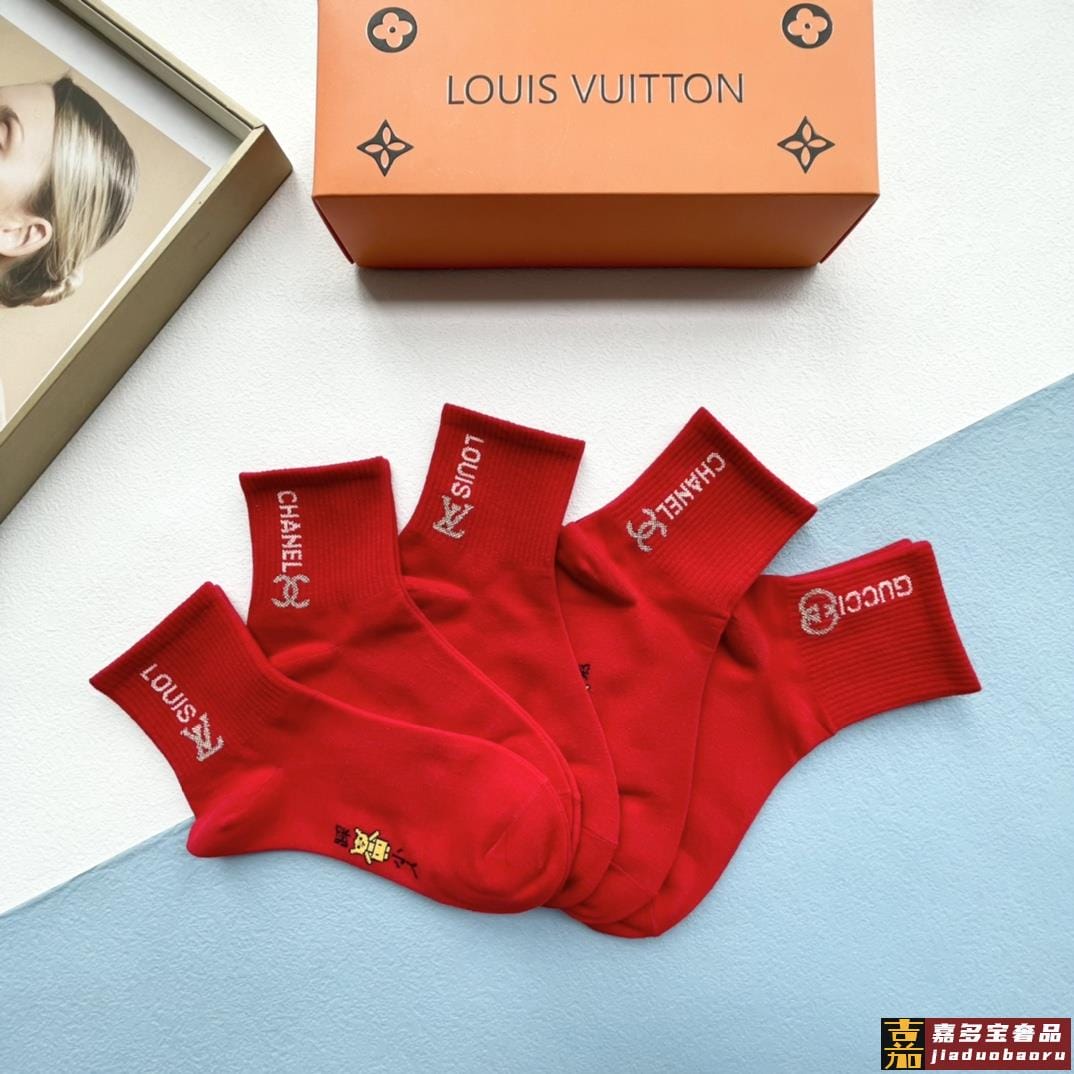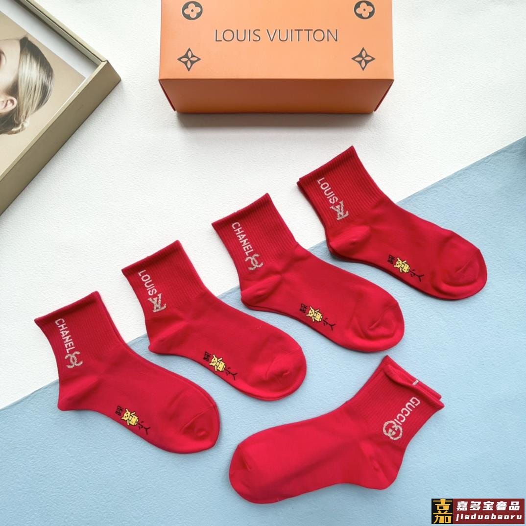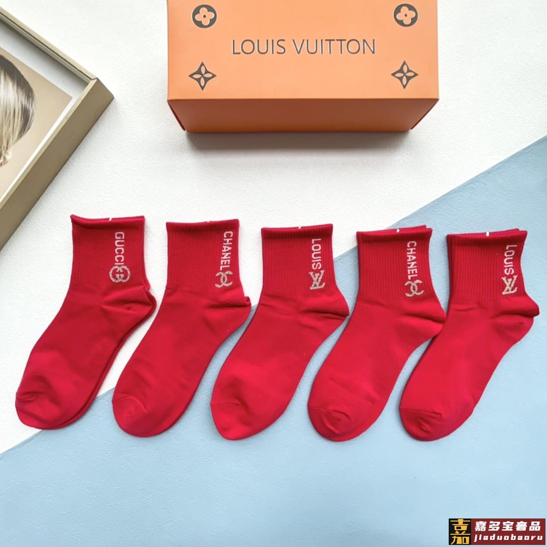 配包装一盒五双红红火火大红袜欧美大牌新款经典中筒堆堆袜袜子专