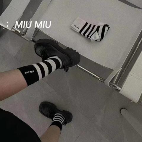 配包装一盒五双缪缪新款经典中长款堆堆袜袜子专柜同步筒款袜子大