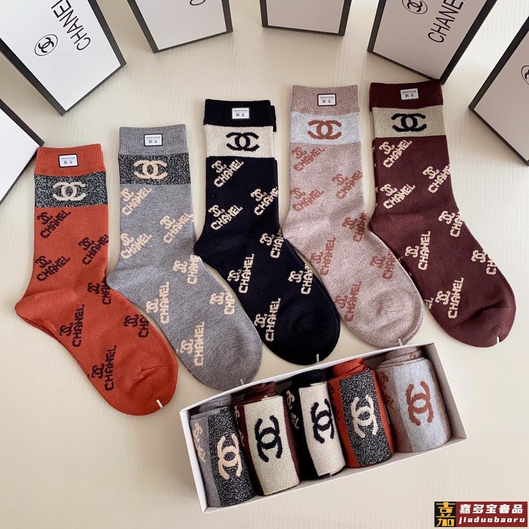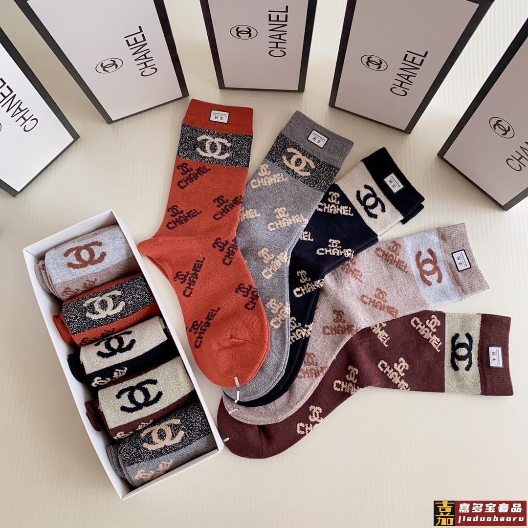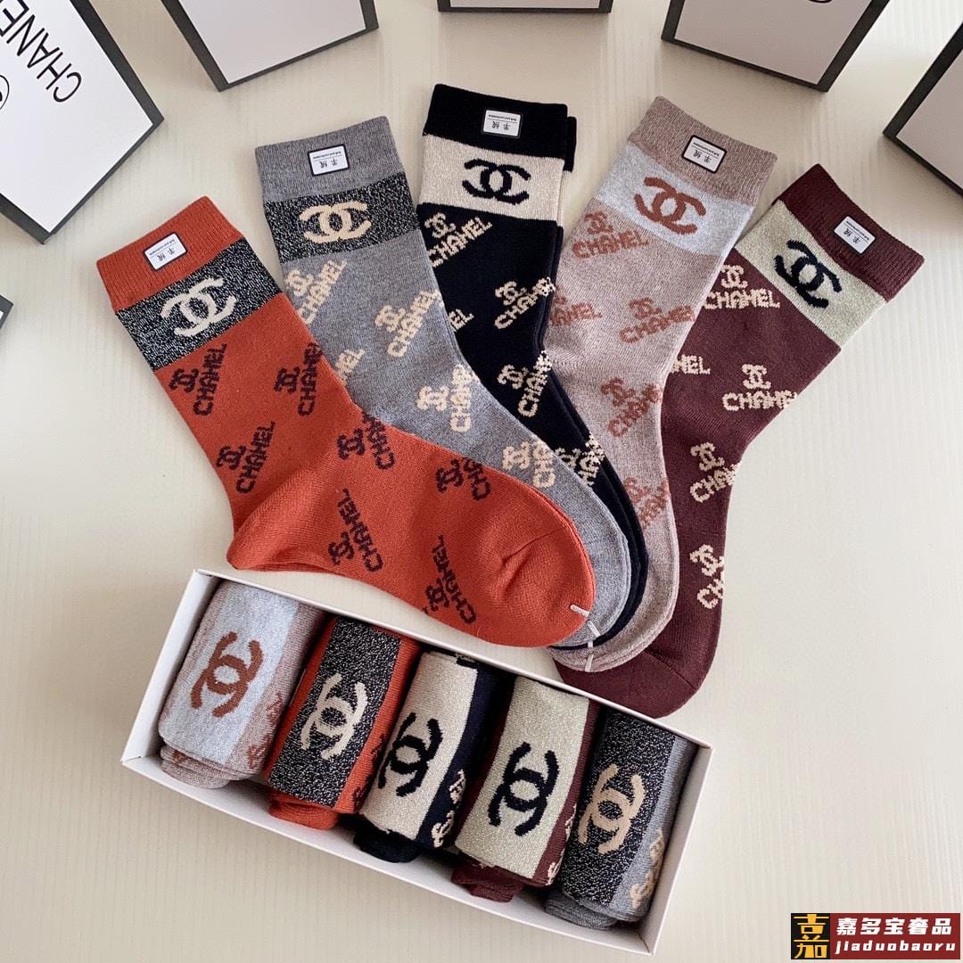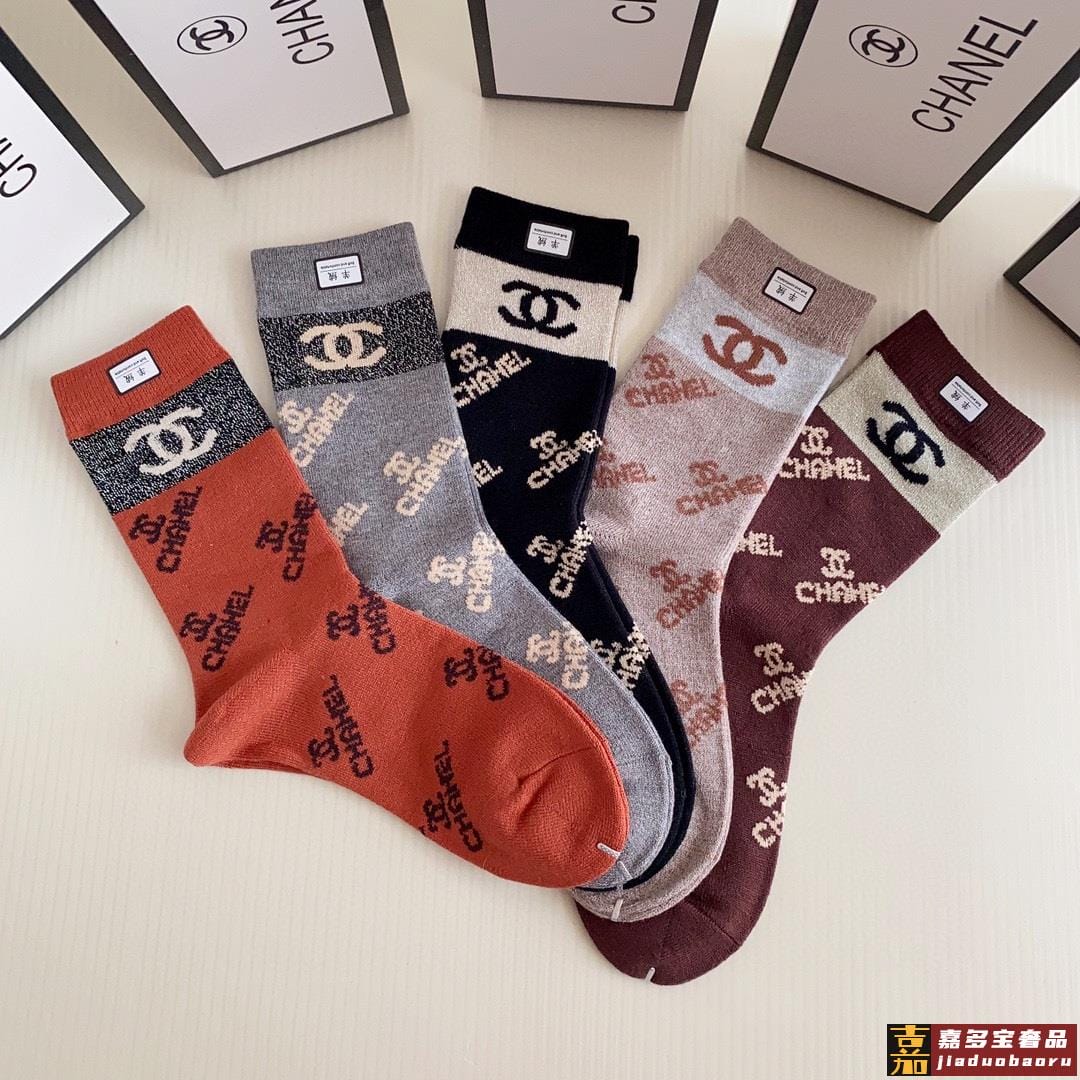 特配专柜包装香奈儿新款中长筒羊绒袜堆堆袜袜子一盒五双专柜同步