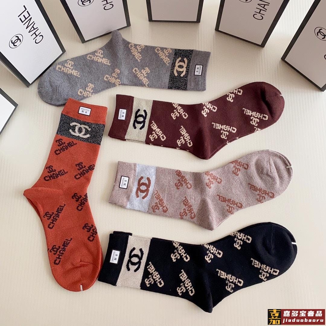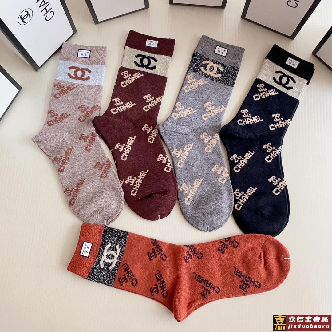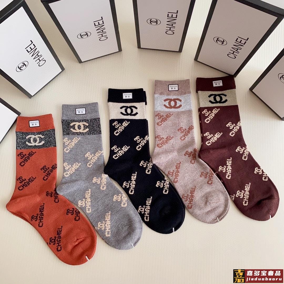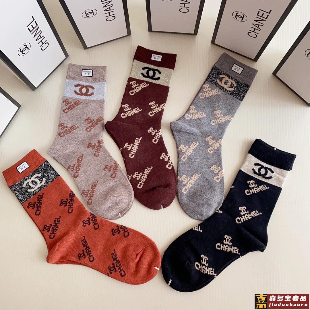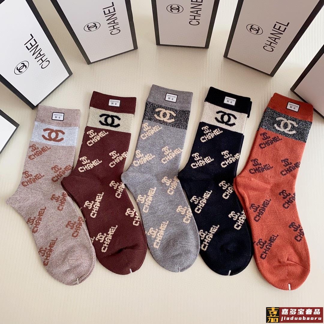 特配专柜包装香奈儿新款中长筒羊绒袜堆堆袜袜子一盒五双专柜同步