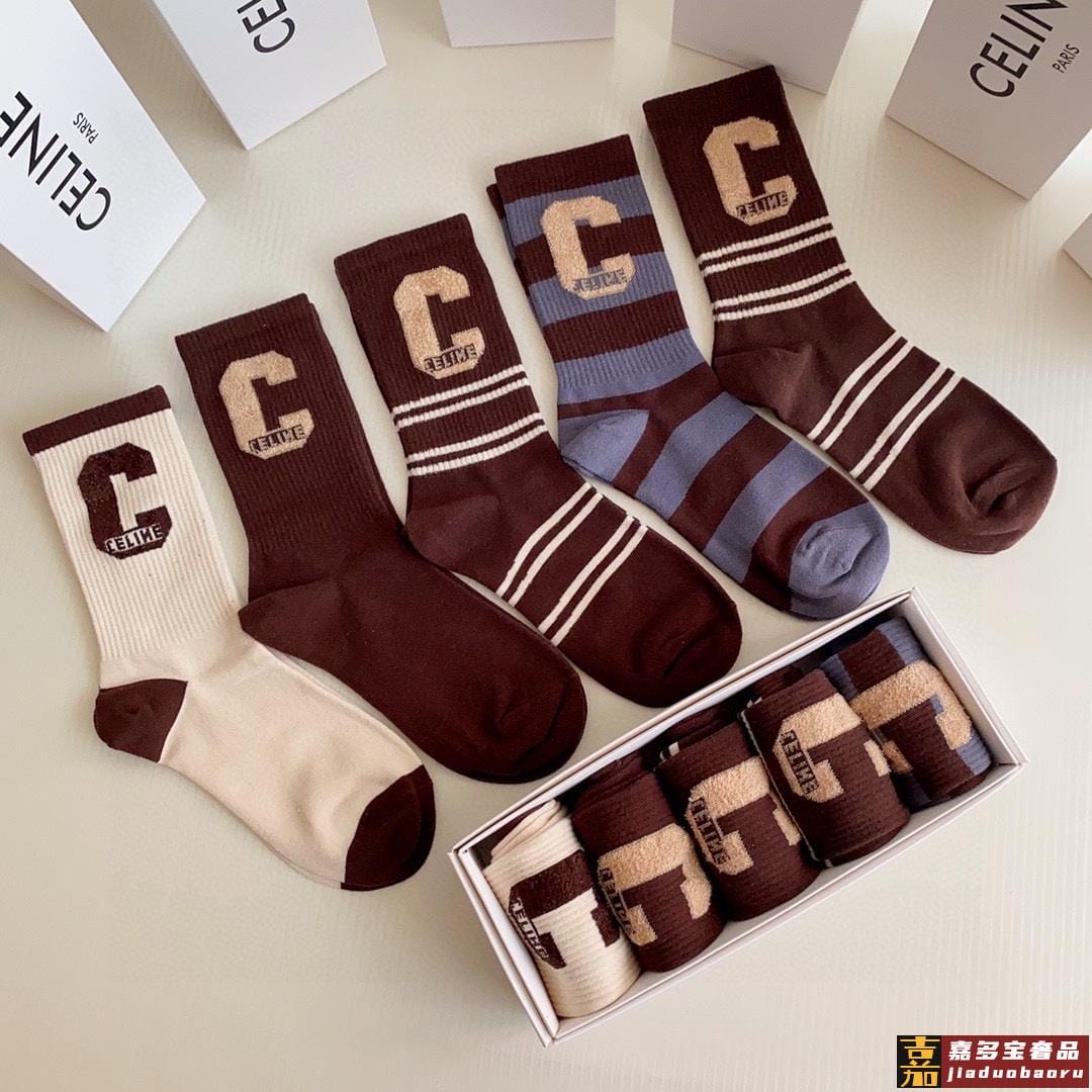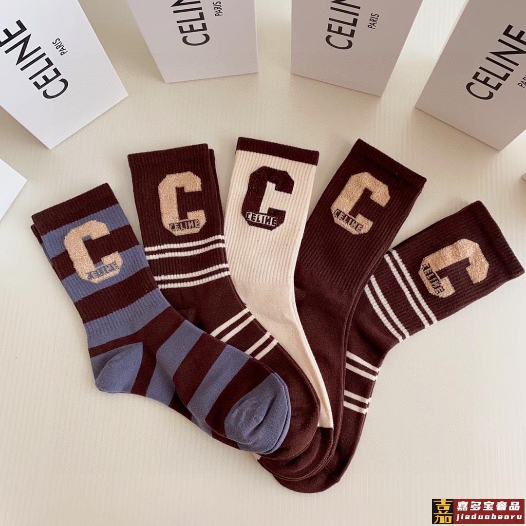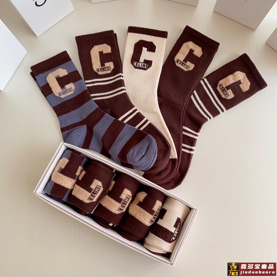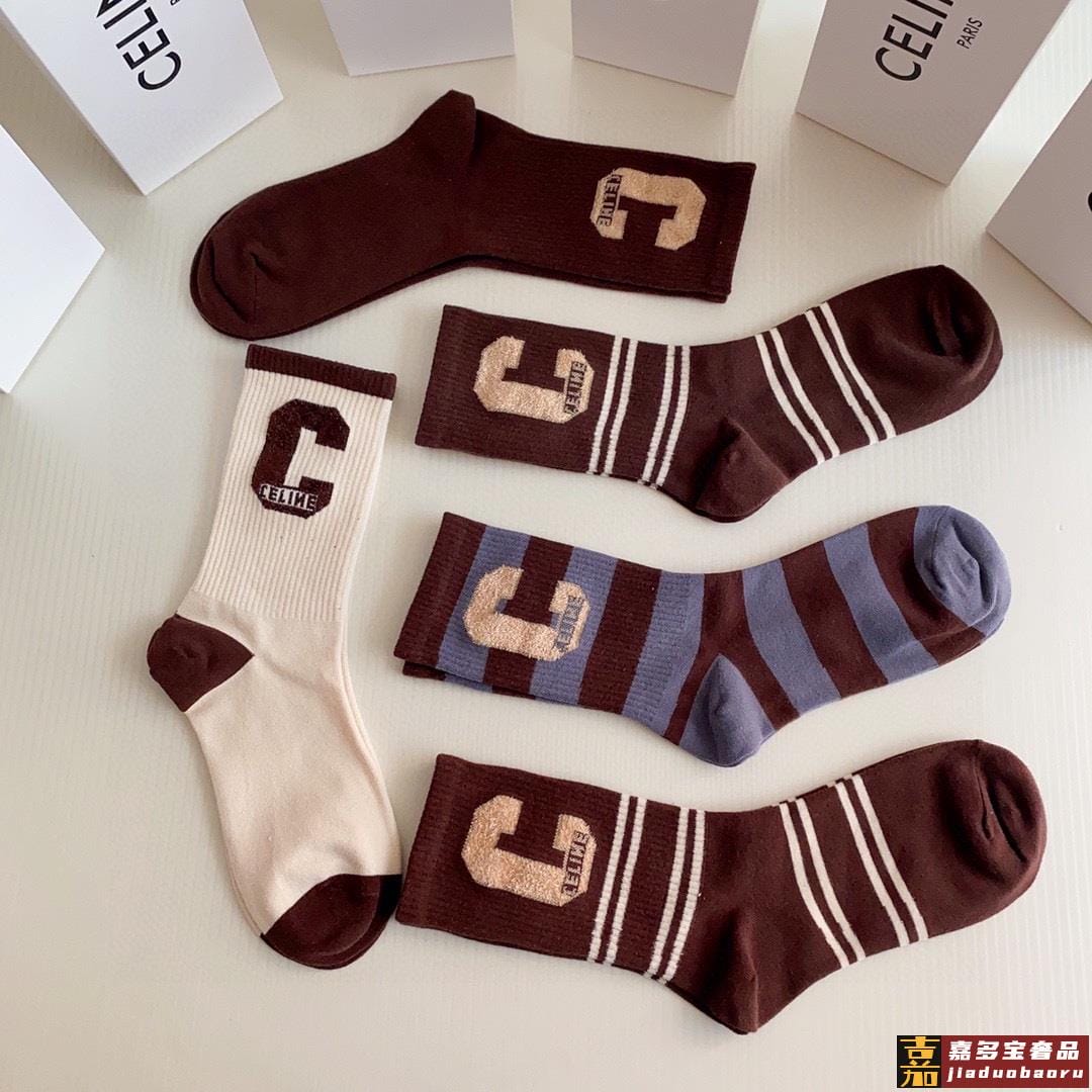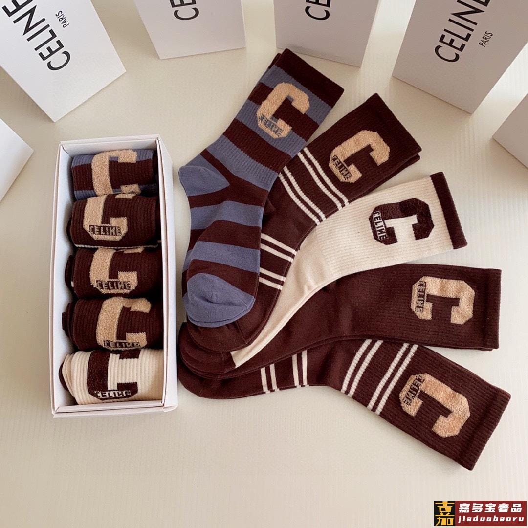 配包装一盒五双赛琳高品质超级火爆网红袜子家官网同步刺绣字母中