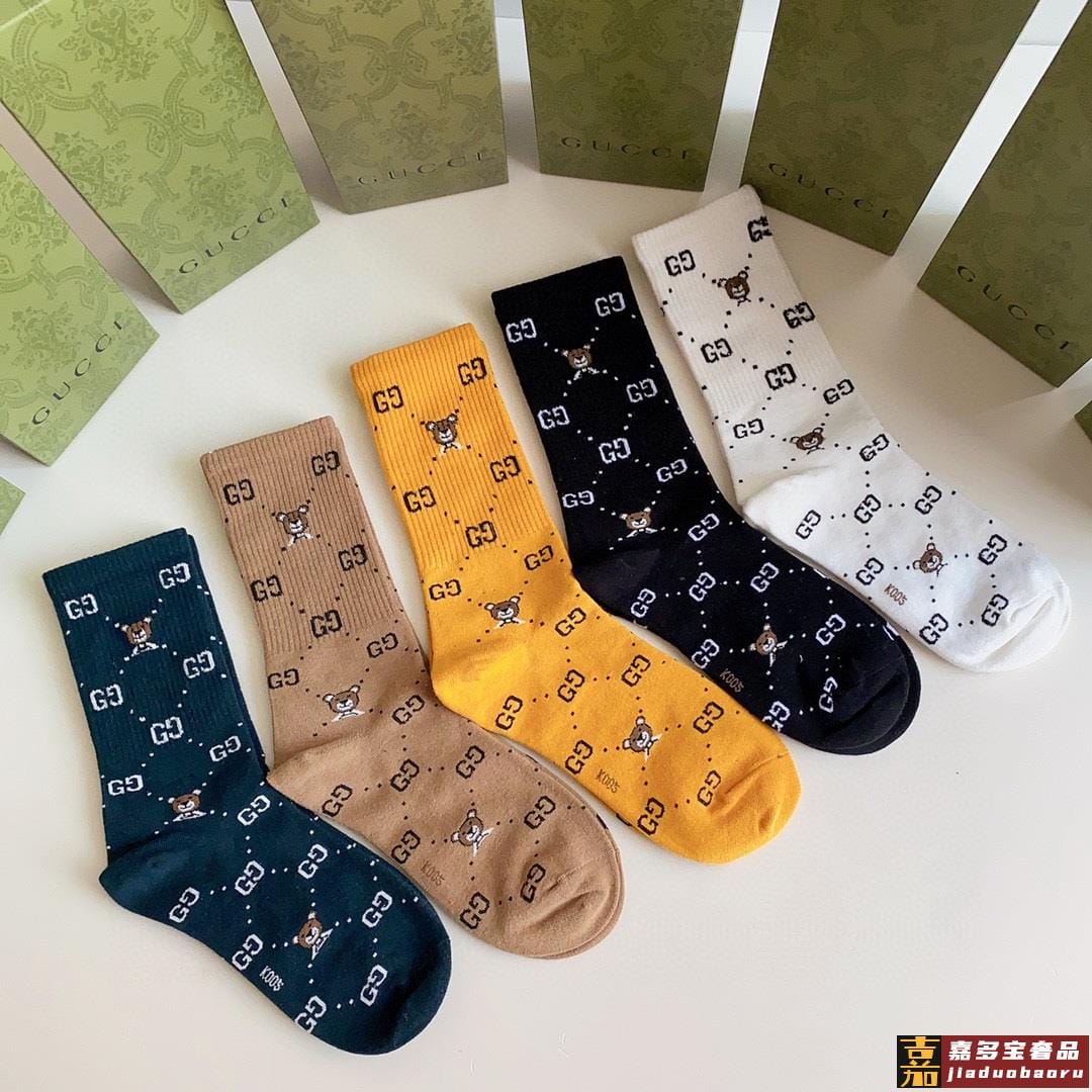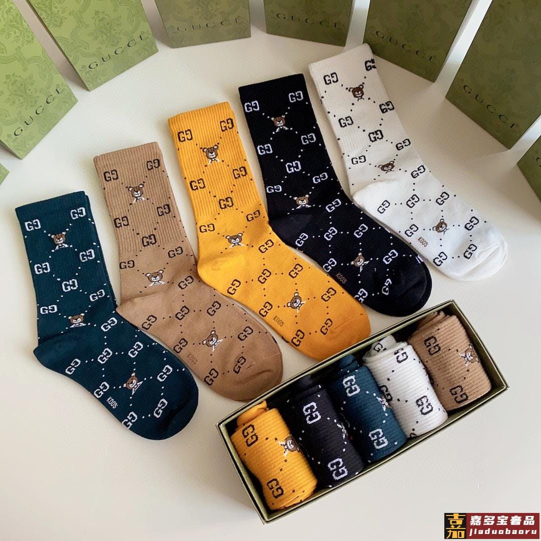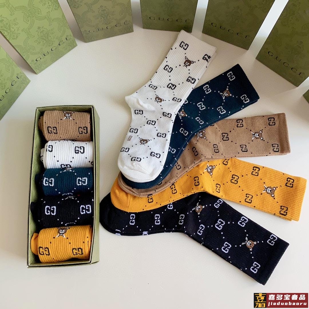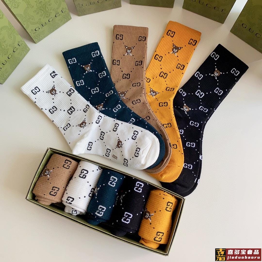 特配专柜包装古驰新款中长款堆堆袜袜子一盒五双专柜同步筒袜袜子