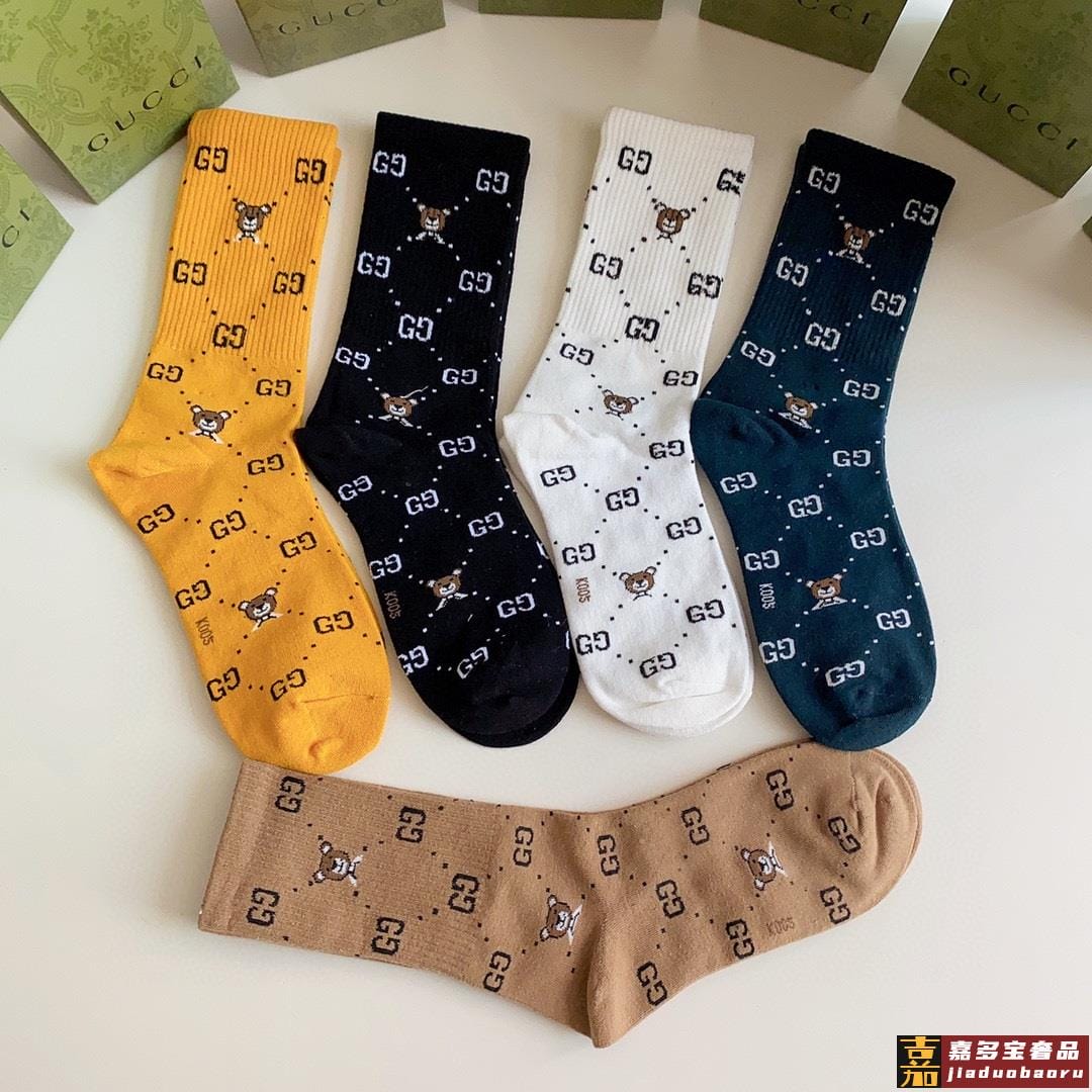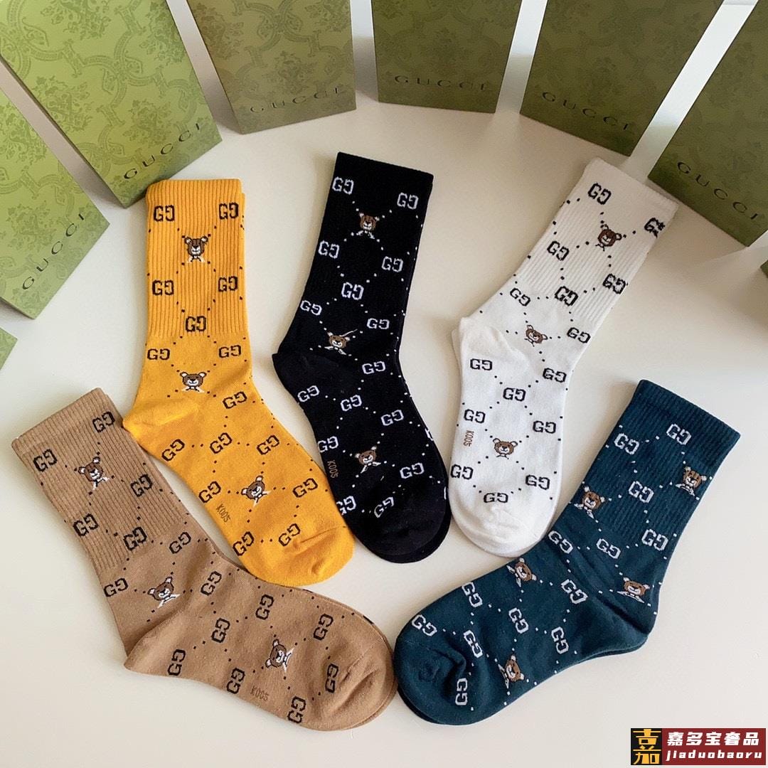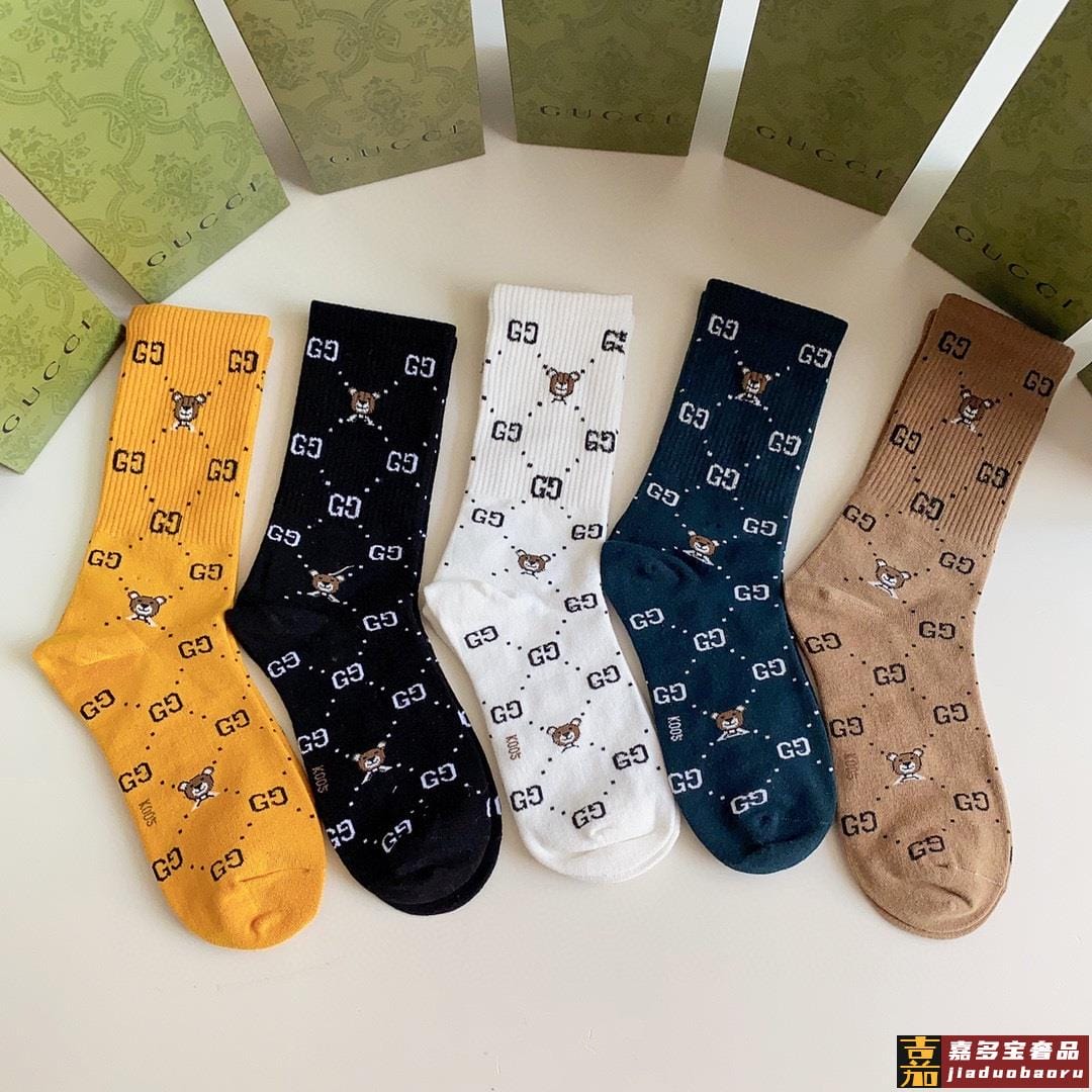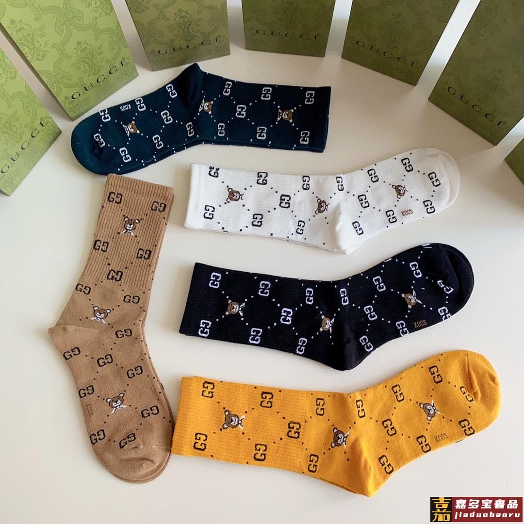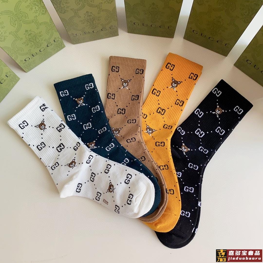 特配专柜包装古驰新款中长款堆堆袜袜子一盒五双专柜同步筒袜袜子