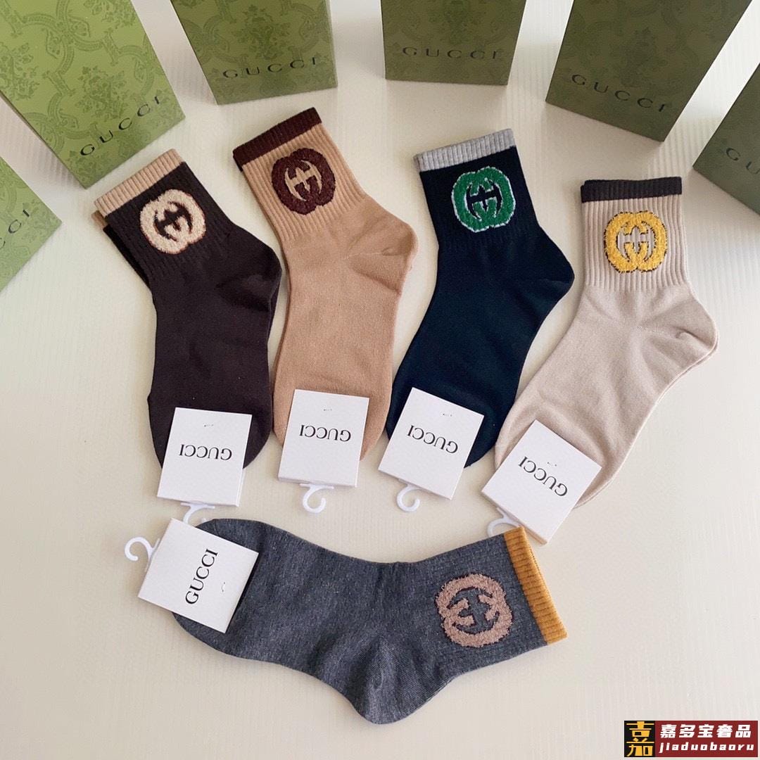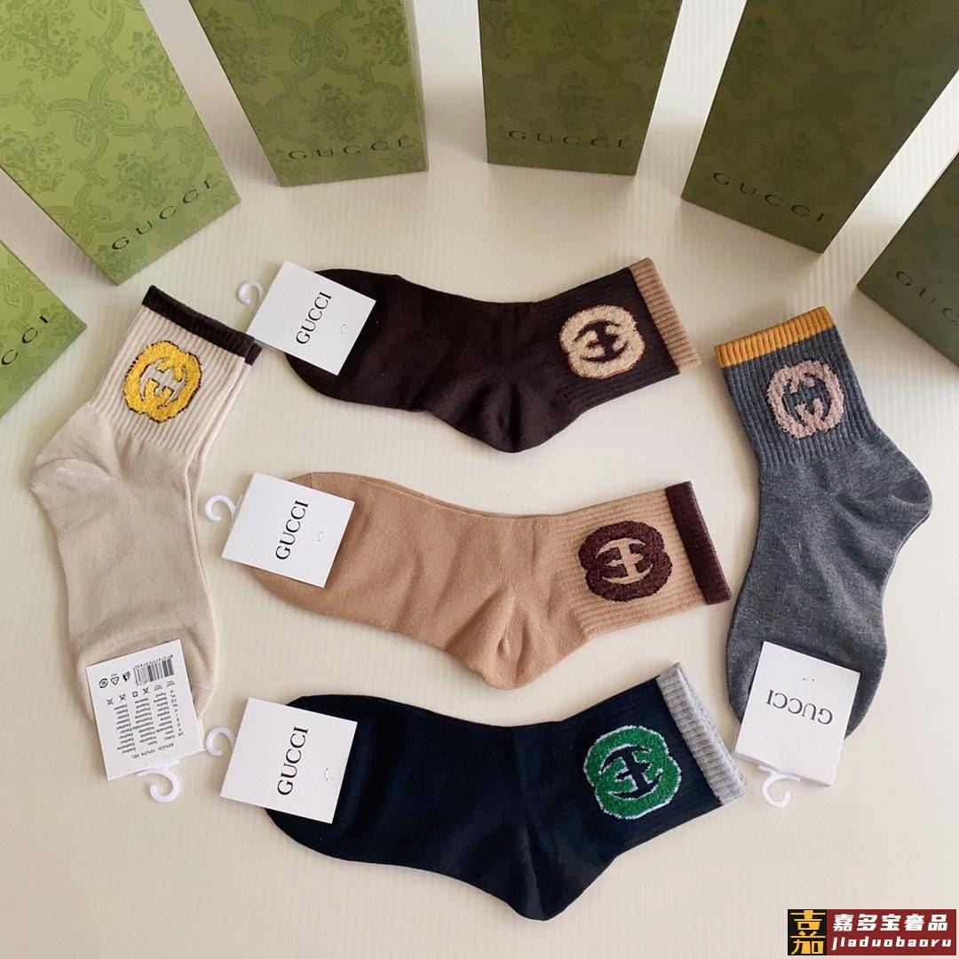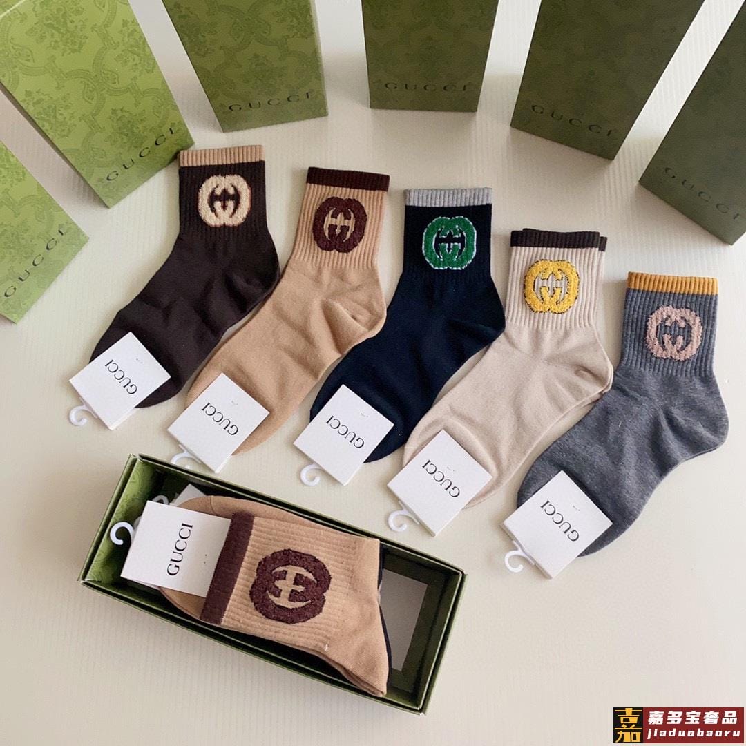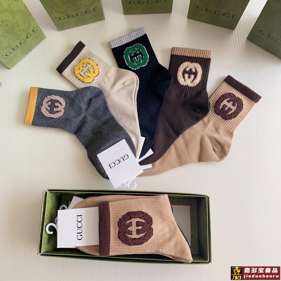 特配专柜包装古驰新款中长款堆堆袜袜子一盒五双专柜同步筒袜袜子
