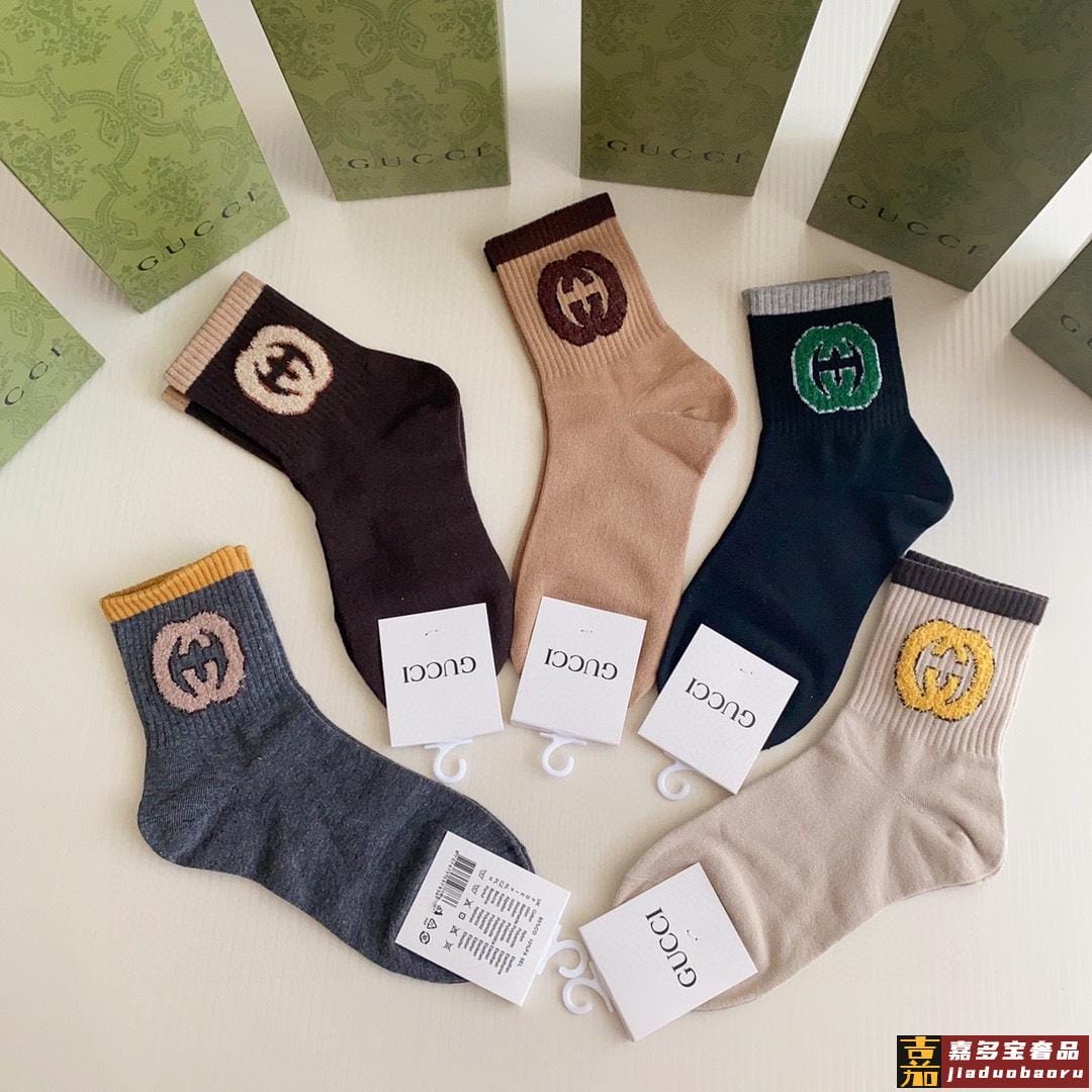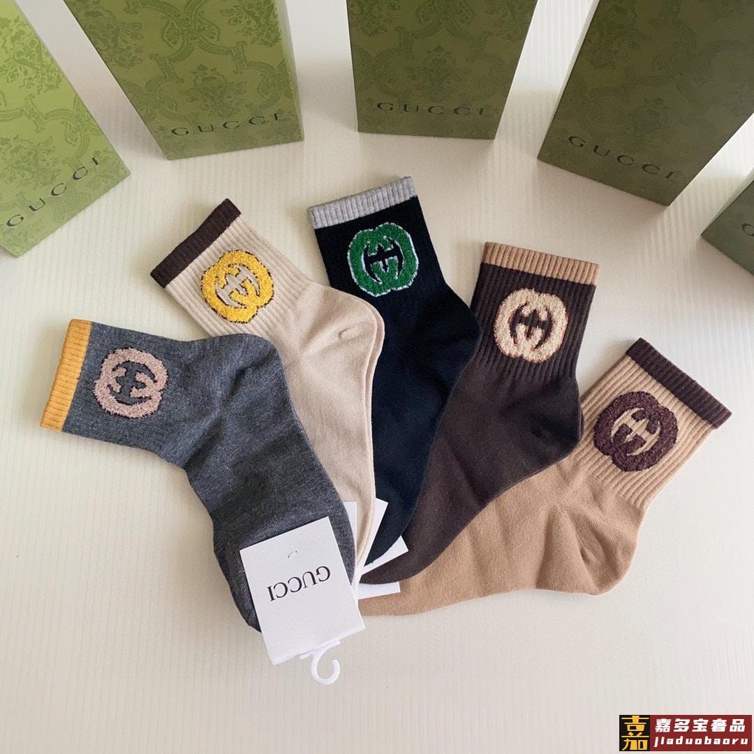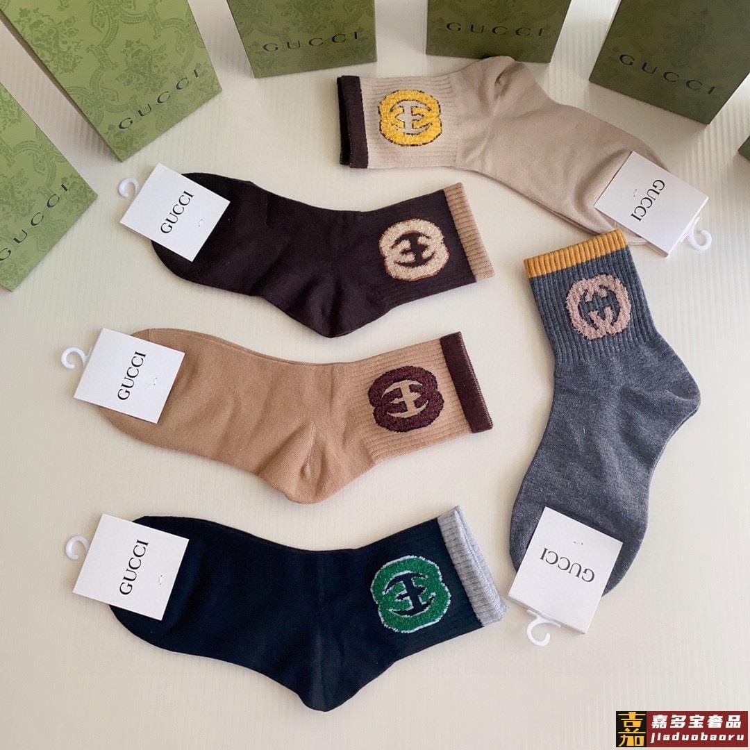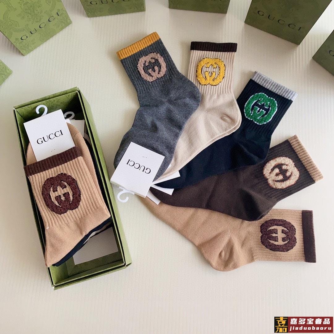 特配专柜包装古驰新款中长款堆堆袜袜子一盒五双专柜同步筒袜袜子