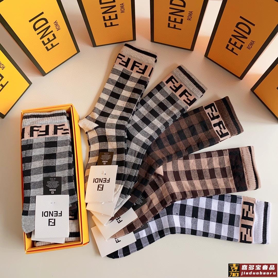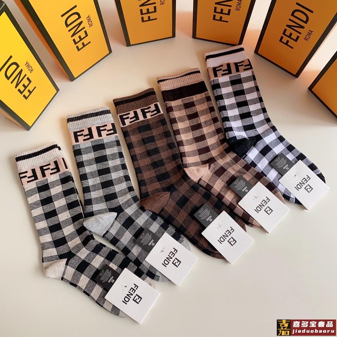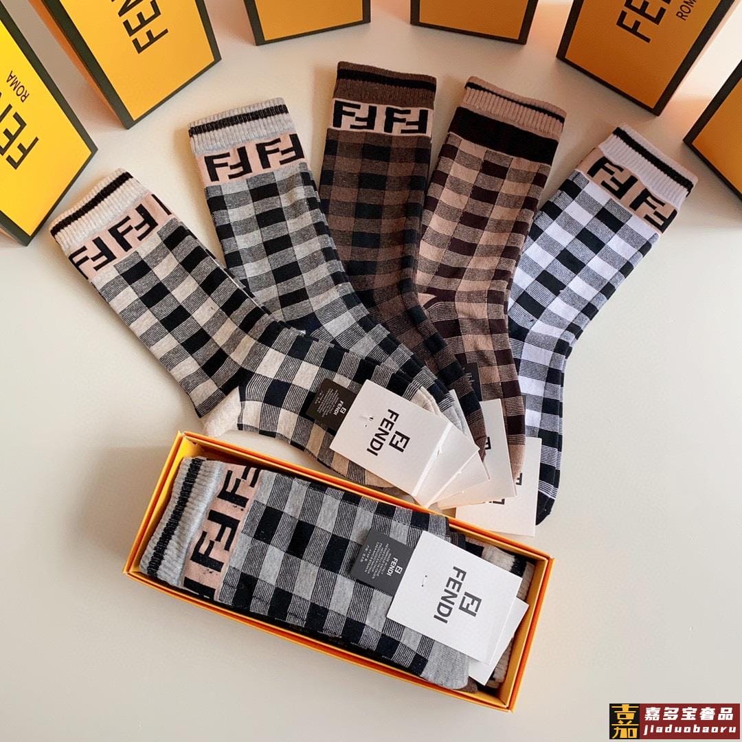 特配专柜包装芬迪新款中长款堆堆袜袜子一盒五双专柜同步筒袜袜子