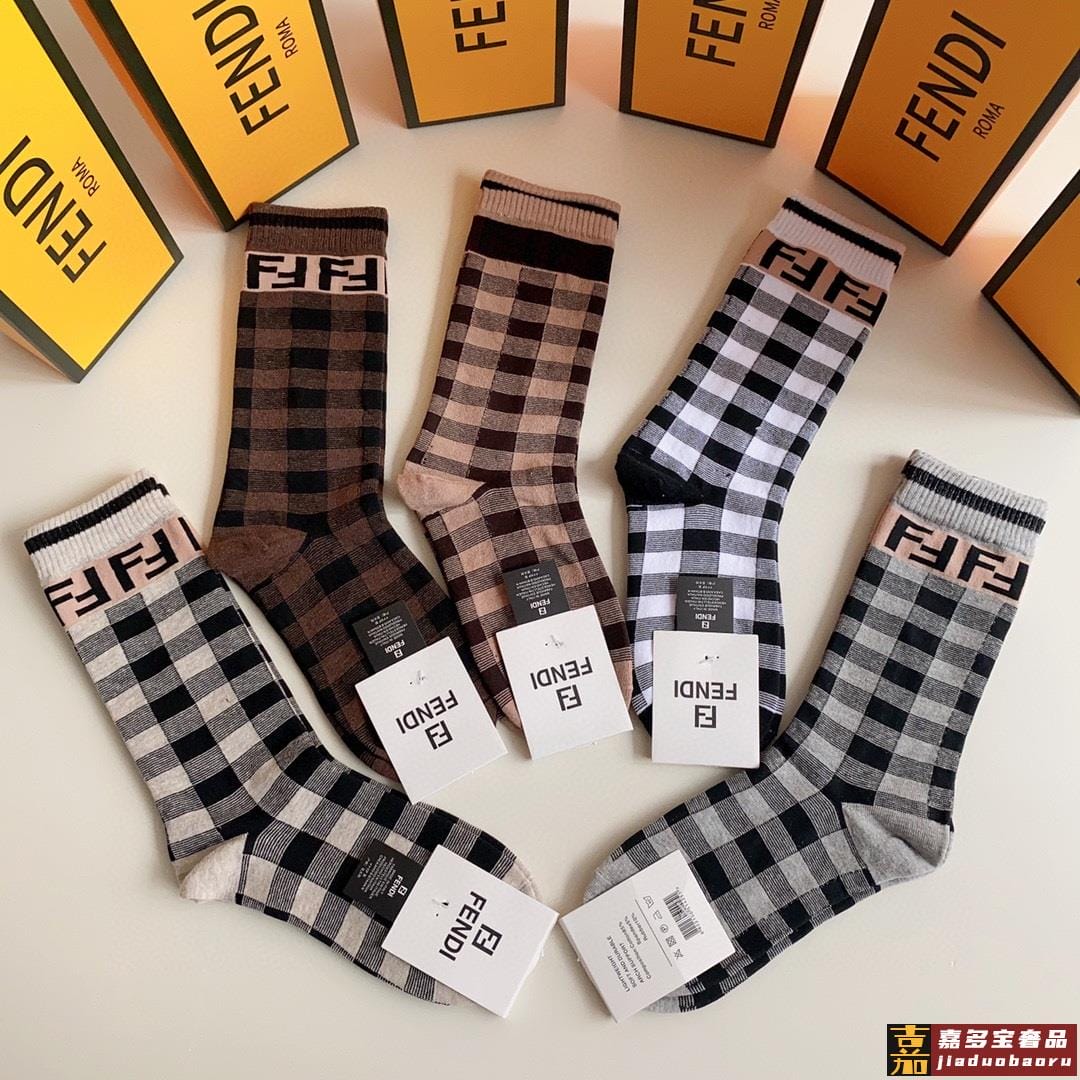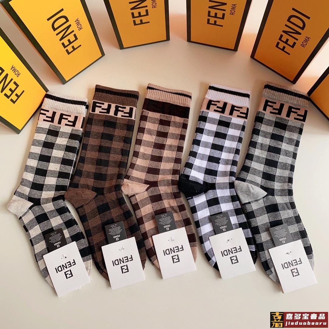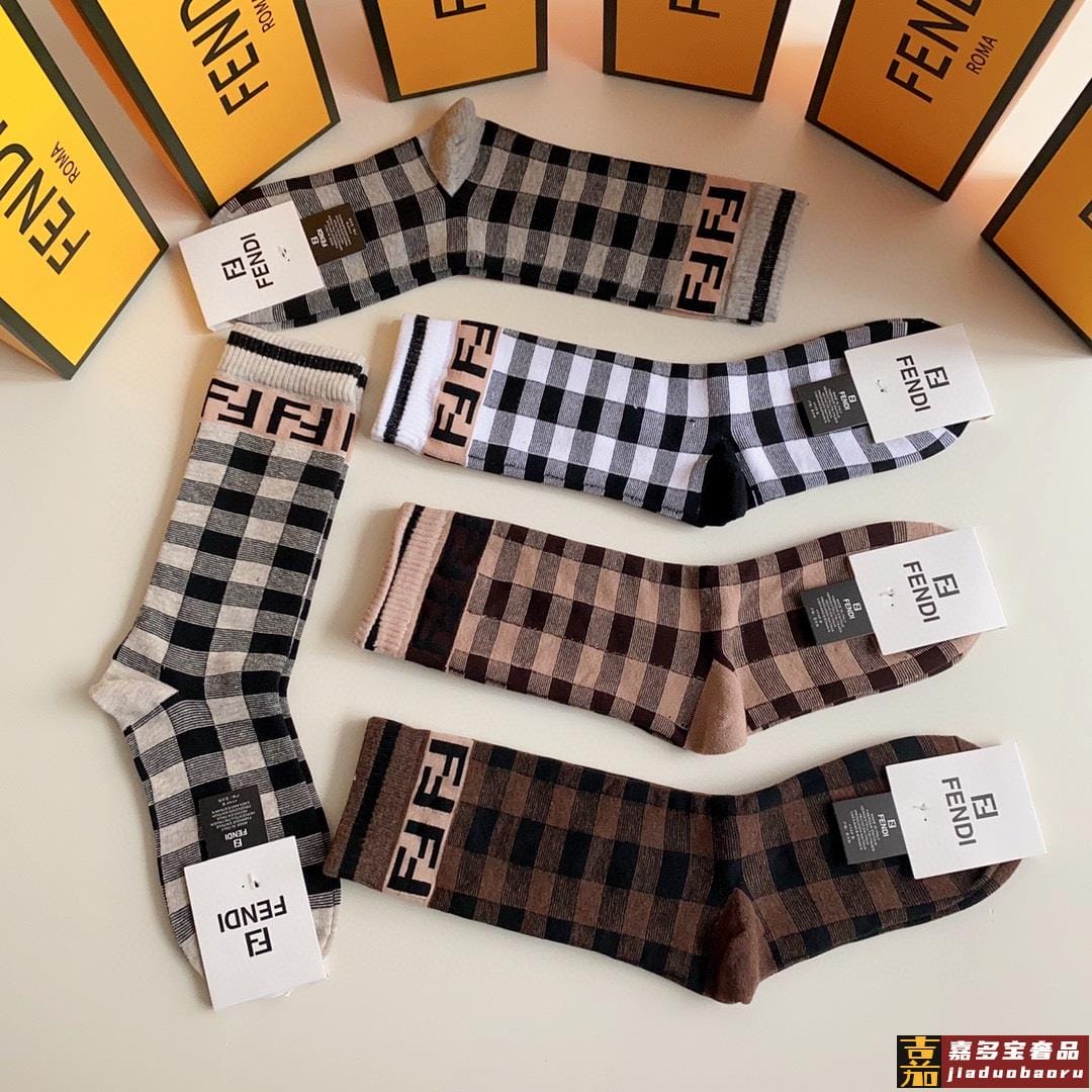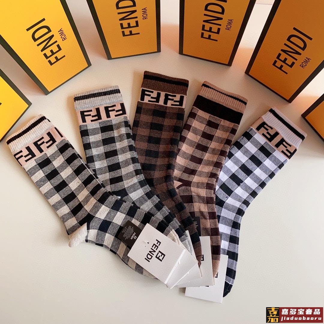 特配专柜包装芬迪新款中长款堆堆袜袜子一盒五双专柜同步筒袜袜子