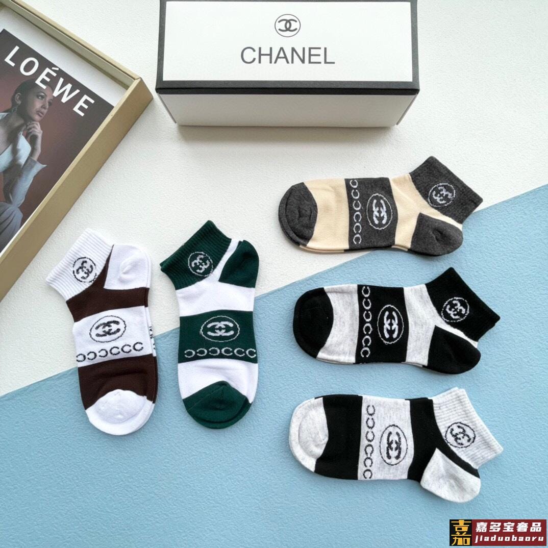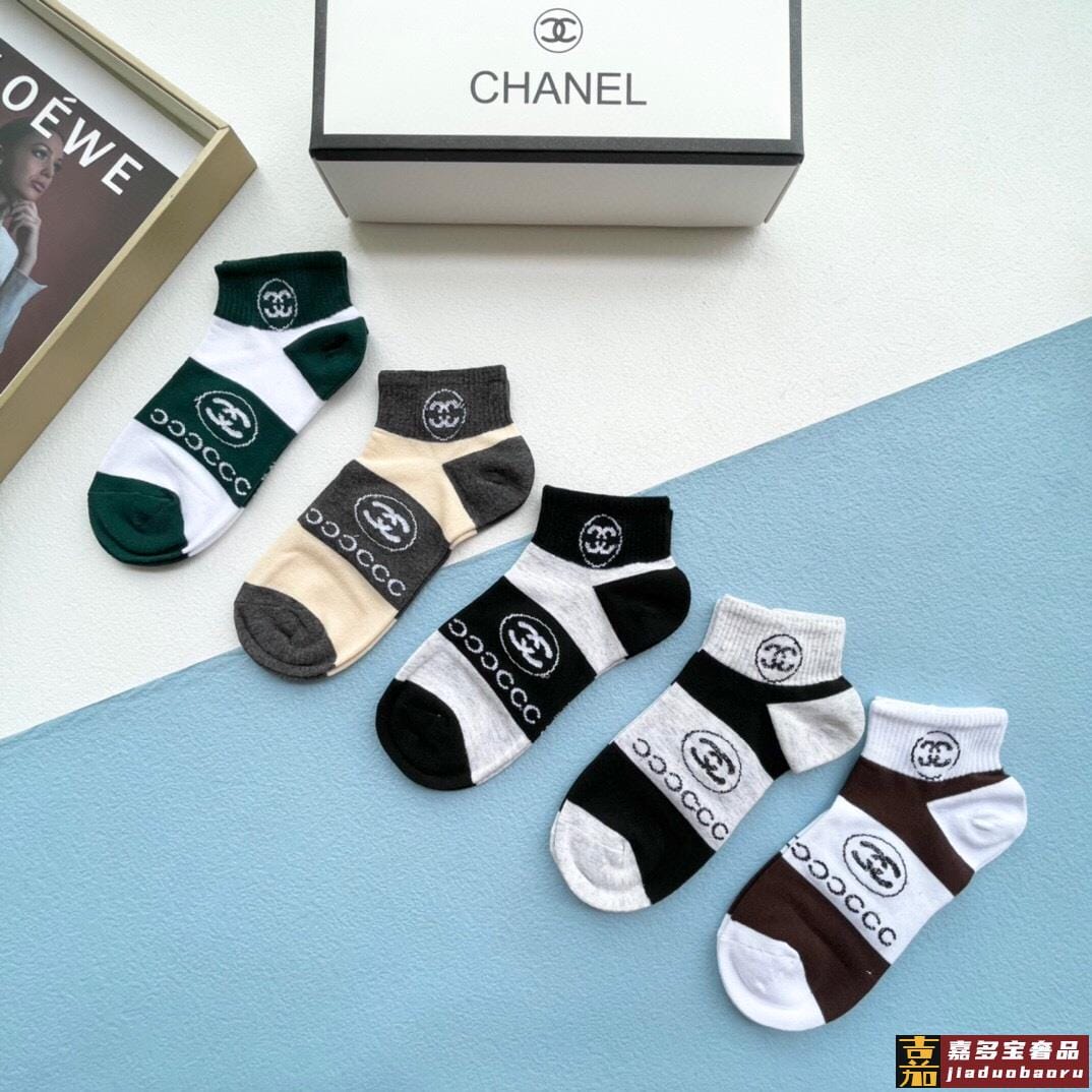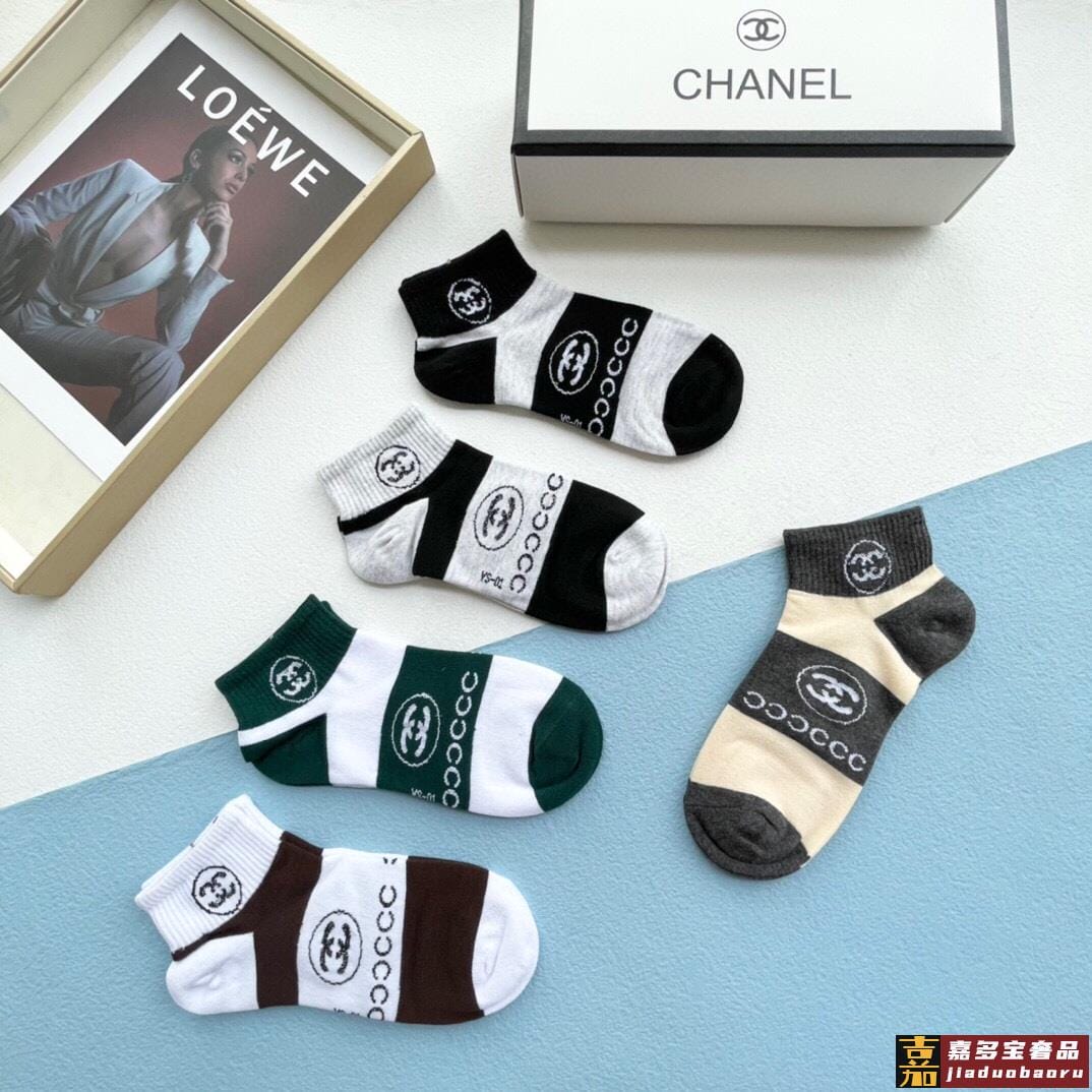 配包装一盒五双香奈儿爆款字母短筒袜高版本好看到爆炸欧美大牌短