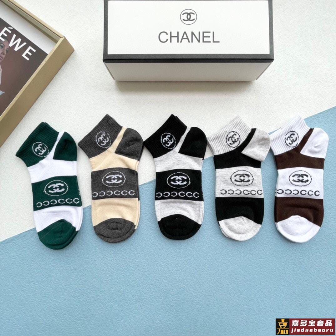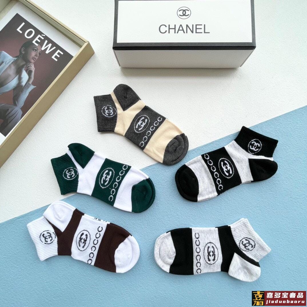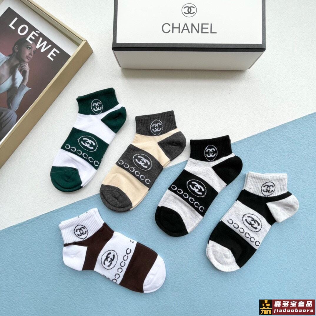 配包装一盒五双香奈儿爆款字母短筒袜高版本好看到爆炸欧美大牌短