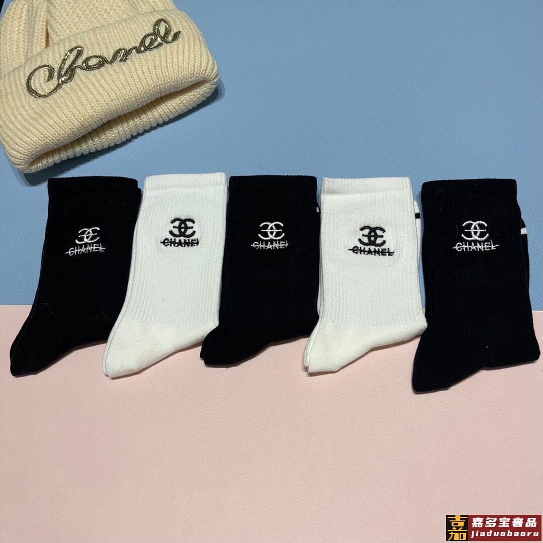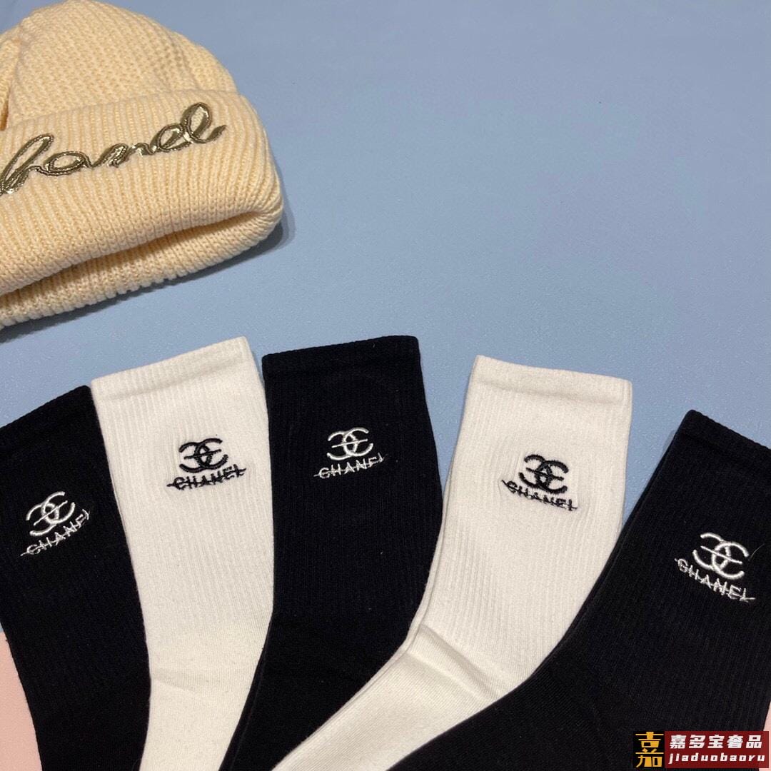 香奈儿新款中长款刺绣堆堆袜袜子一盒五双专柜同步筒袜袜子大牌出