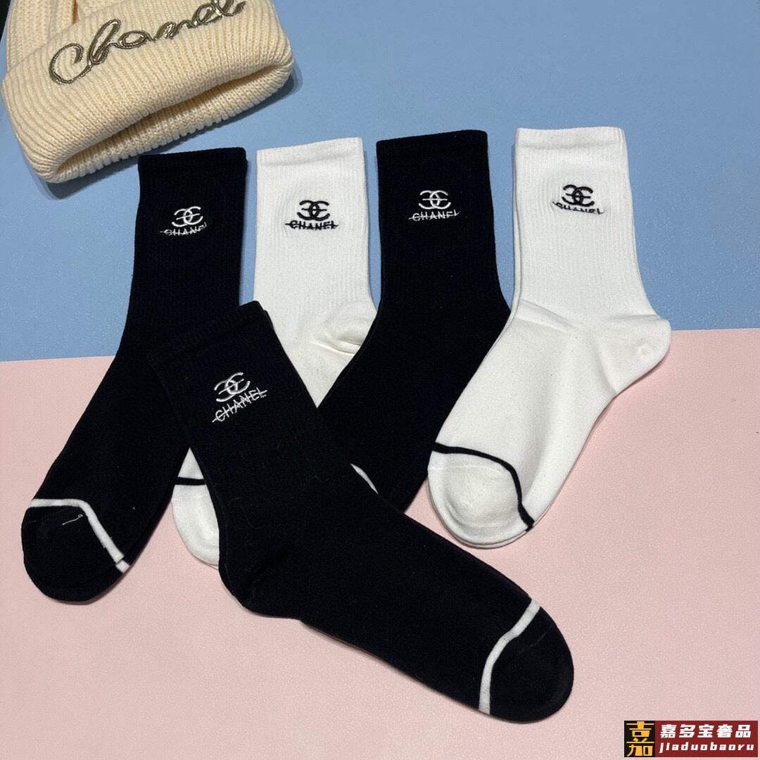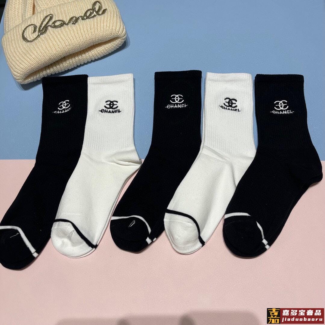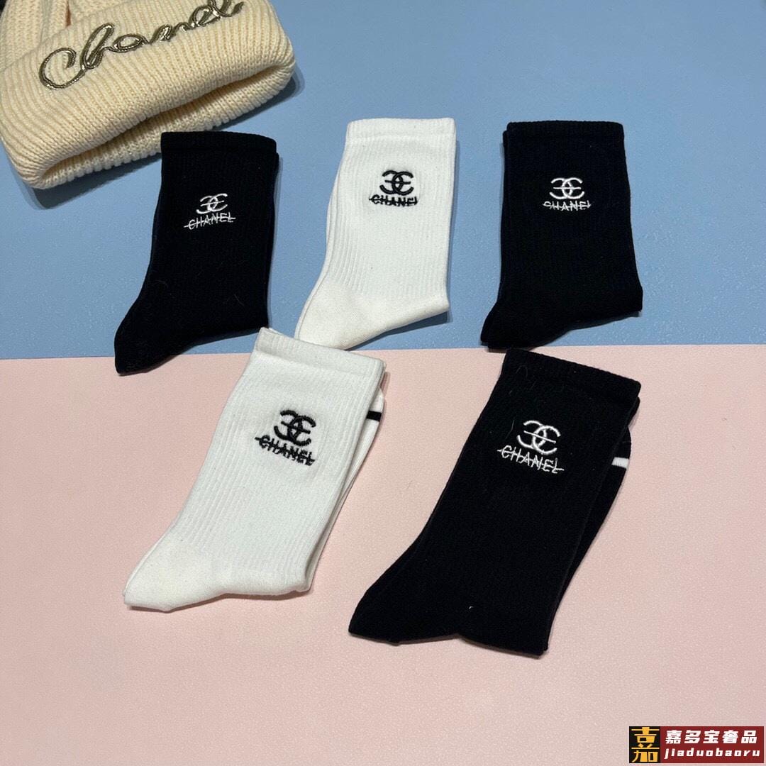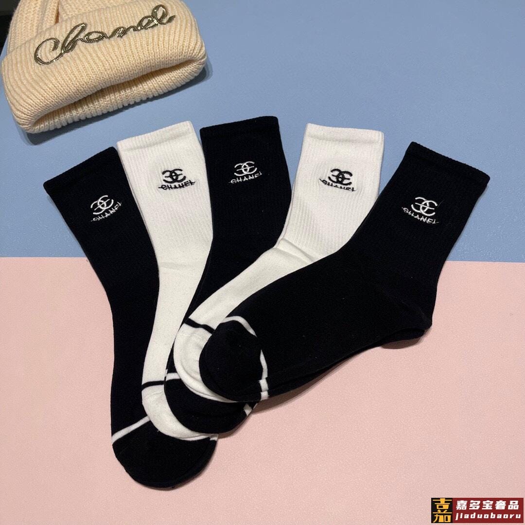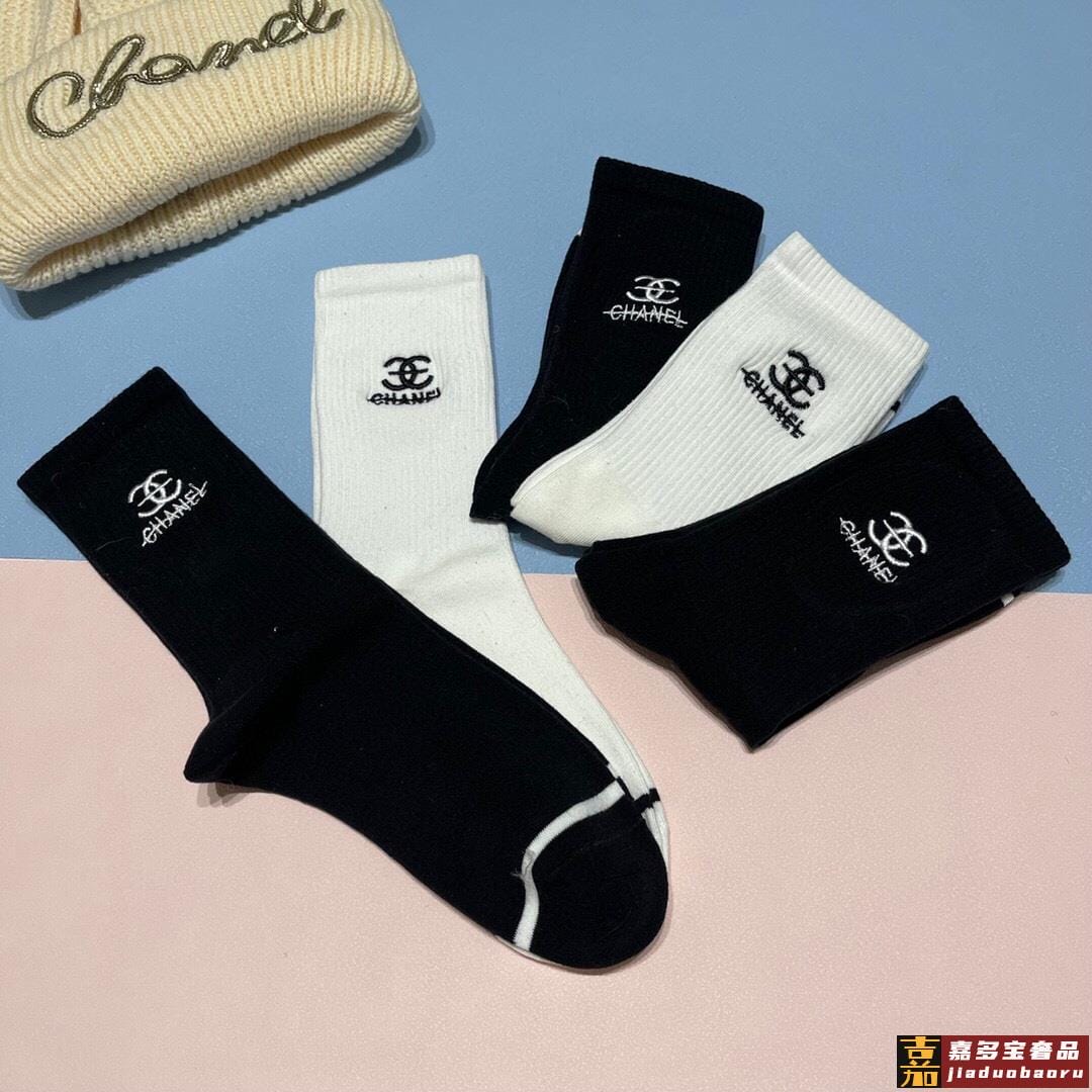 配包装一盒五双香奈儿爆款字母短筒袜高版本好看到爆炸欧美大牌短