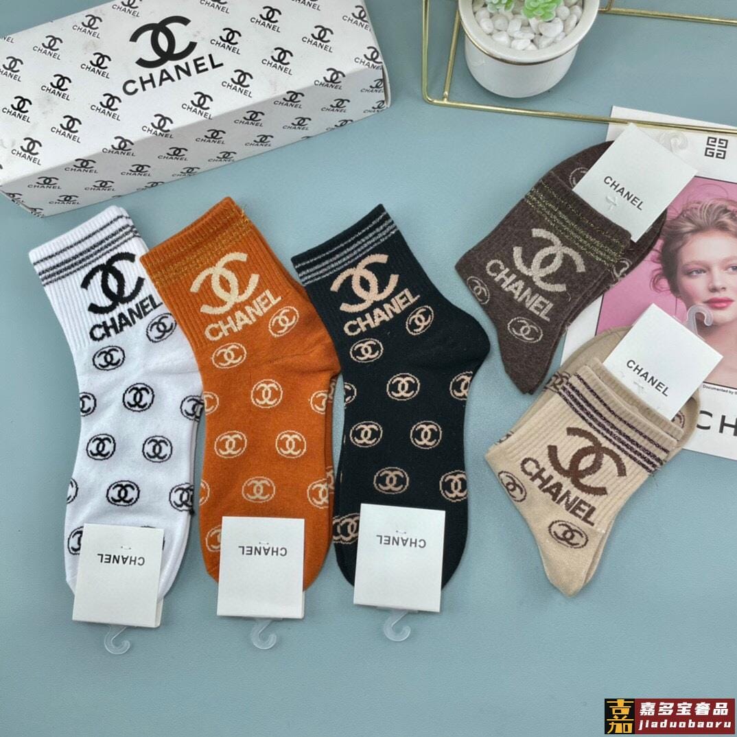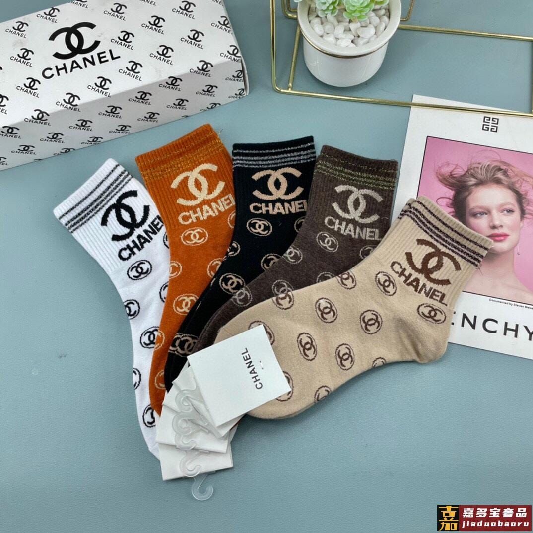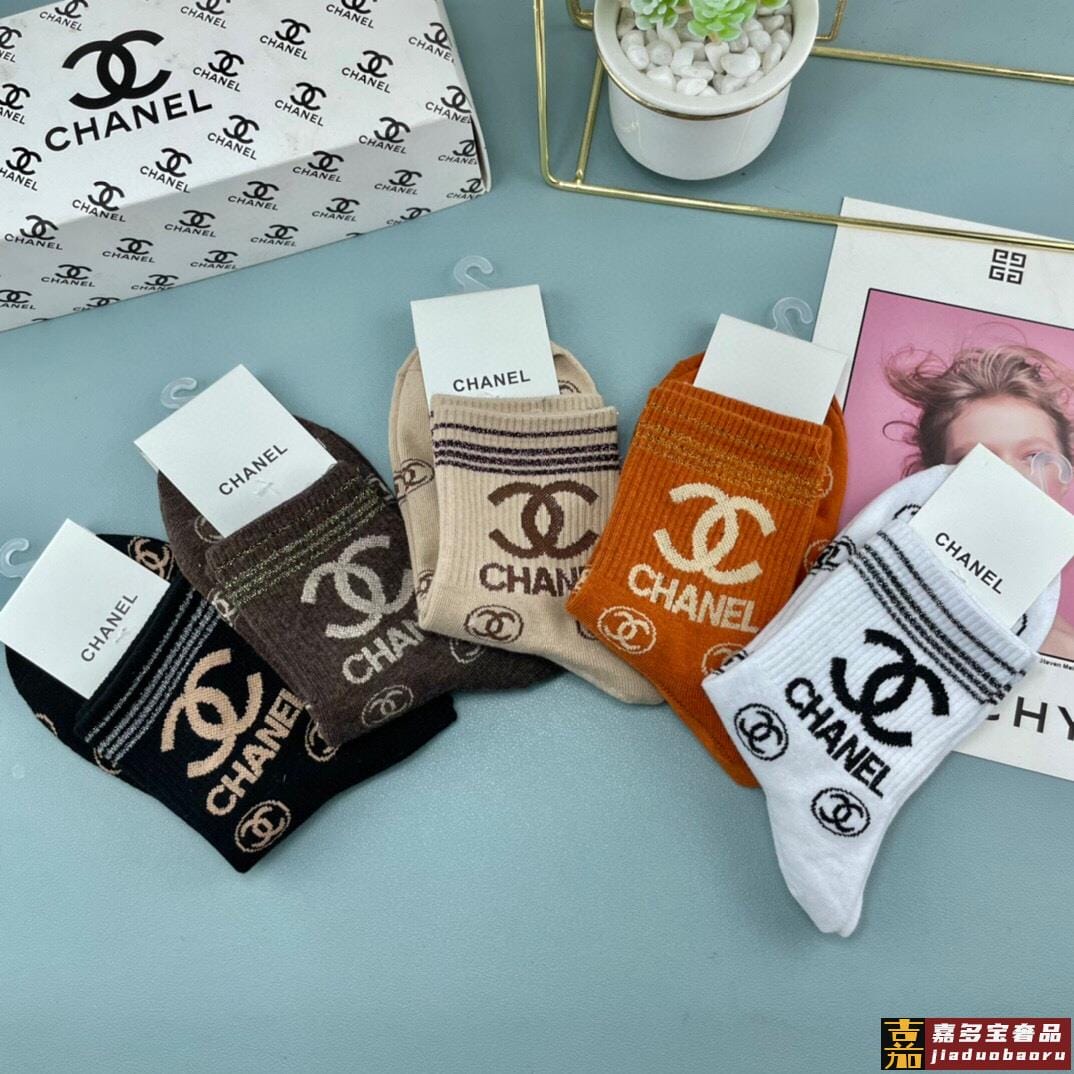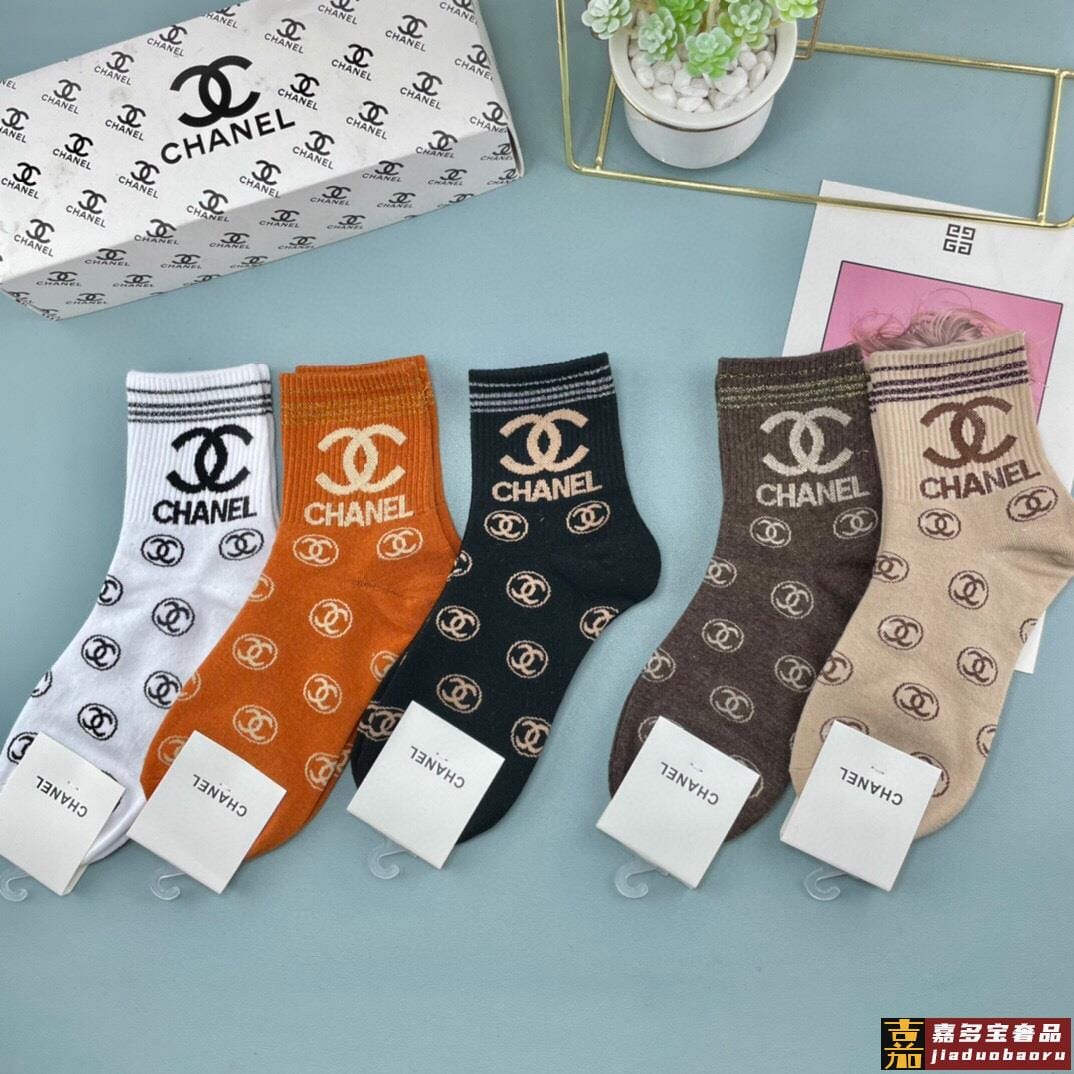 配包装一盒五双香奈儿爆款字母短筒袜高版本好看到爆炸欧美大牌短