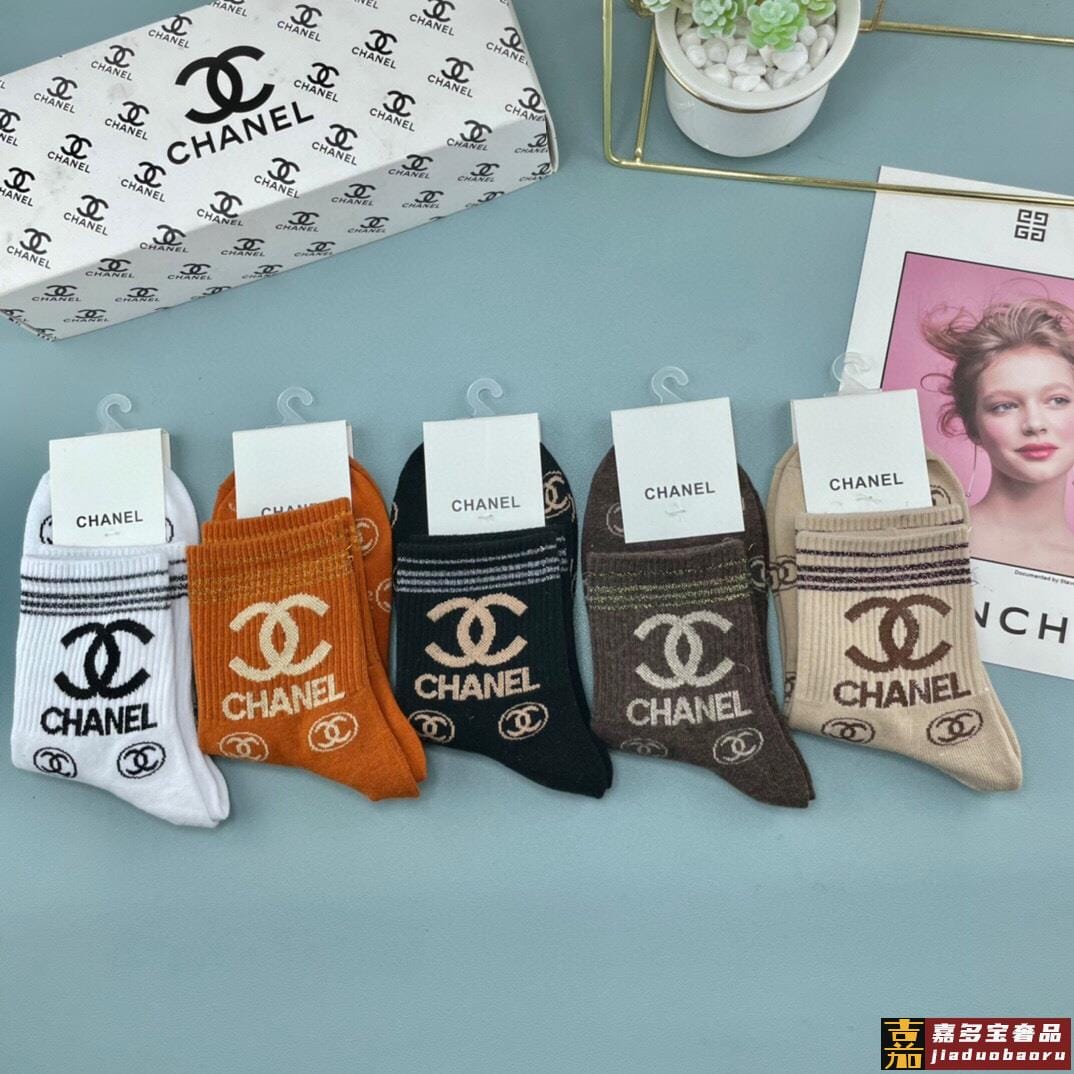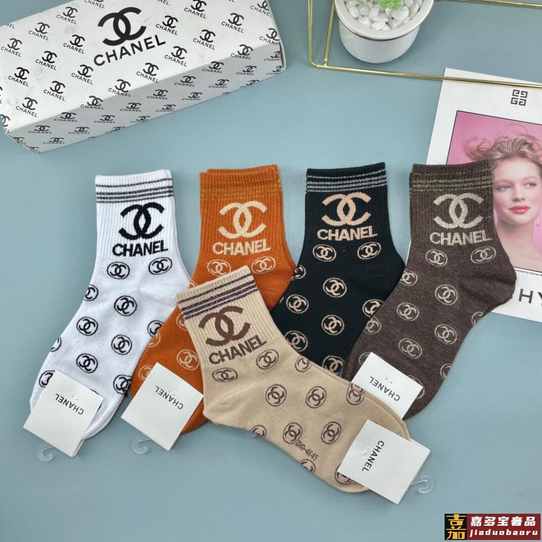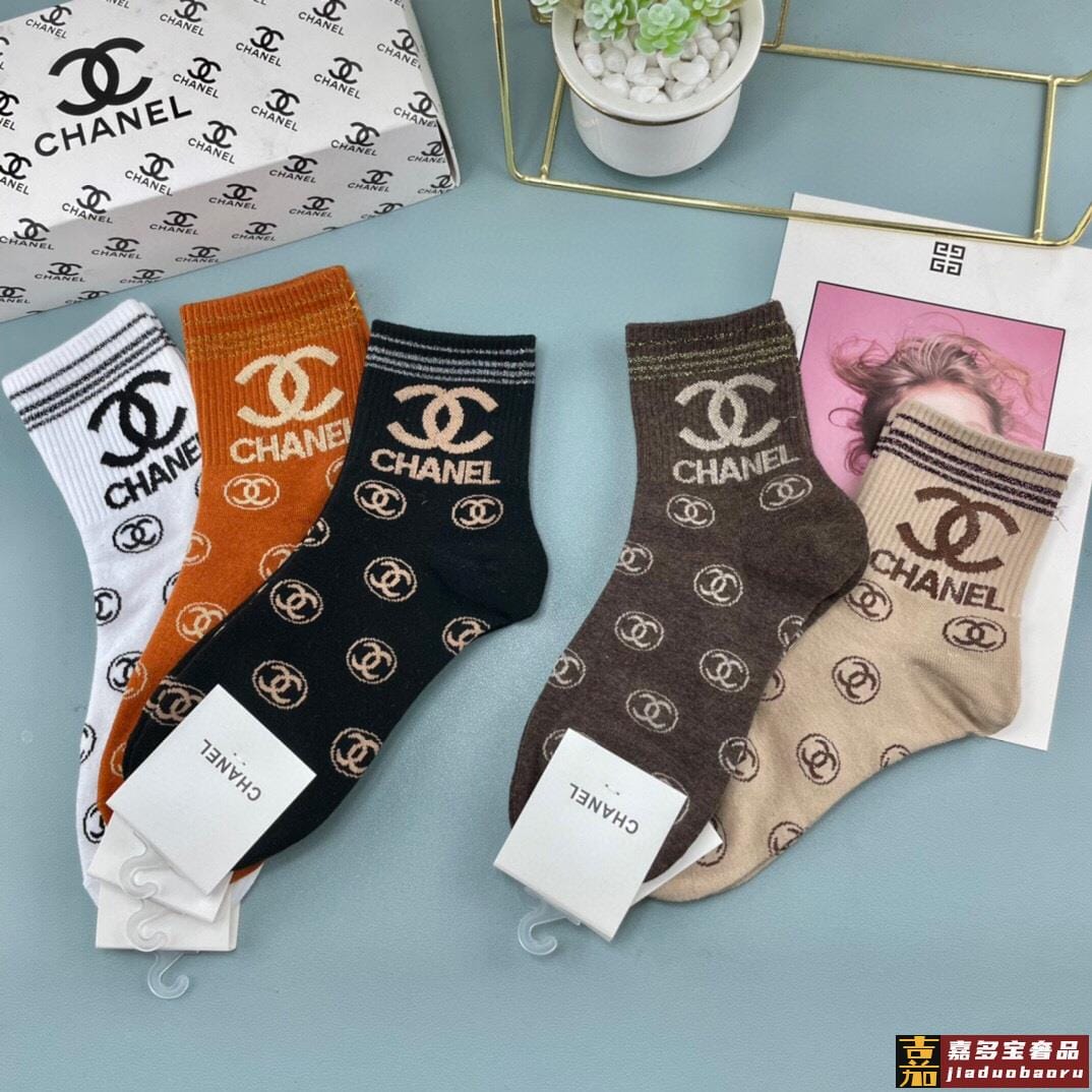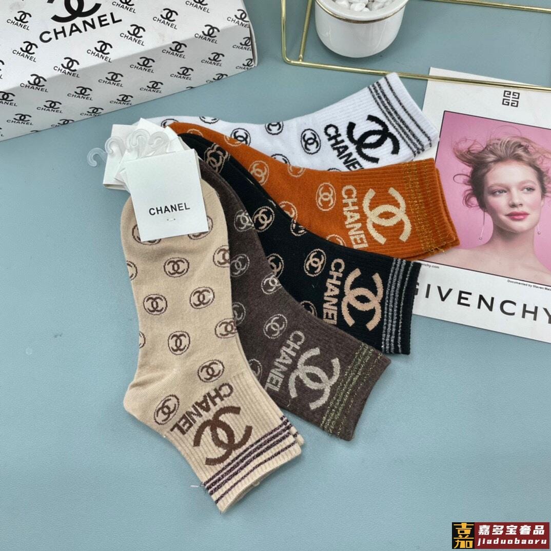 配包装一盒五双香奈儿爆款字母短筒袜高版本好看到爆炸欧美大牌短