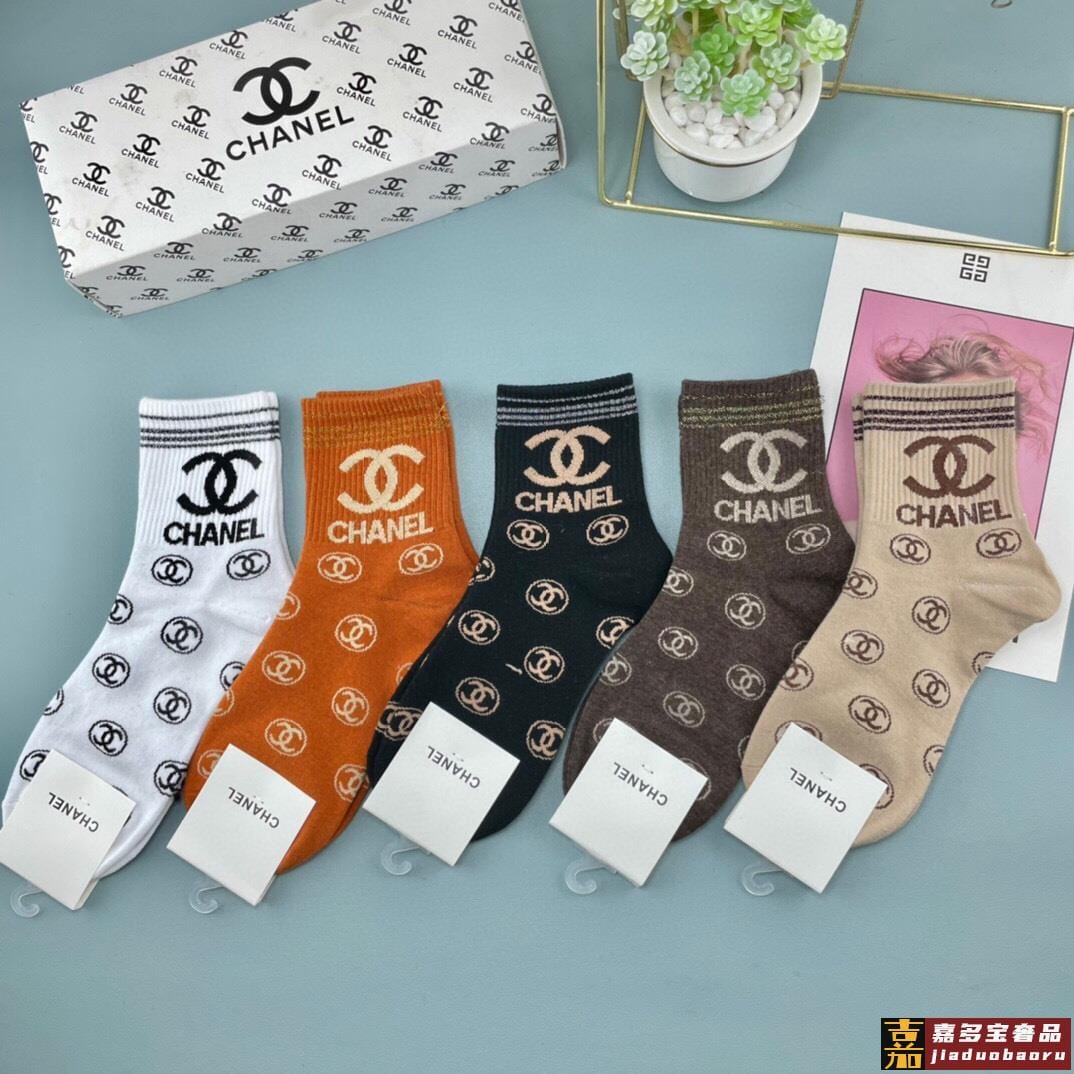 香奈儿香奶奶家新品女款袜子一盒五双纯棉材质柔软舒适透气提花经