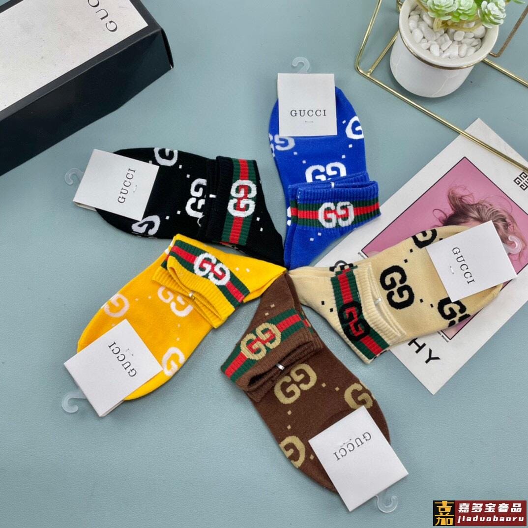 一盒五双年古奇大家新品袜子袜身提花经典标志实物超漂亮纯棉材质