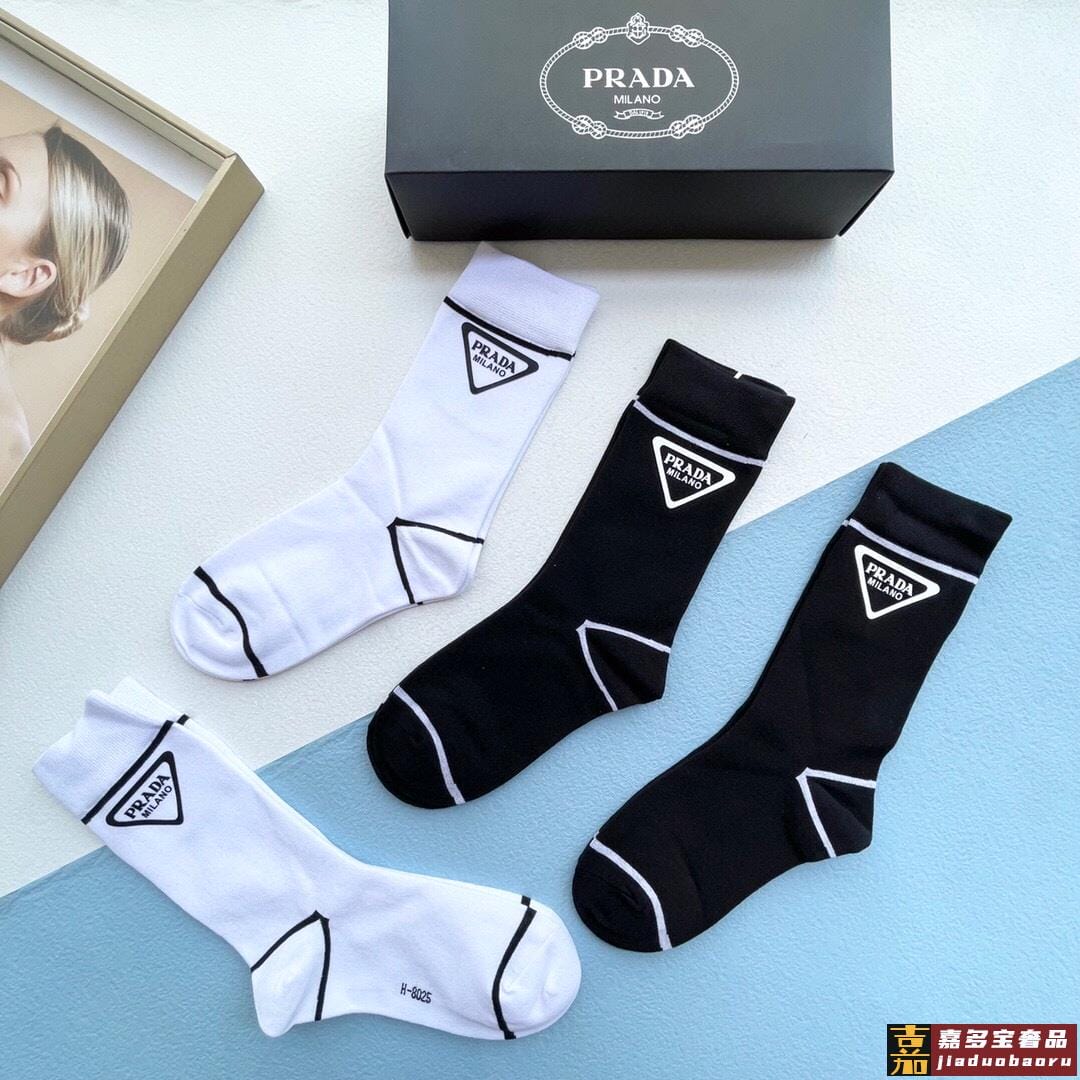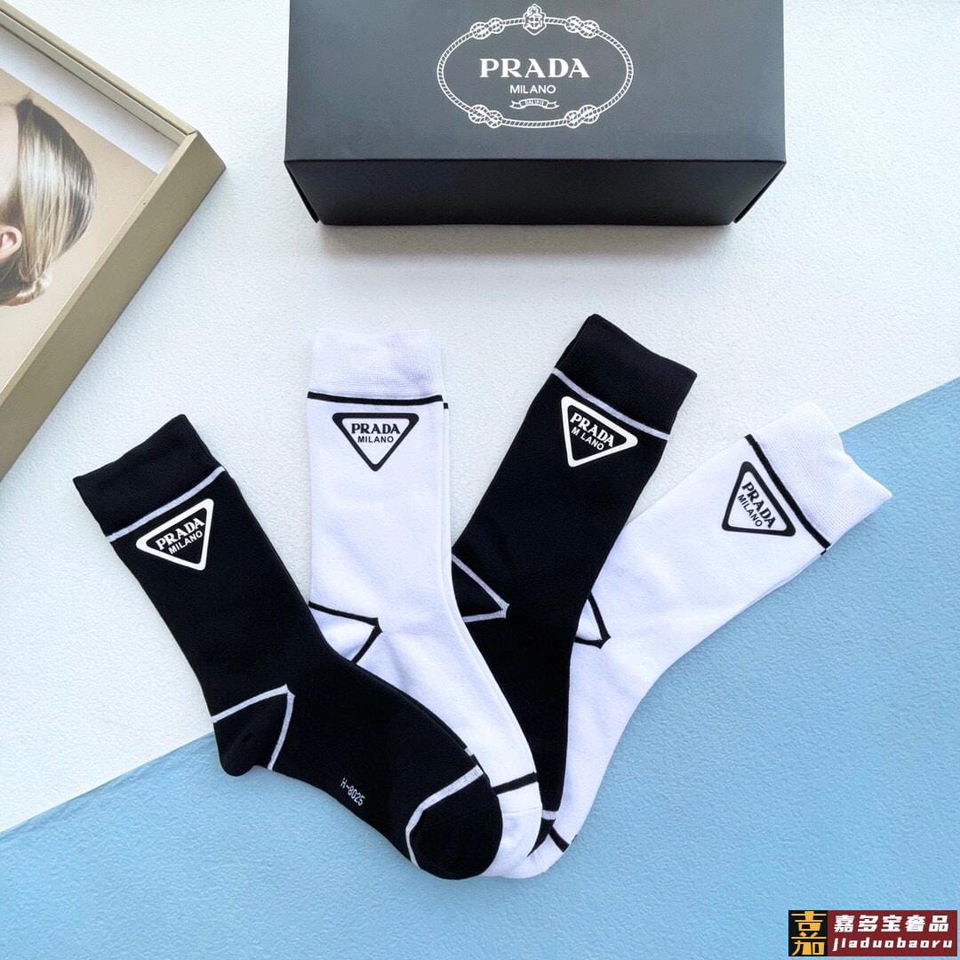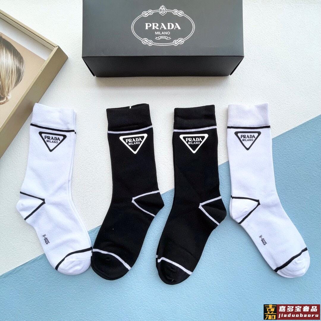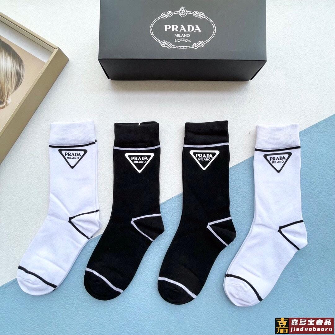 配包装一盒四双普拉达高品质超级爆款网红袜子家官网同步烫印字母