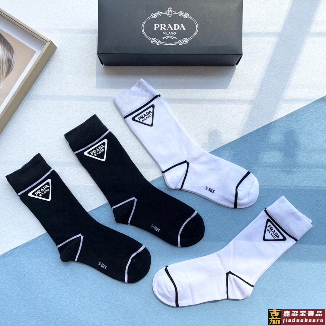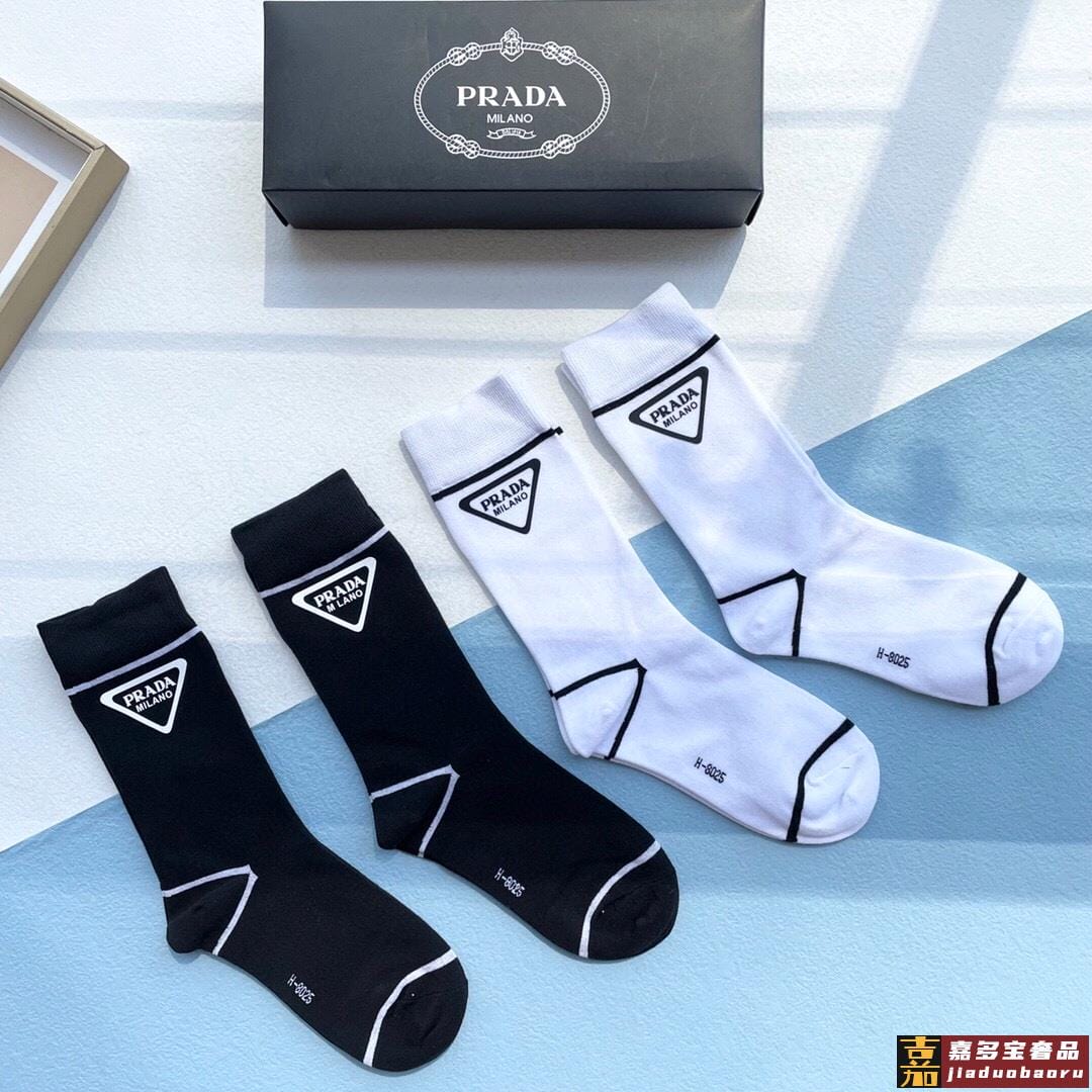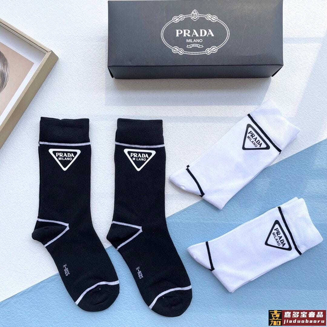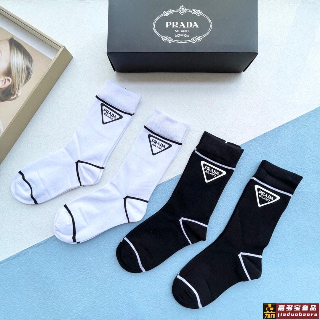 配包装一盒四双普拉达高品质超级爆款网红袜子家官网同步烫印字母