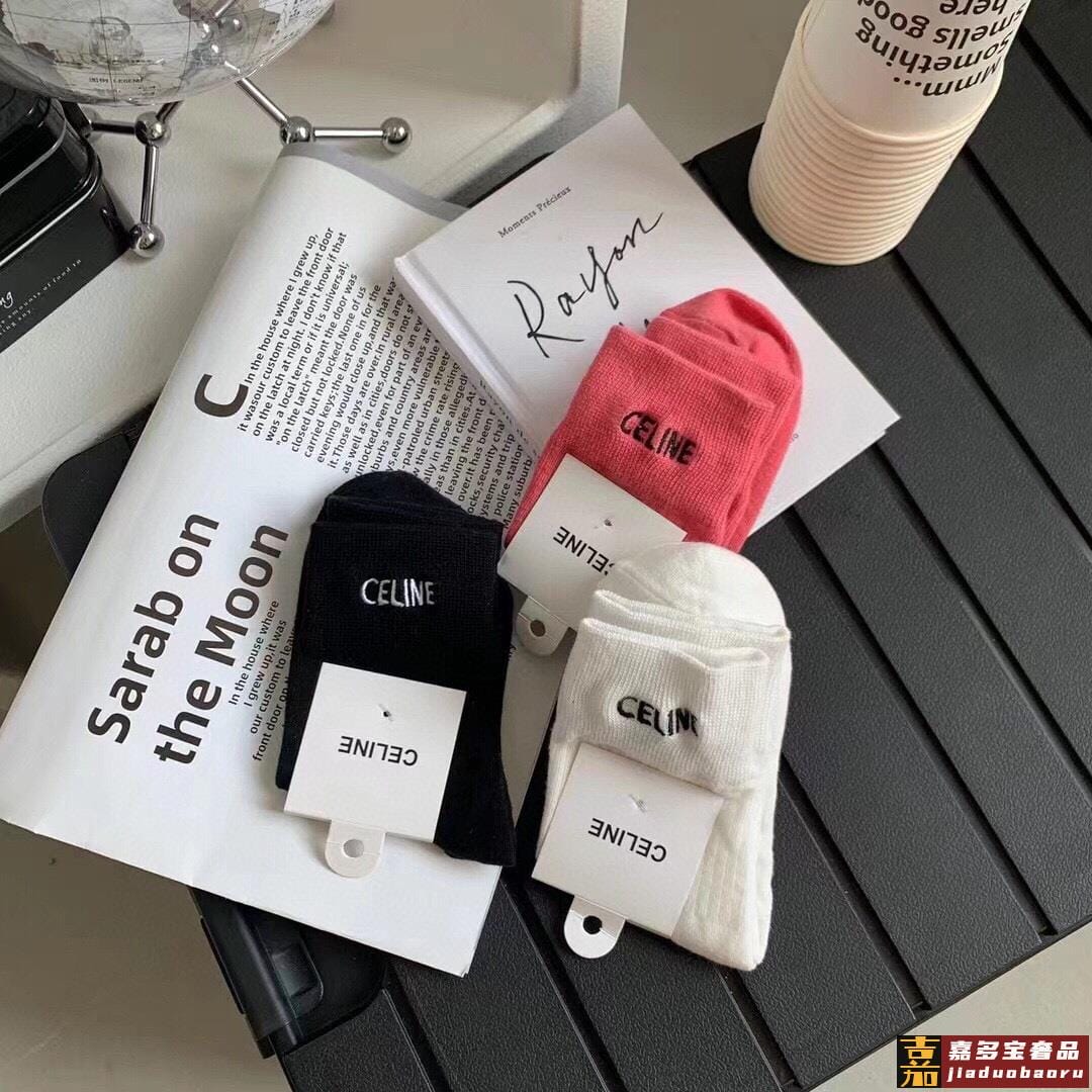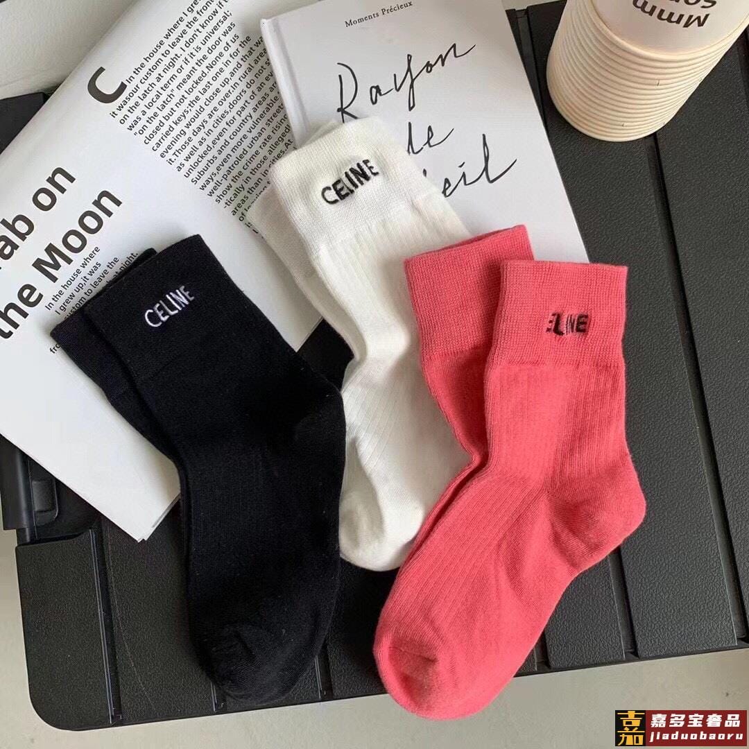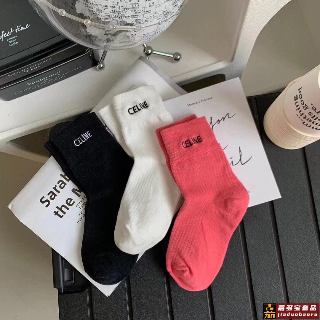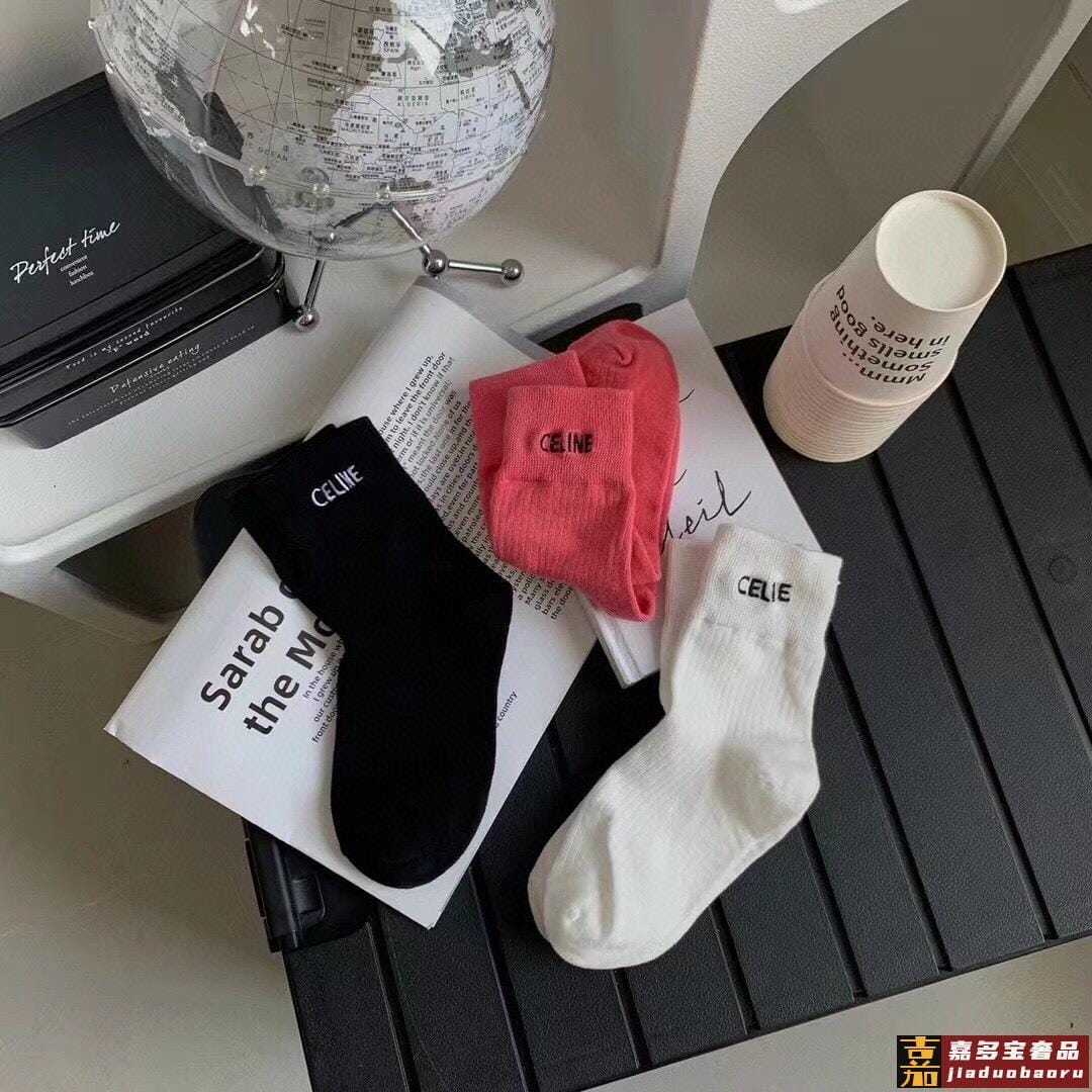 配包装一盒三双赛琳官网同款冬新品双刺绣袜子专柜同步筒袜袜子大