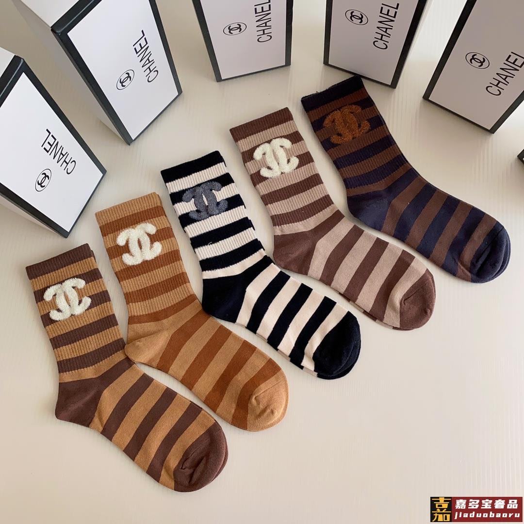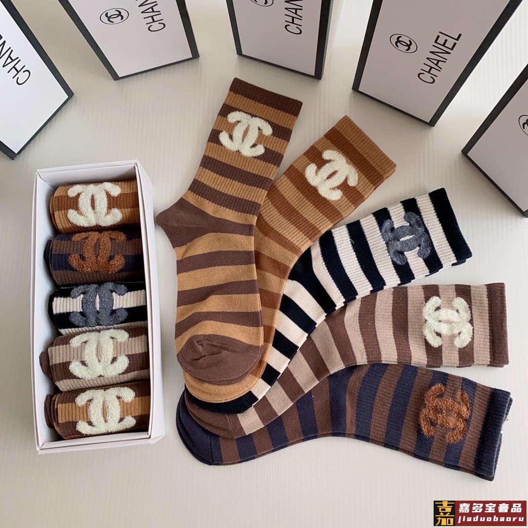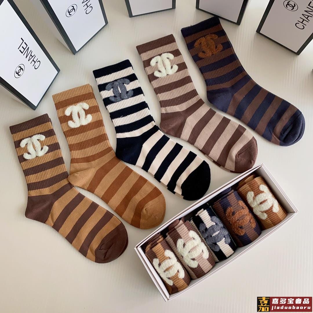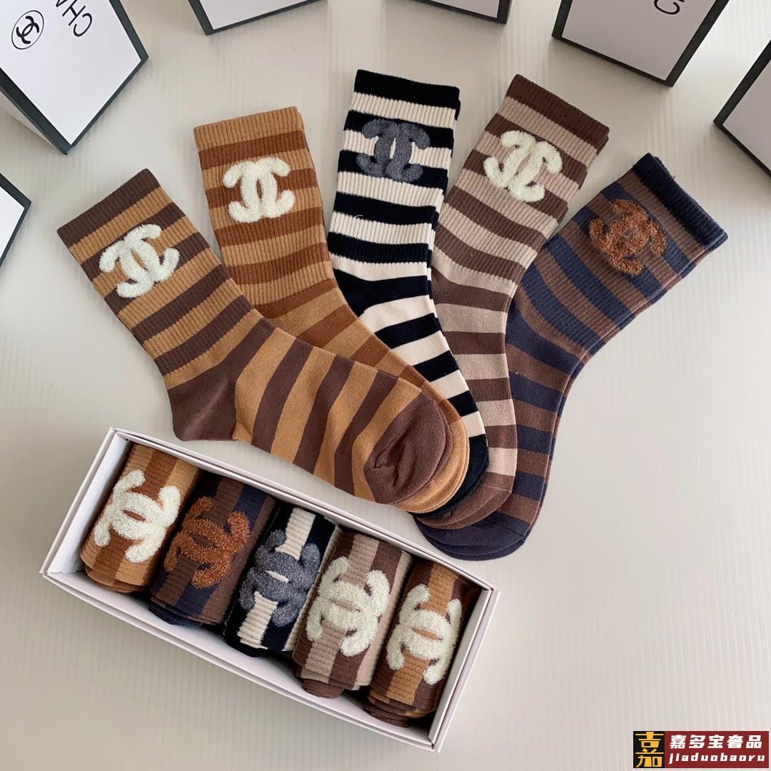 特配专柜包装香奈儿新款羽毛纱小香中长款堆堆袜袜子一盒五双专柜