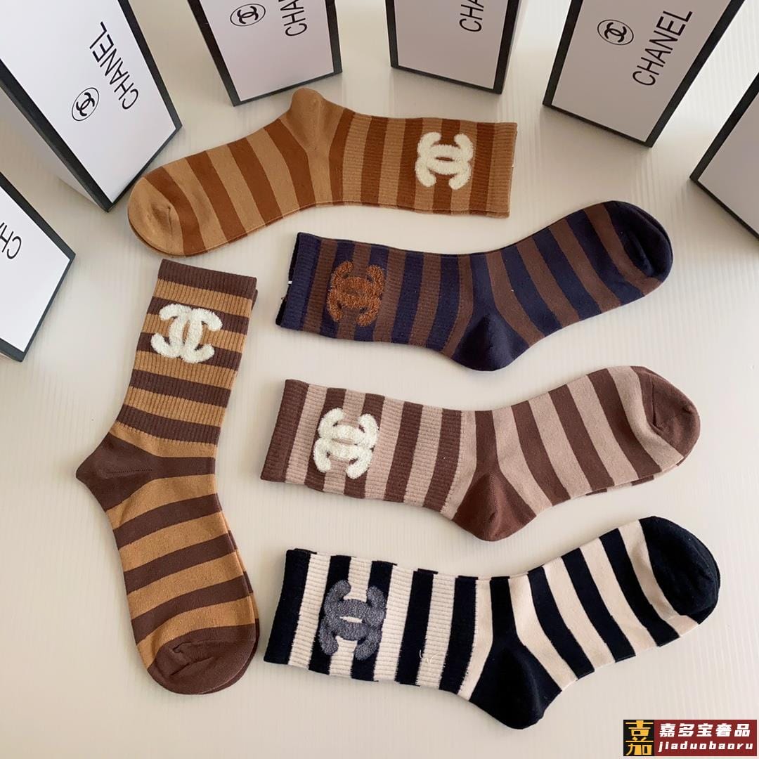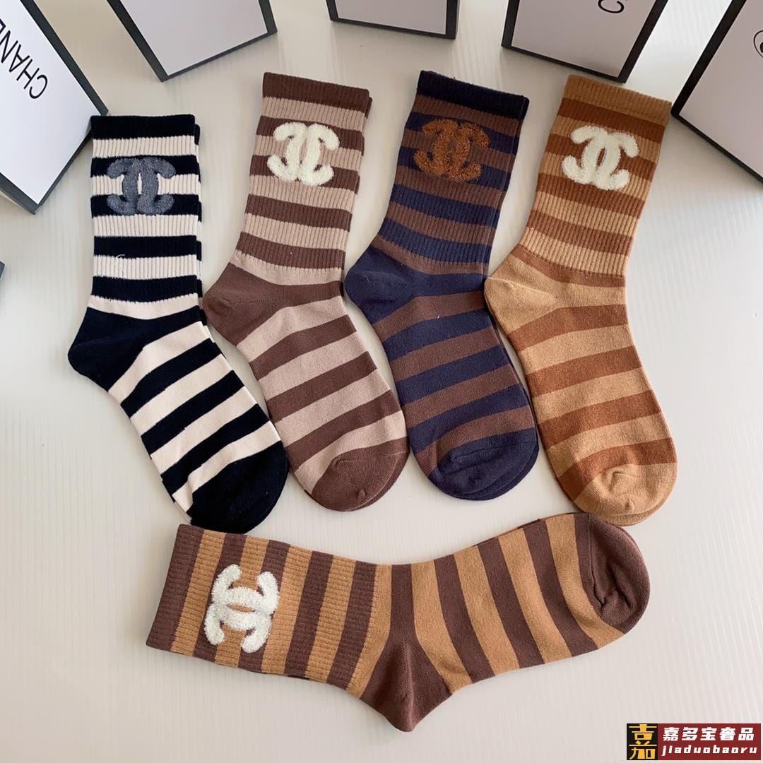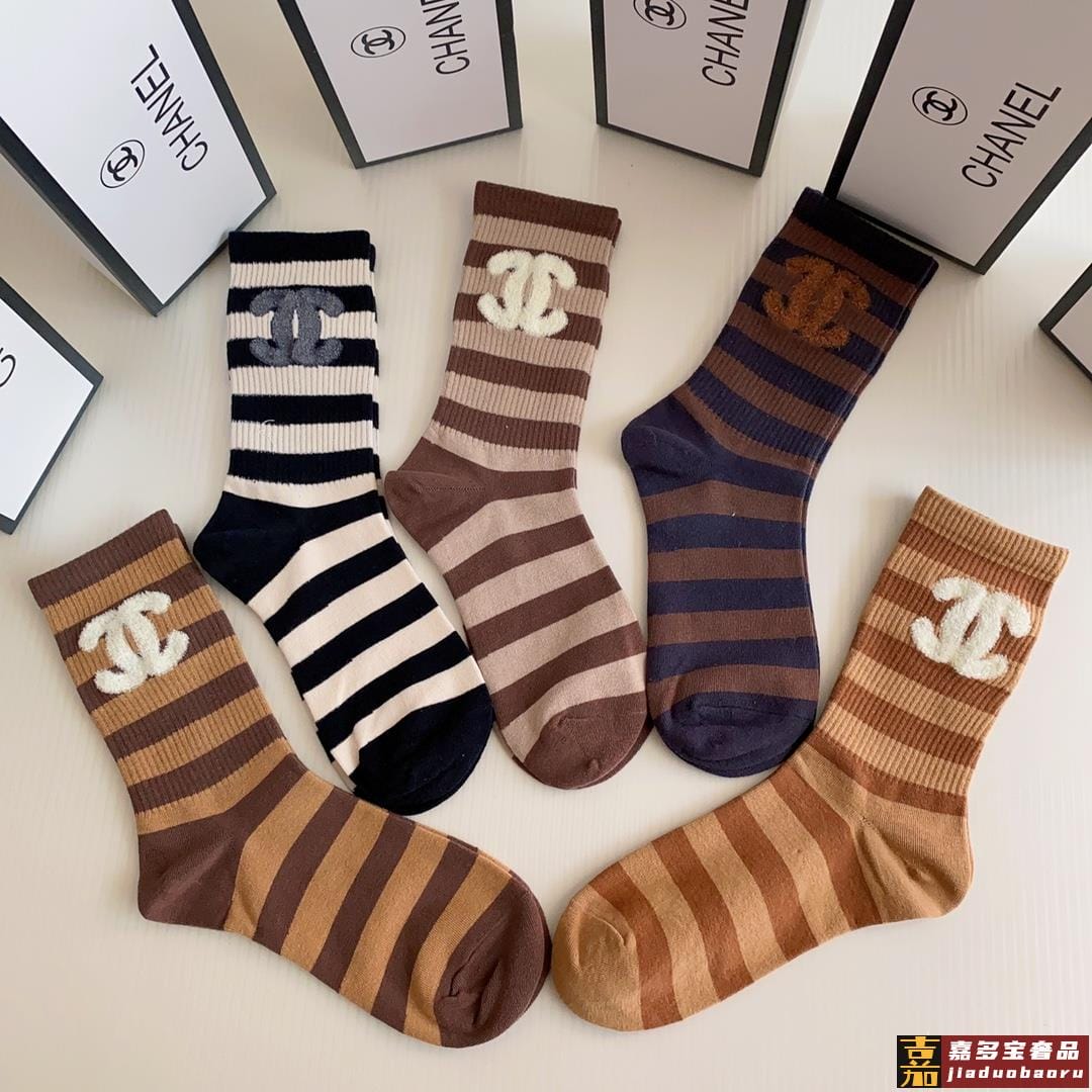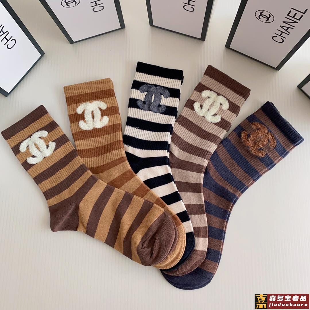 特配专柜包装香奈儿新款羽毛纱小香中长款堆堆袜袜子一盒五双专柜
