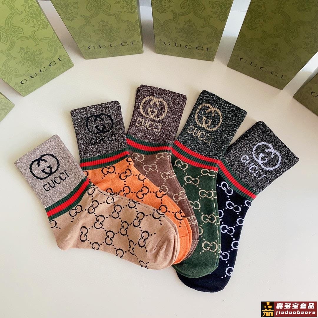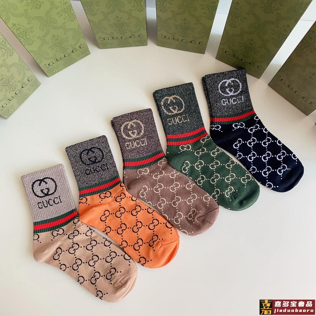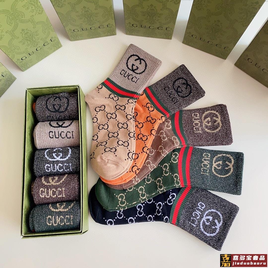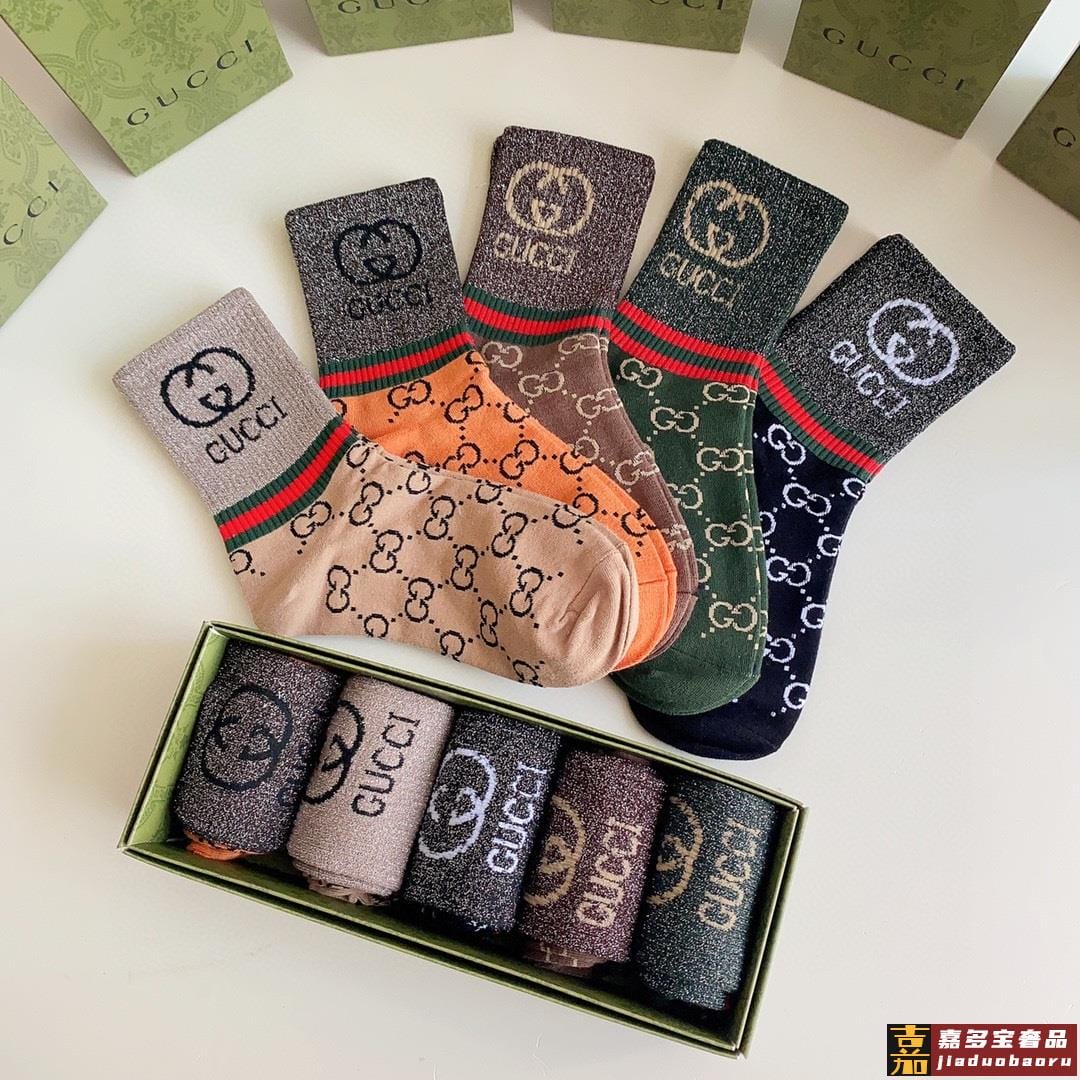 特配专柜包装古驰新款中长款金丝堆堆袜袜子一盒五双专柜同步筒袜