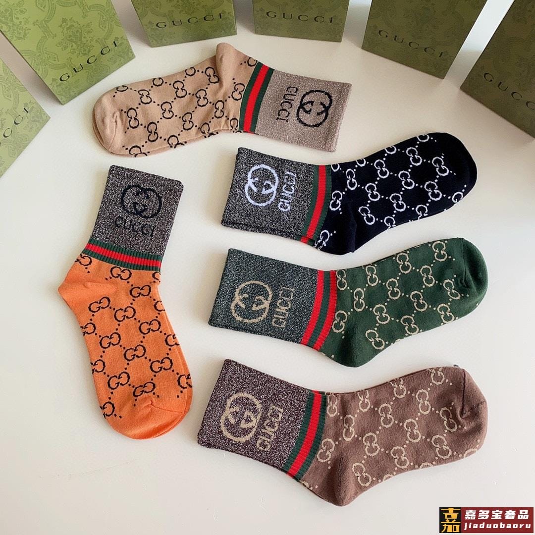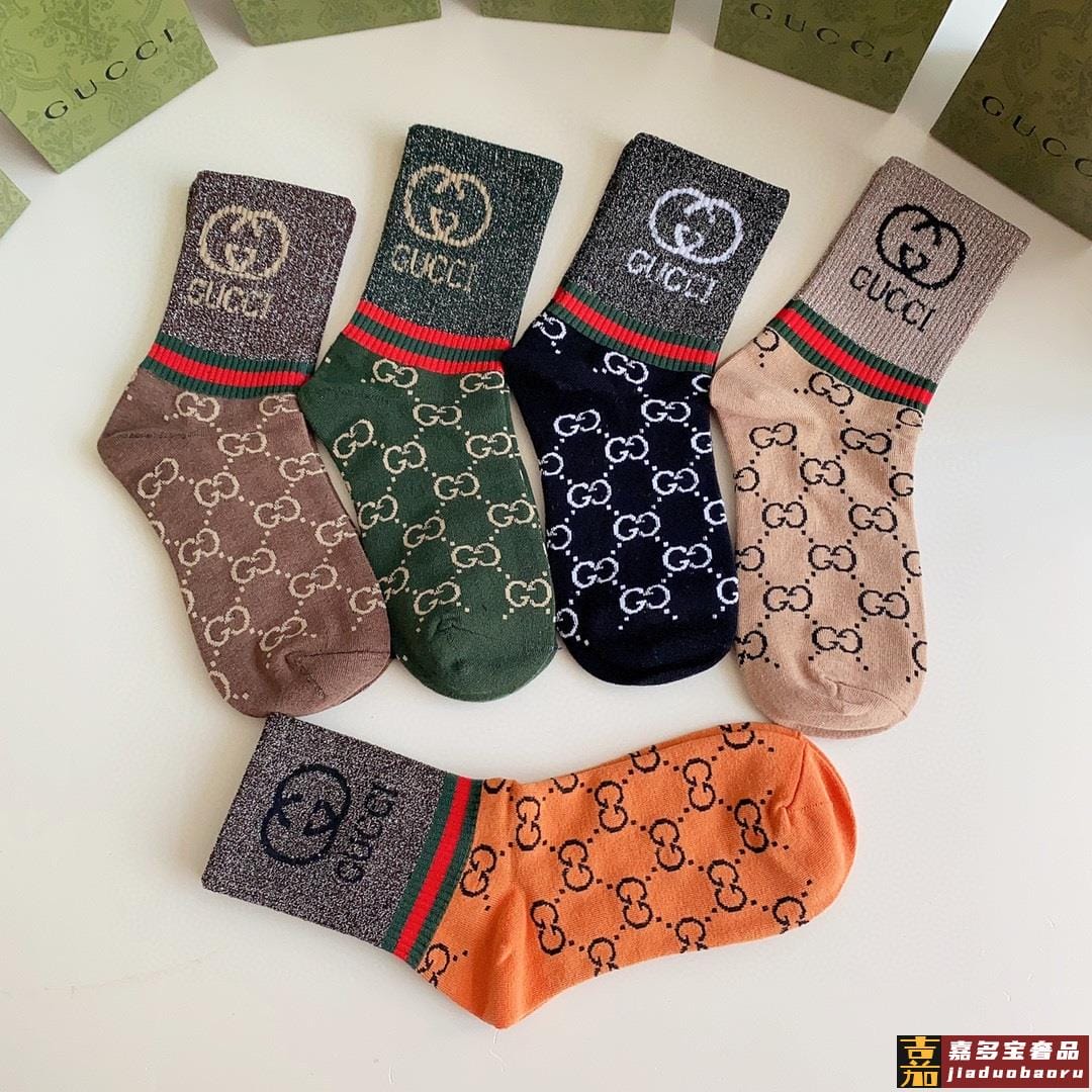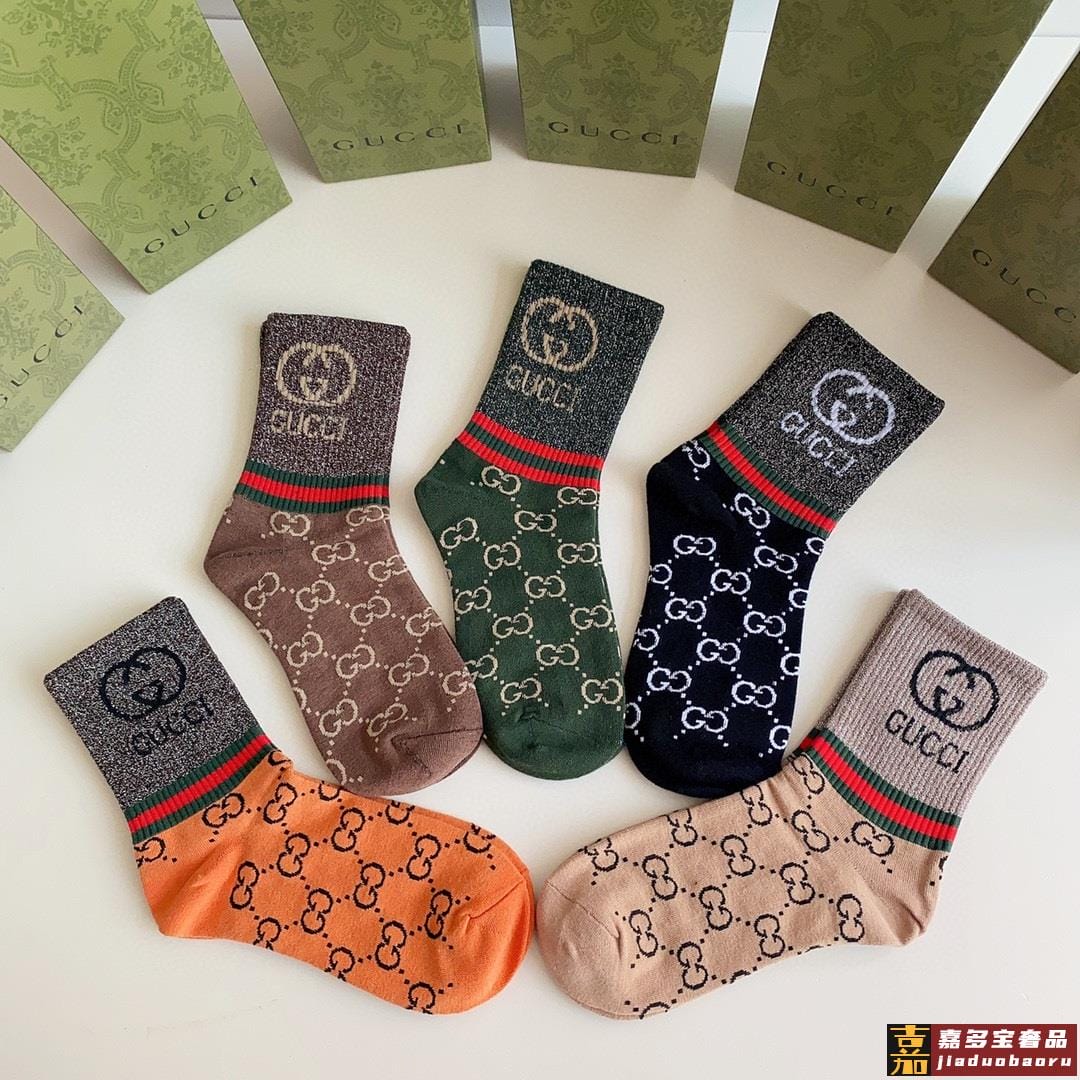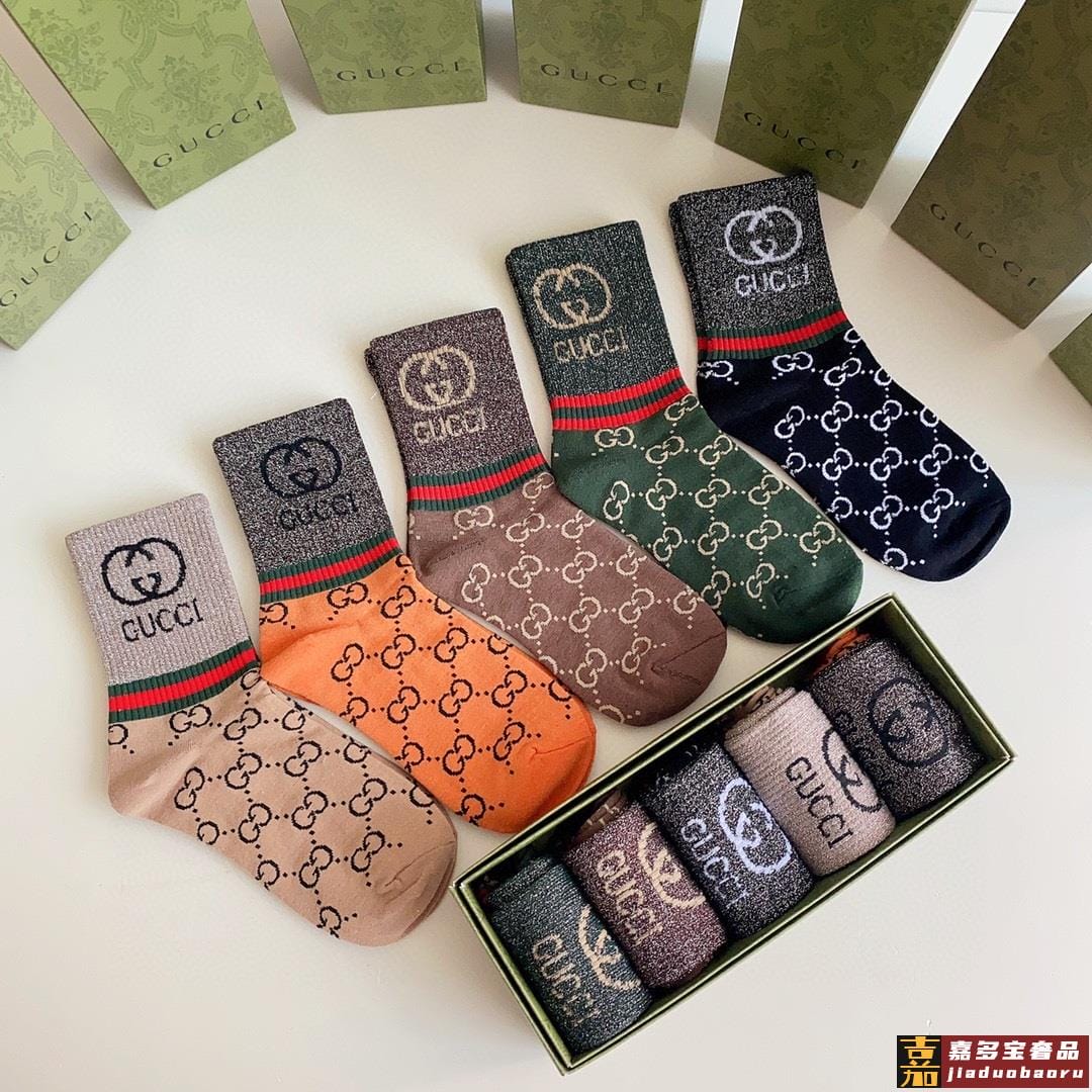 特配专柜包装古驰新款中长款金丝堆堆袜袜子一盒五双专柜同步筒袜