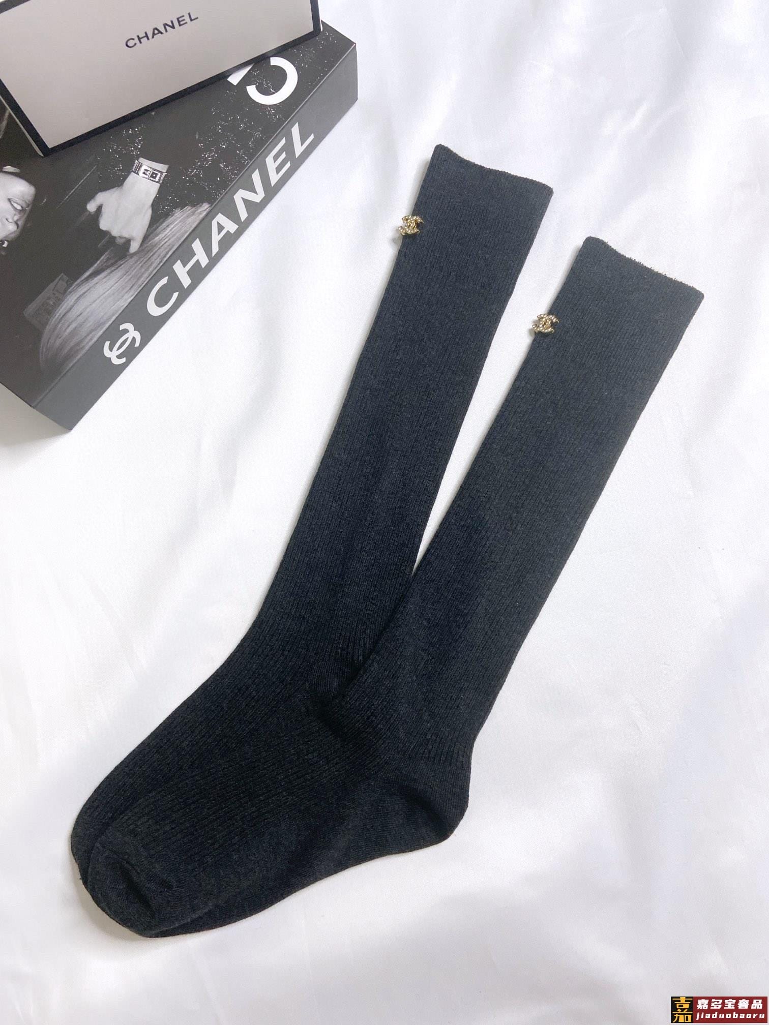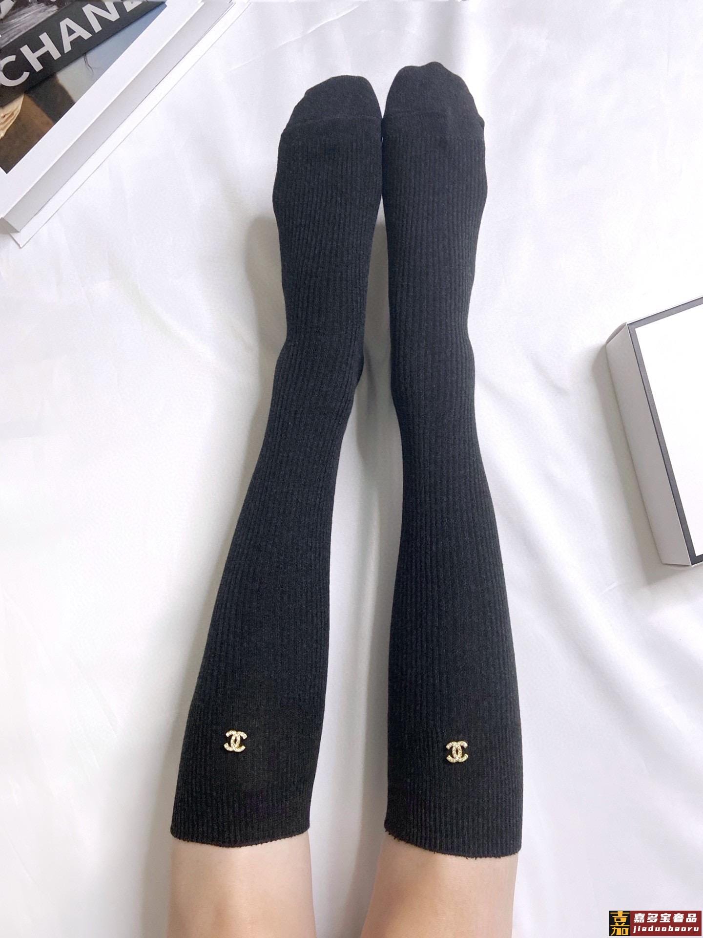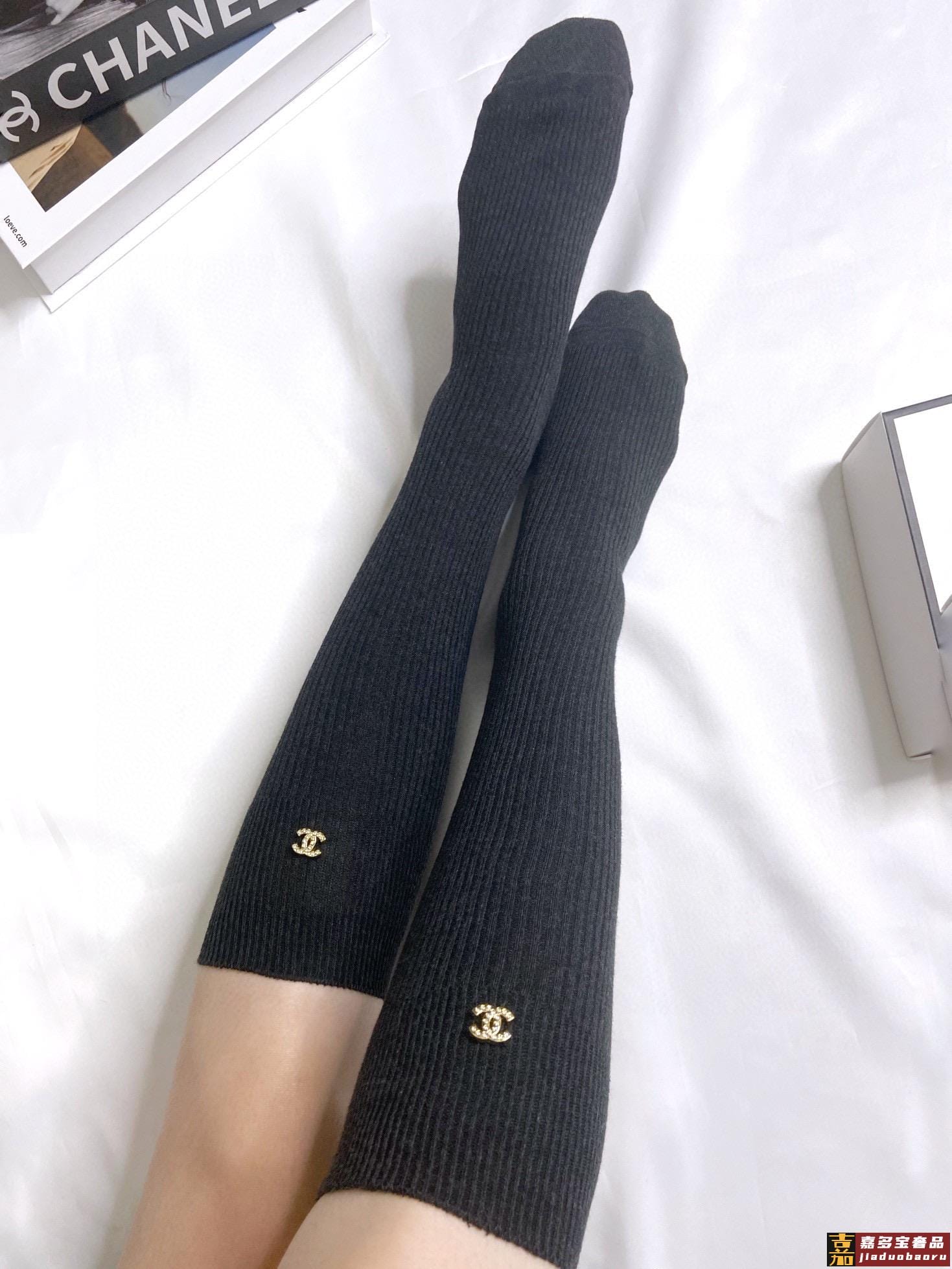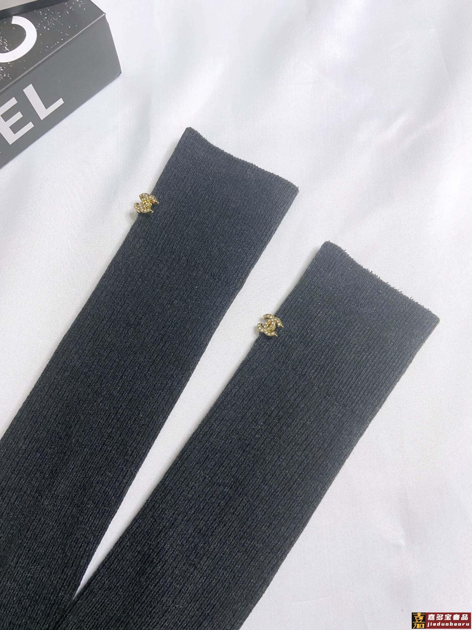 配包装一盒一双香奈儿经典字母纯棉长筒袜小腿袜重工装饰个性时尚