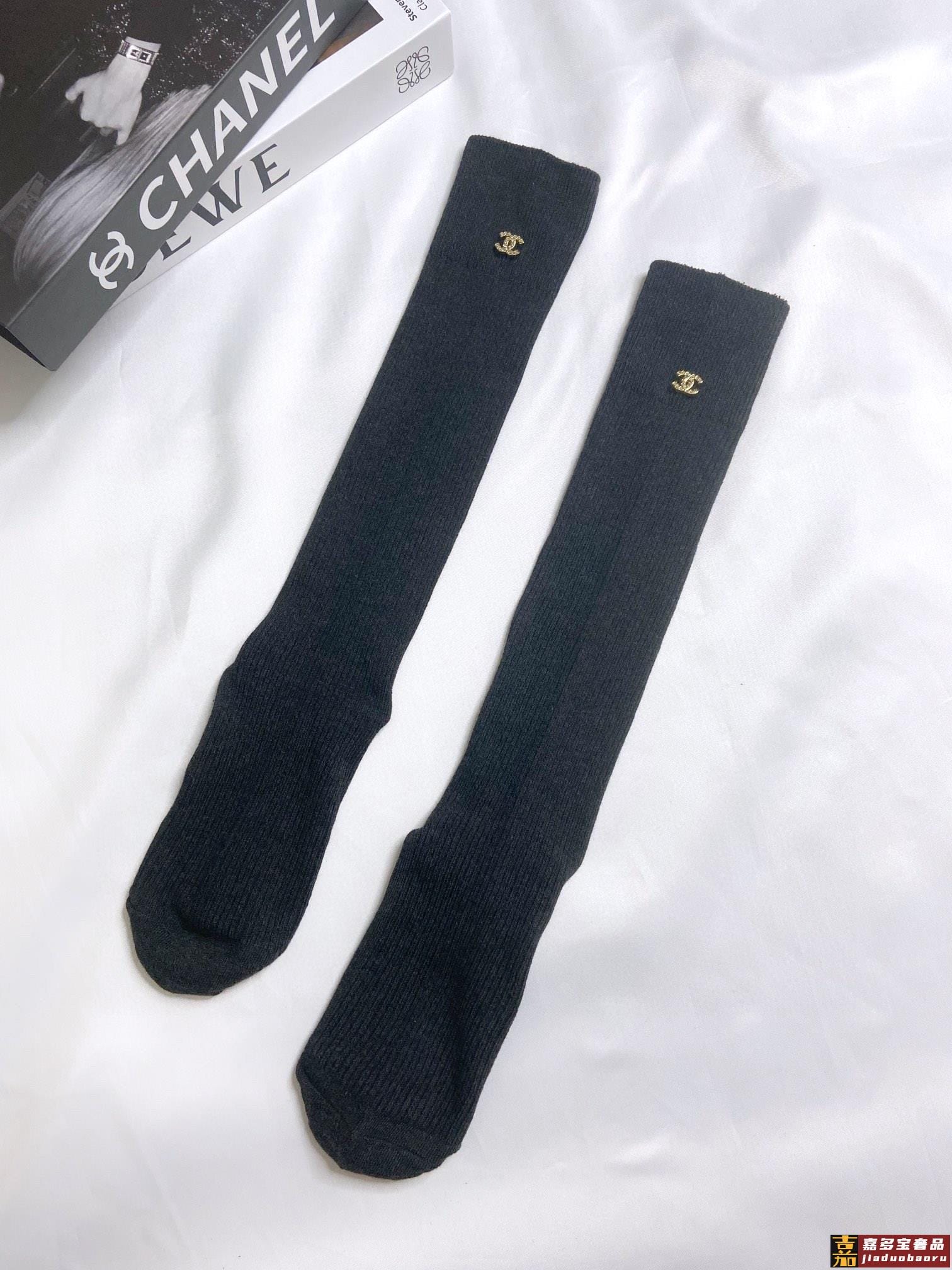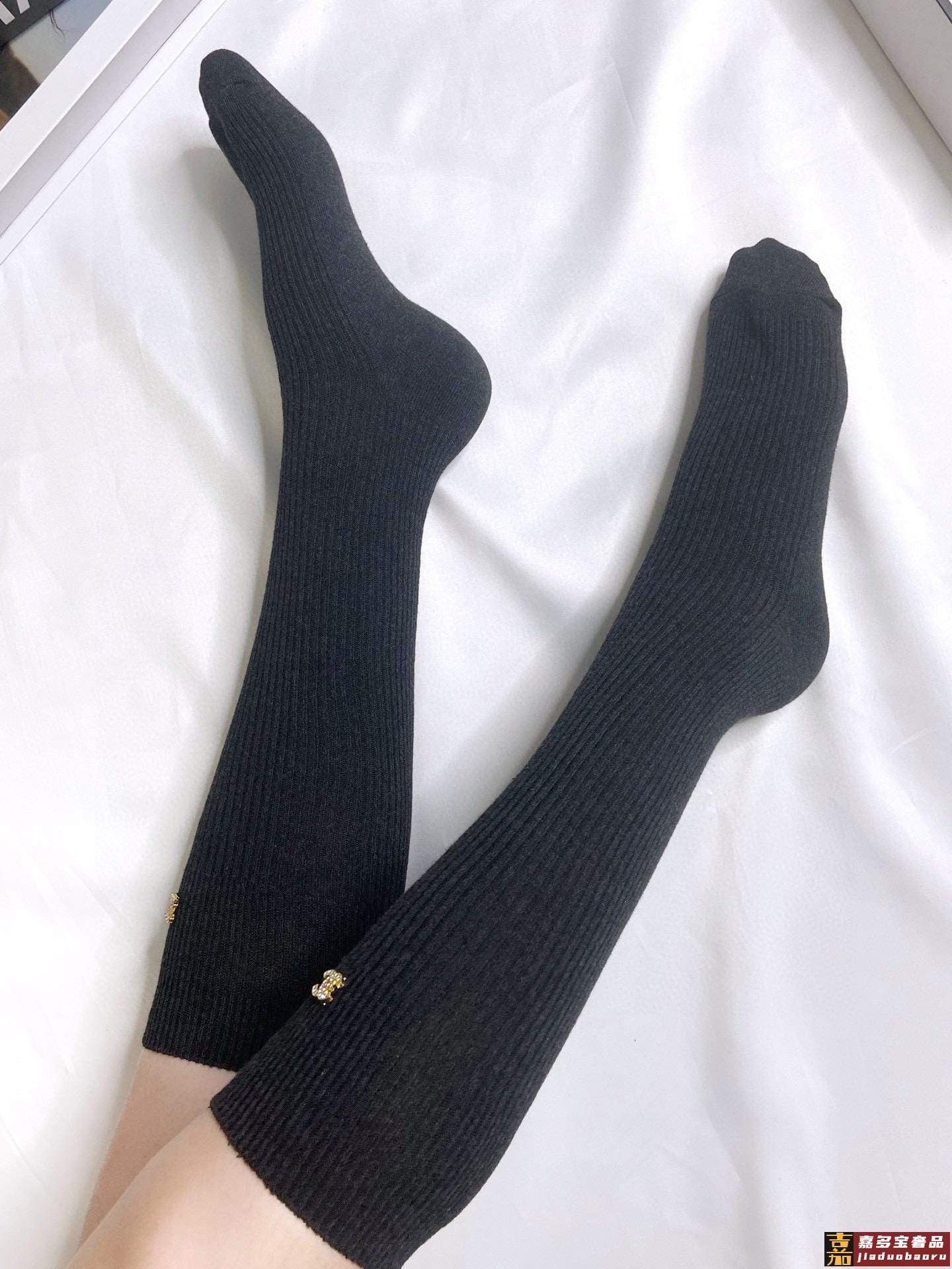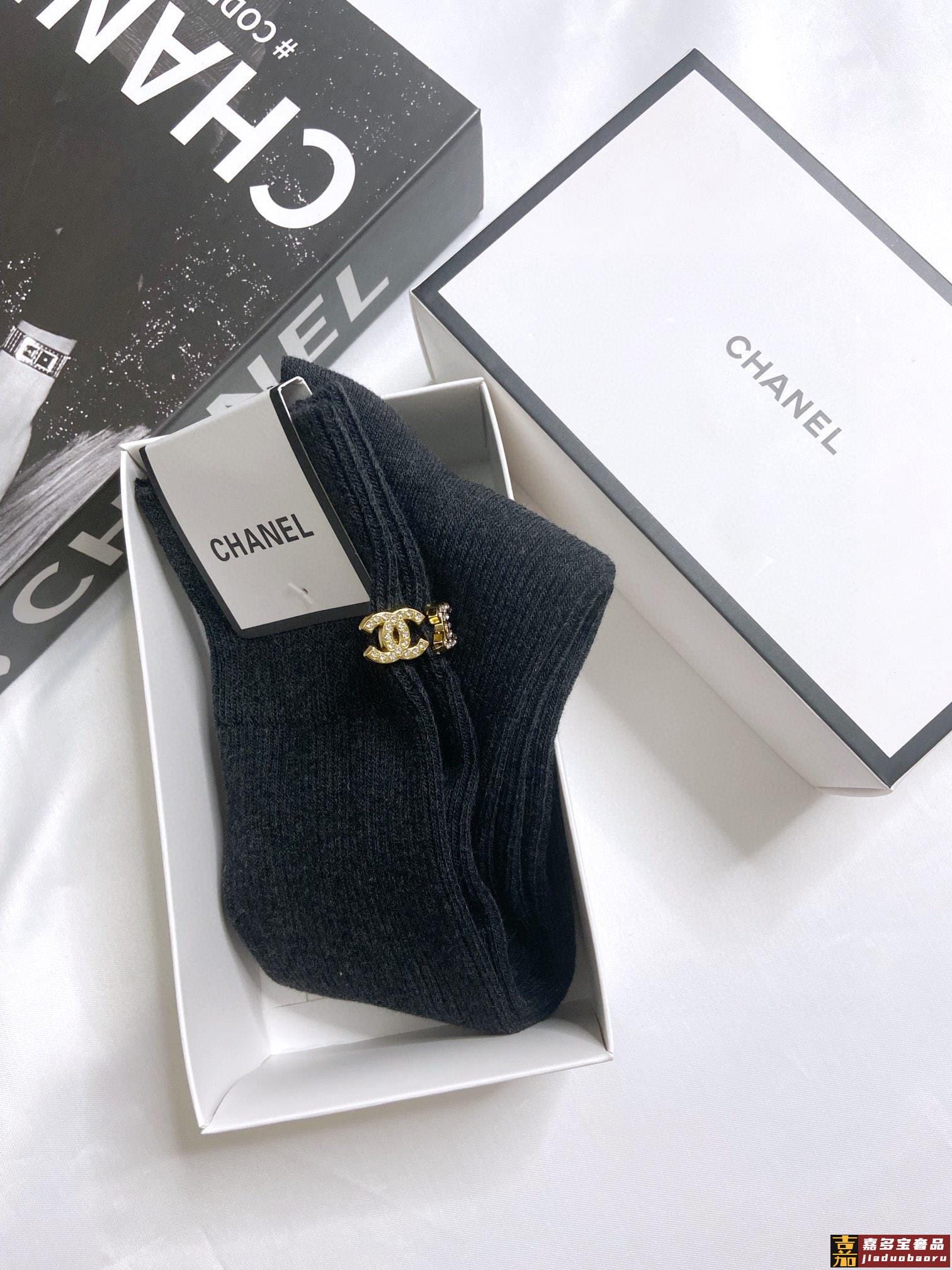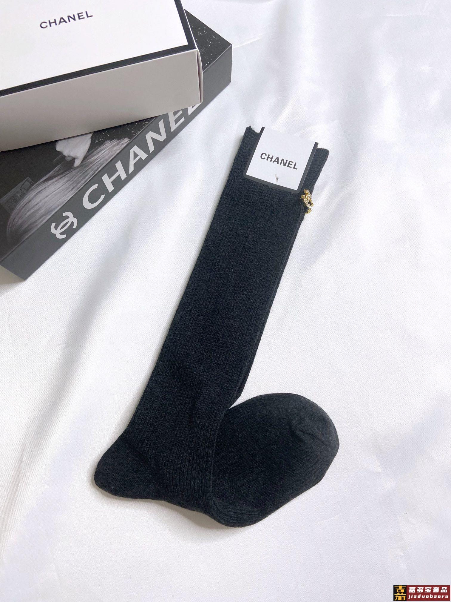 配包装一盒一双香奈儿经典字母纯棉长筒袜小腿袜重工装饰个性时尚