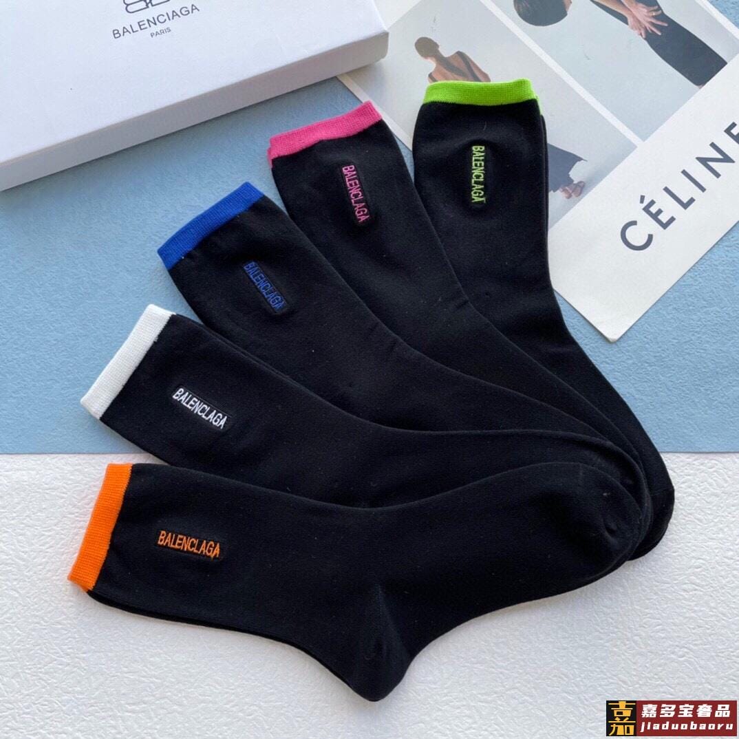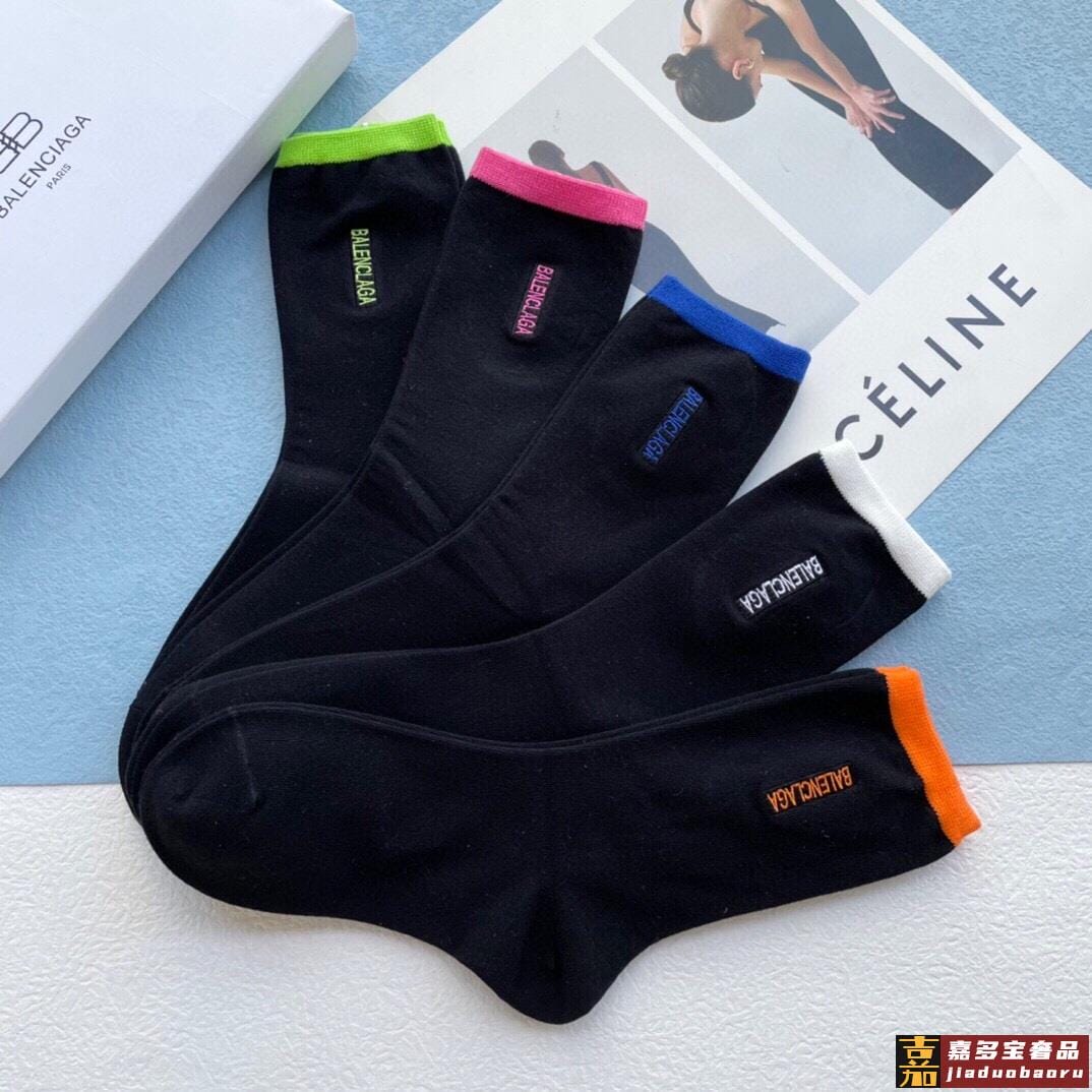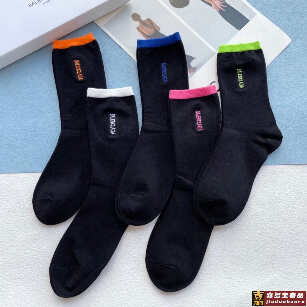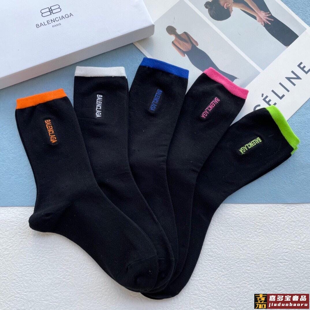 配包装一盒五双巴黎世家秋冬新品刺绣袜子经典品牌标志简单大气实