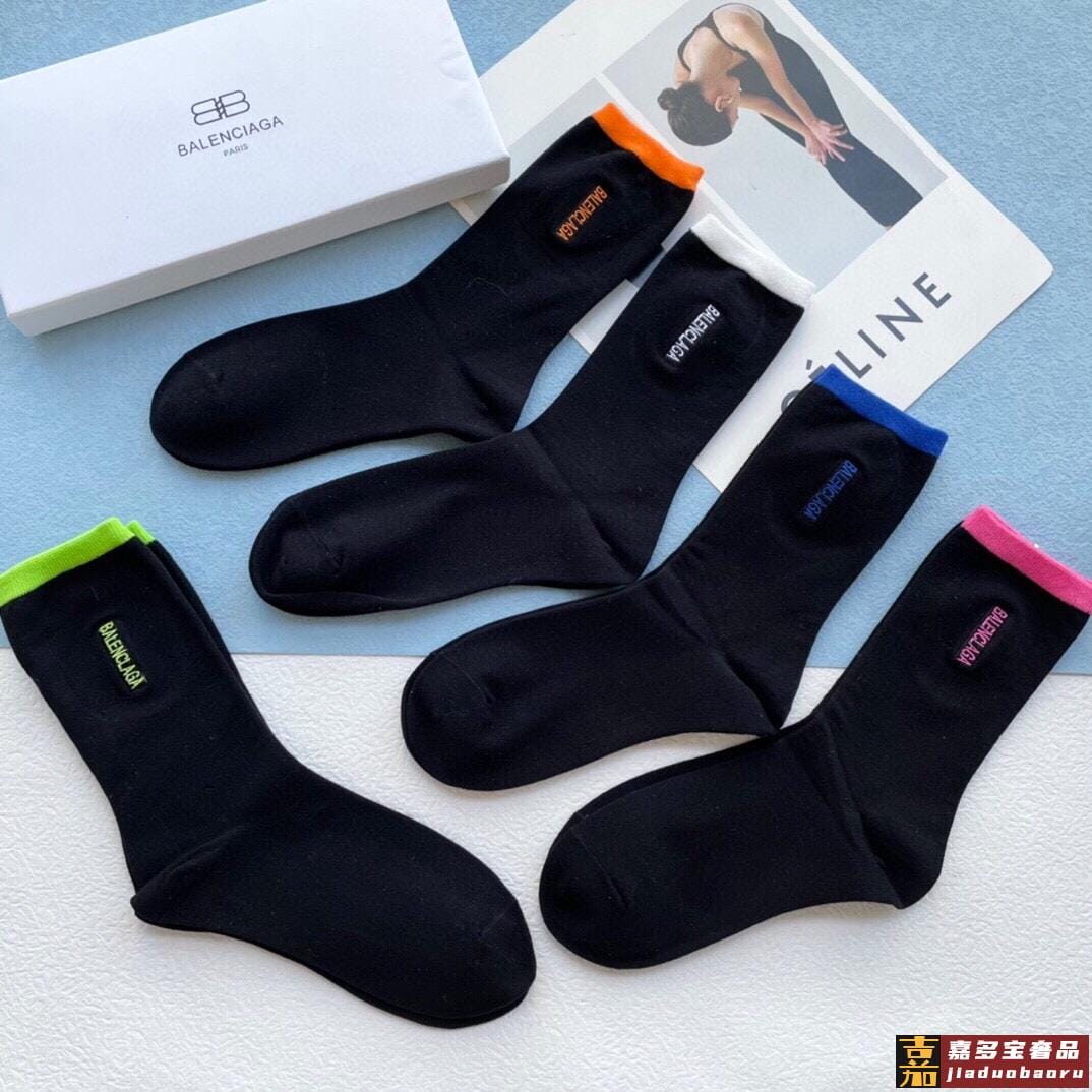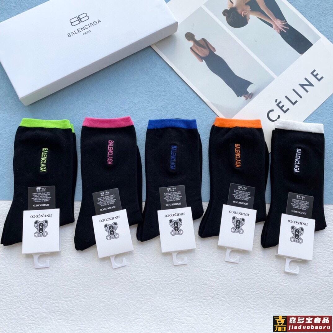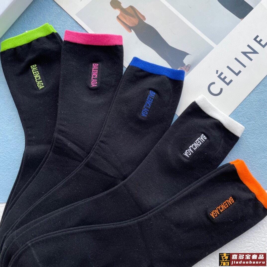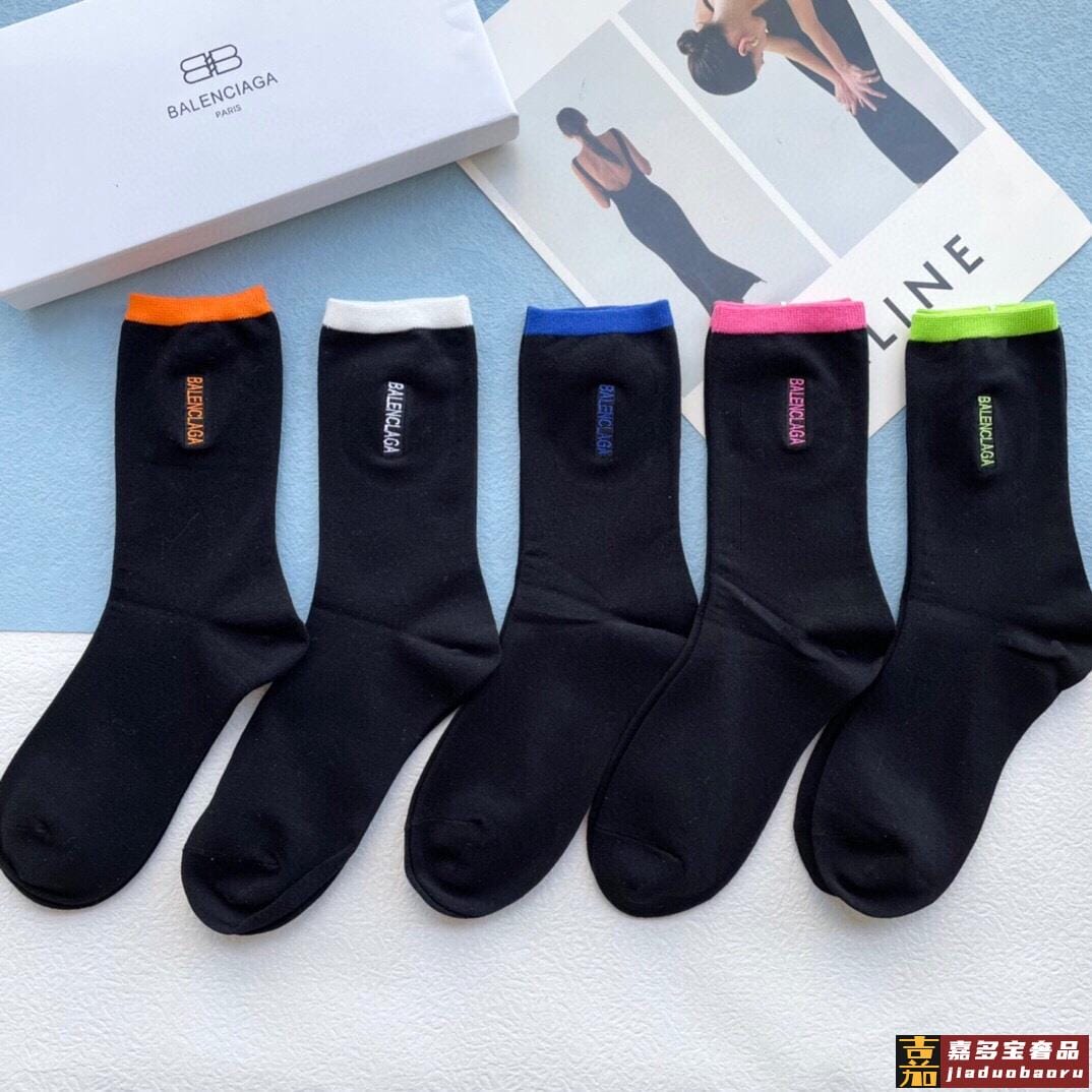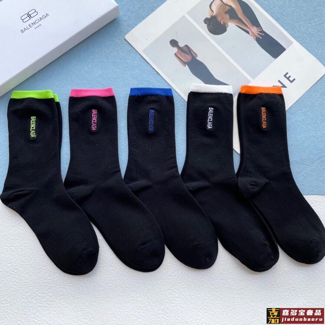 配包装一盒五双巴黎世家秋冬新品刺绣袜子经典品牌标志简单大气实
