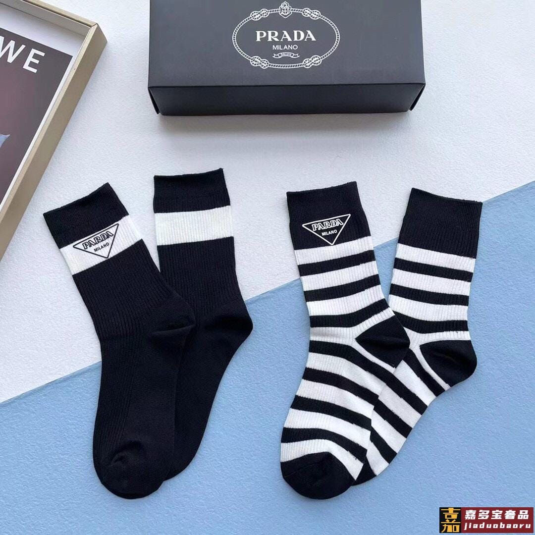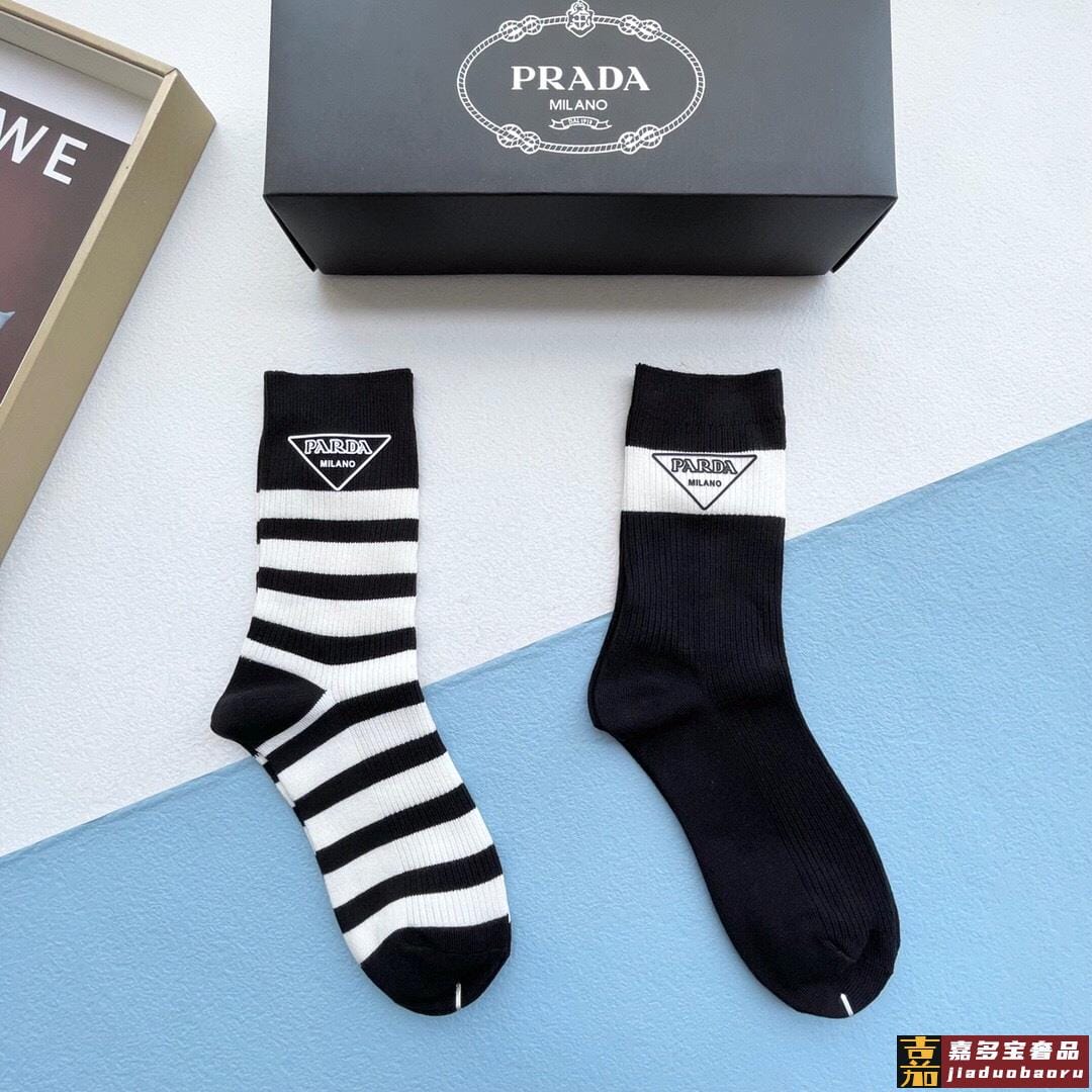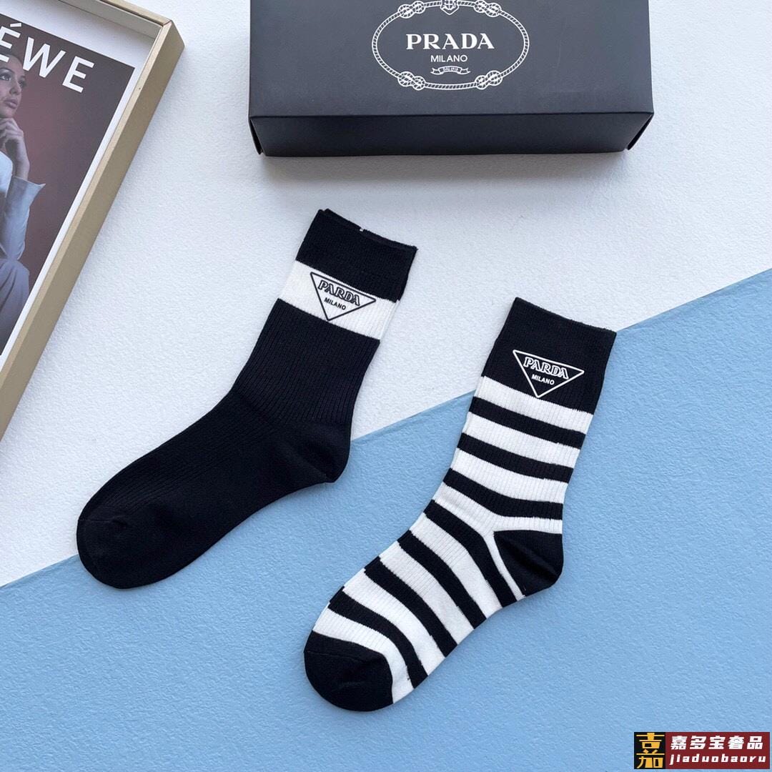 配包装一盒二双普拉达爆款中筒袜高版本好看到爆炸欧美大牌中筒袜
