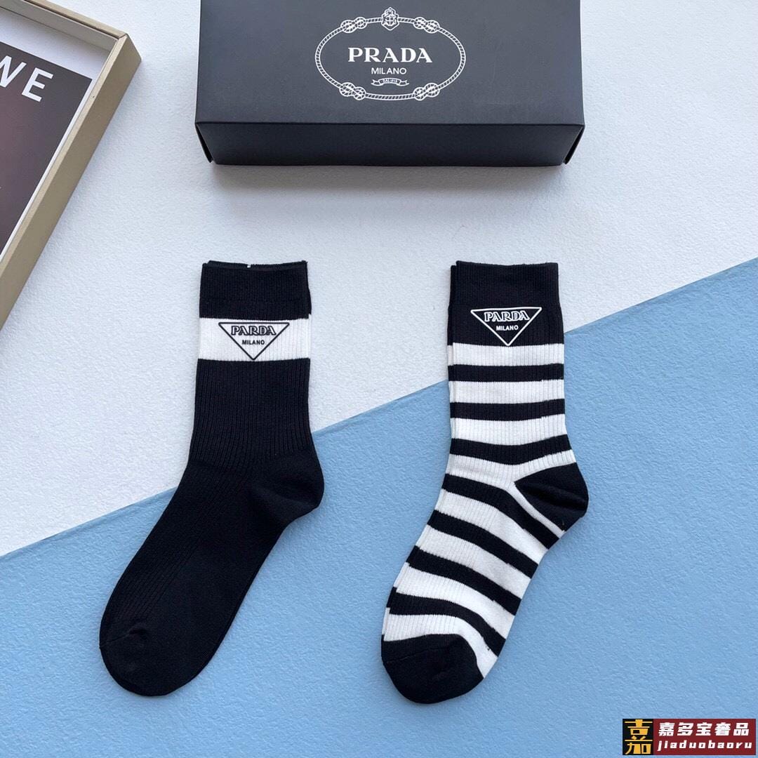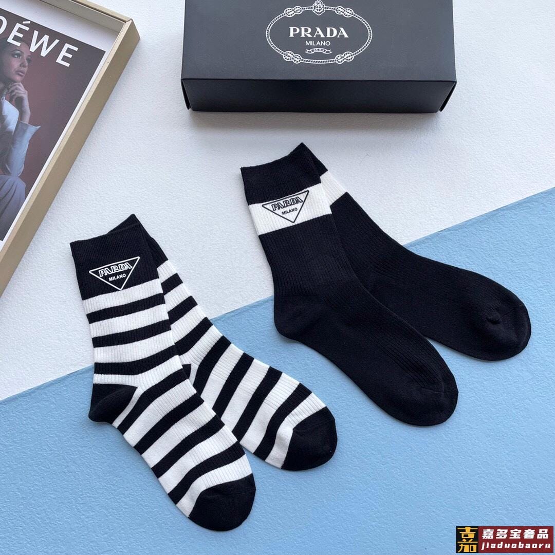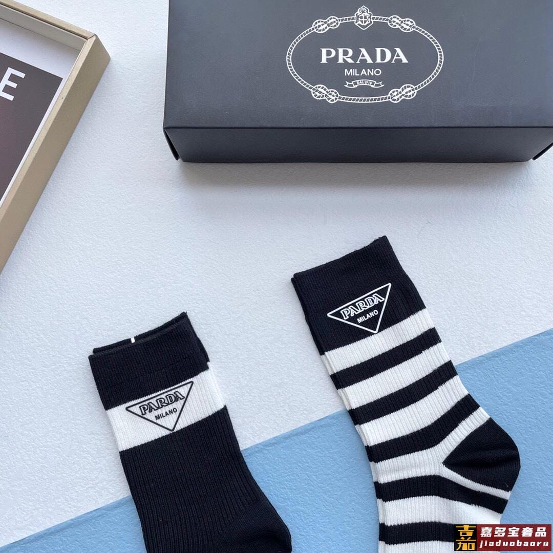 配包装一盒二双普拉达爆款中筒袜高版本好看到爆炸欧美大牌中筒袜