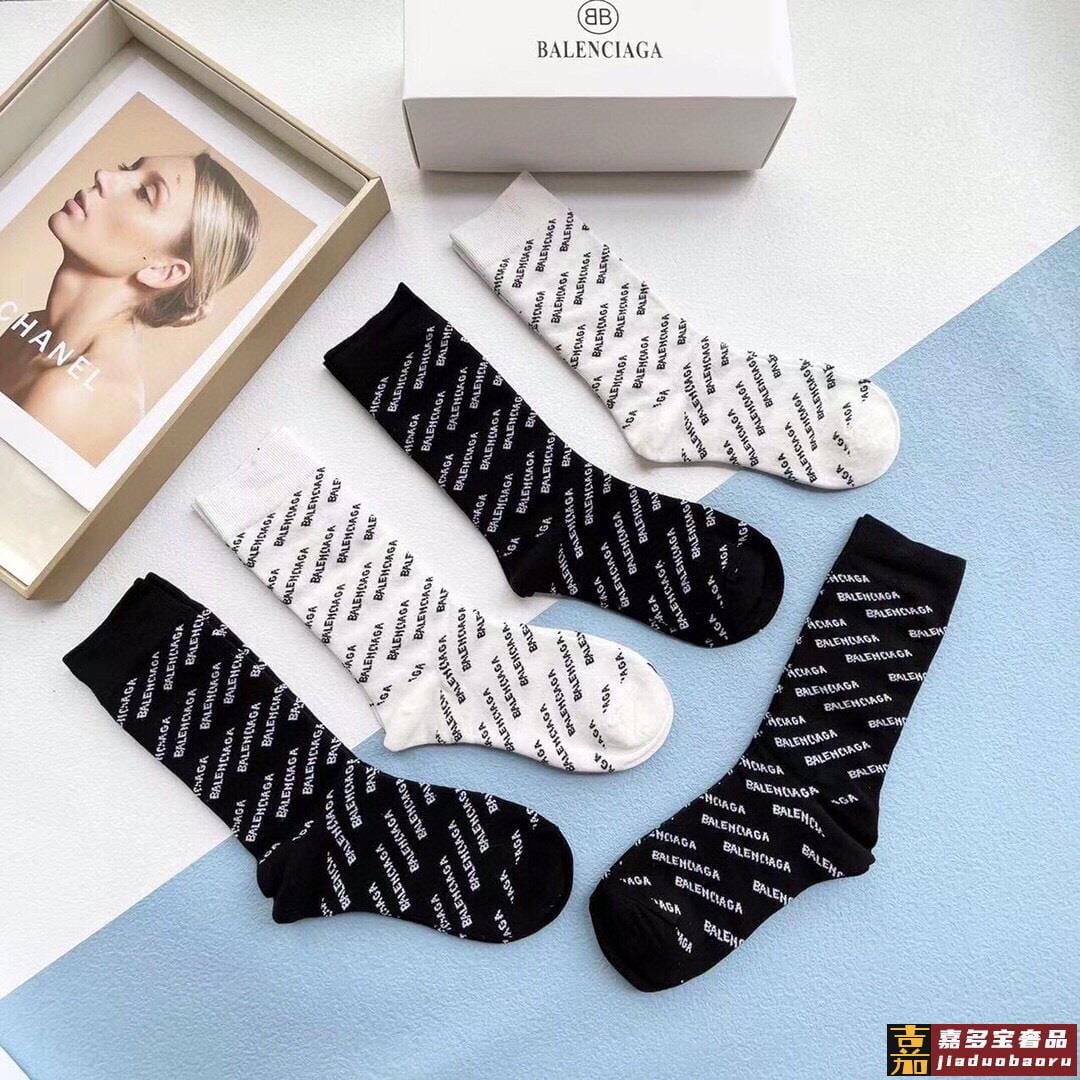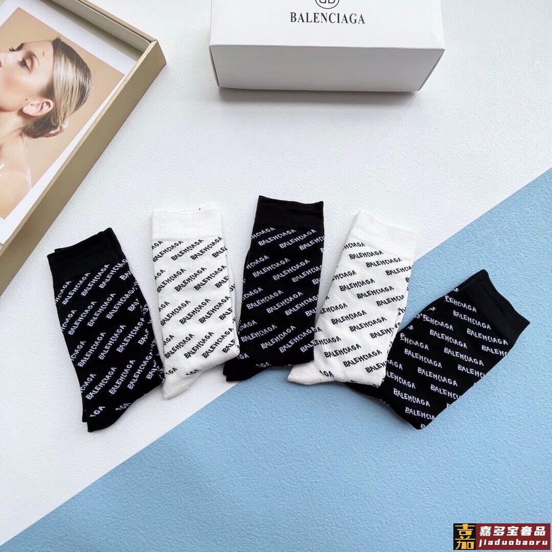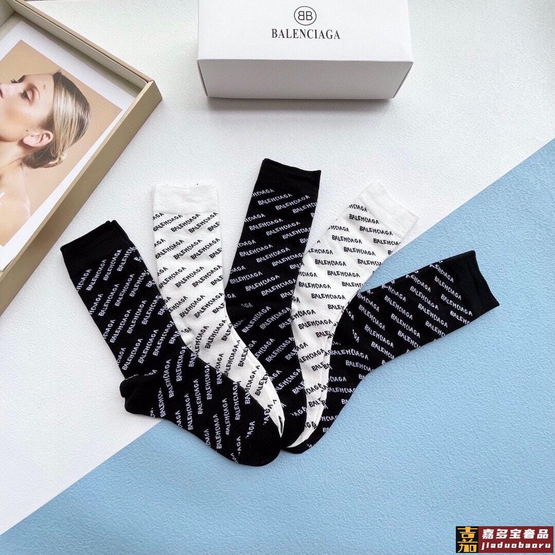 配包装一盒五双巴黎世家秋冬新品刺绣袜子经典品牌标志简单大气实