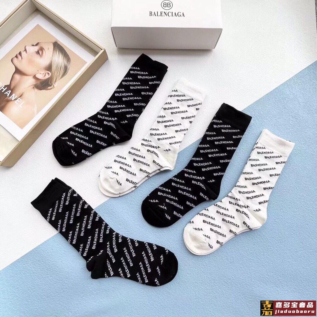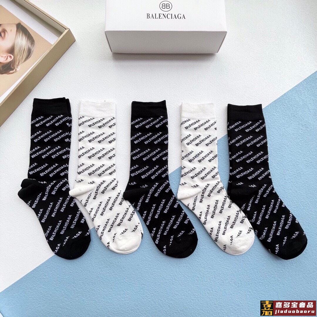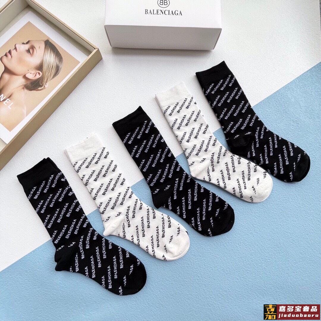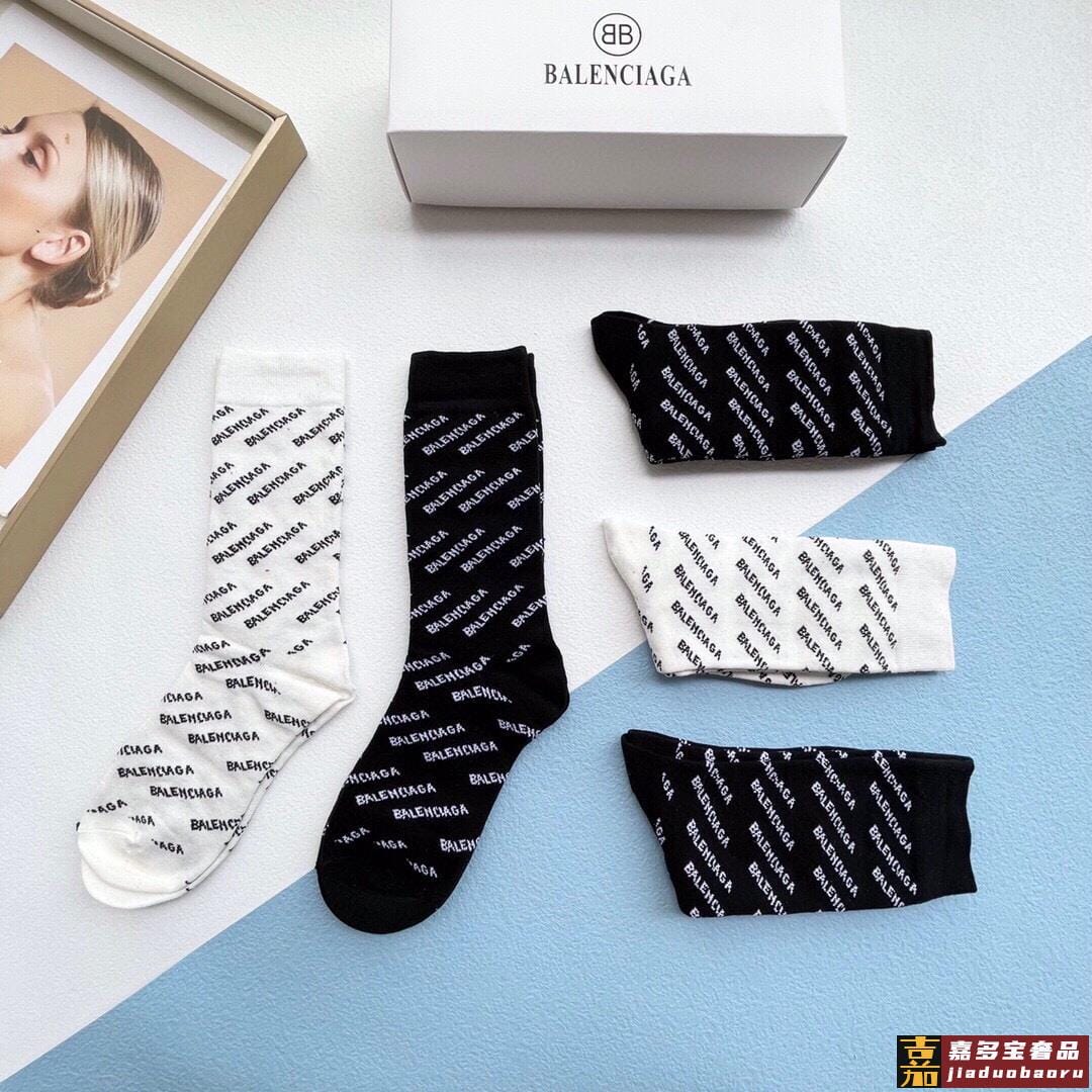 配包装一盒五双巴黎世家秋冬新品刺绣袜子经典品牌标志简单大气实