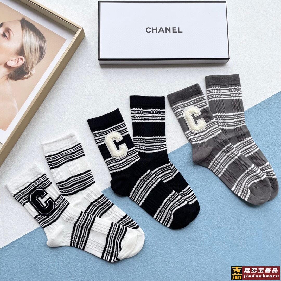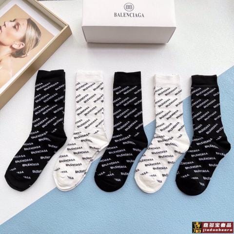 配包装一盒五双巴黎世家秋冬新品刺绣袜子经典品牌标志简单大气实