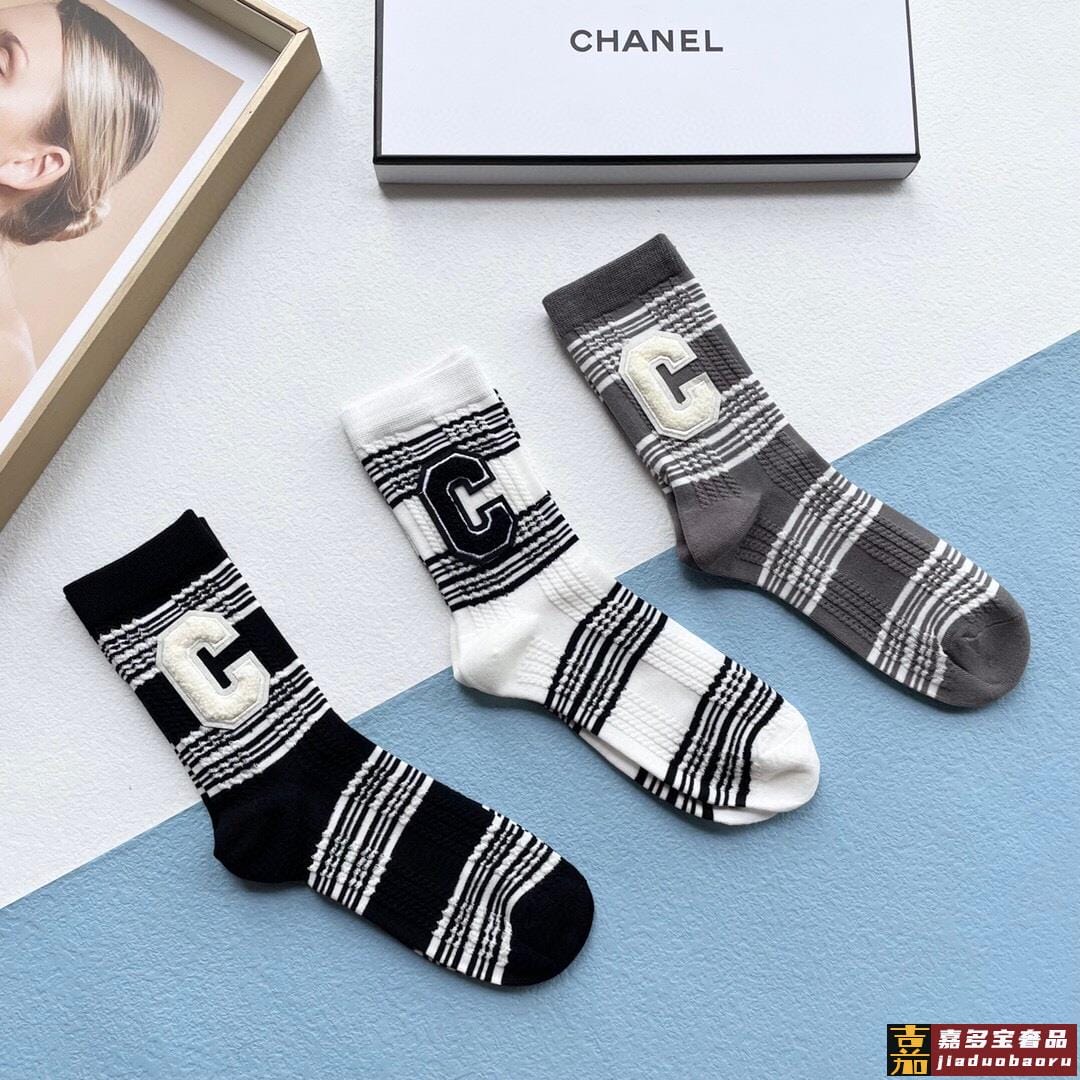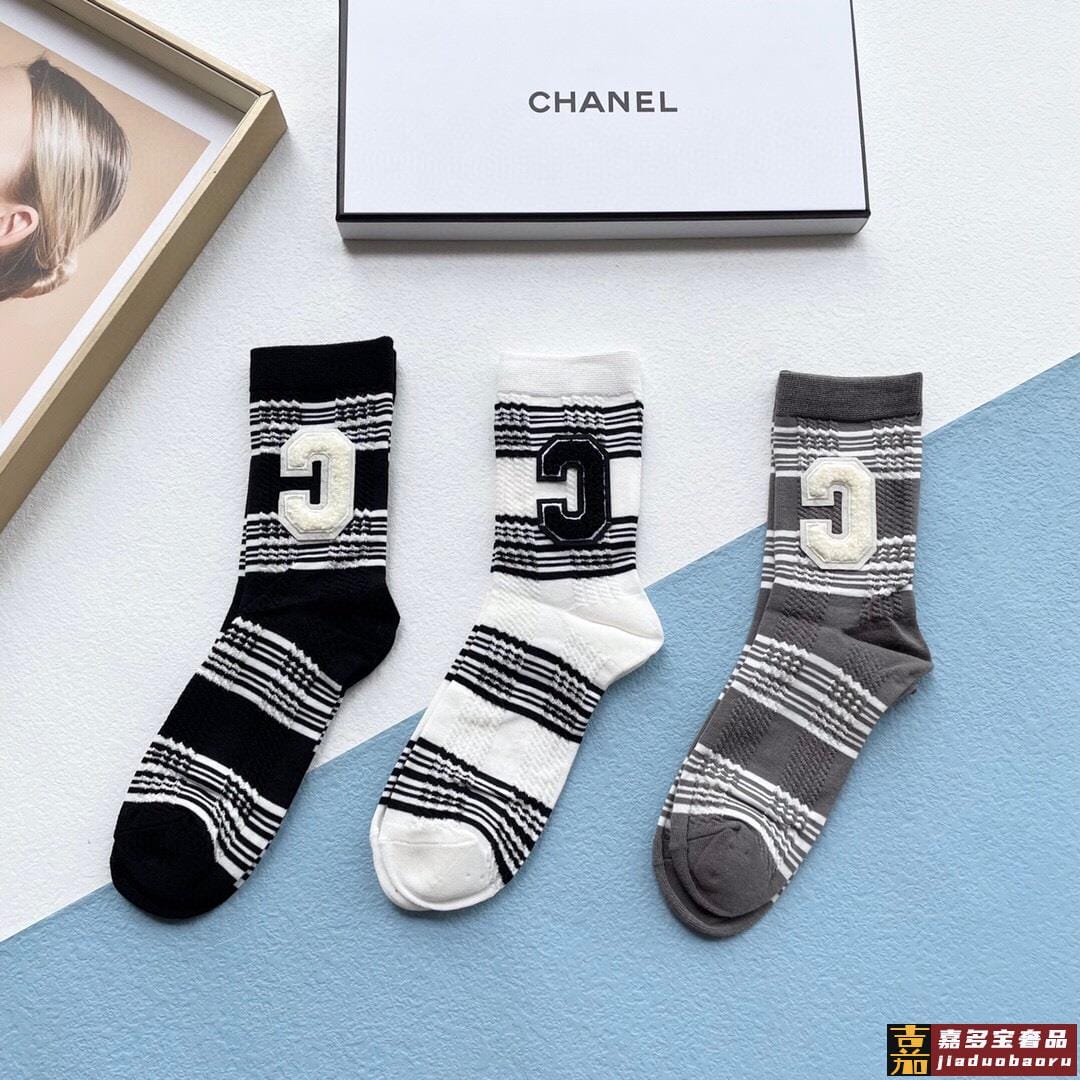 配包装一盒三双春夏新品女款袜子经典品牌标志简单大气实物超漂亮